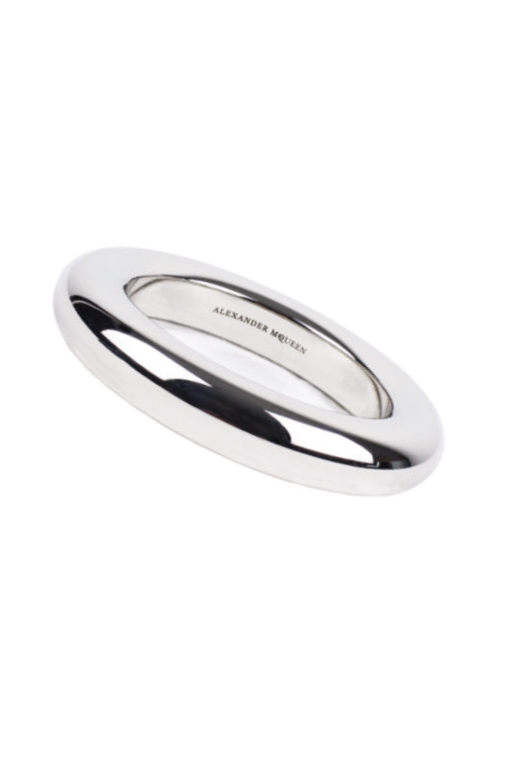 Alexander McQueen Silver Round Heavy Bangle Bracelet