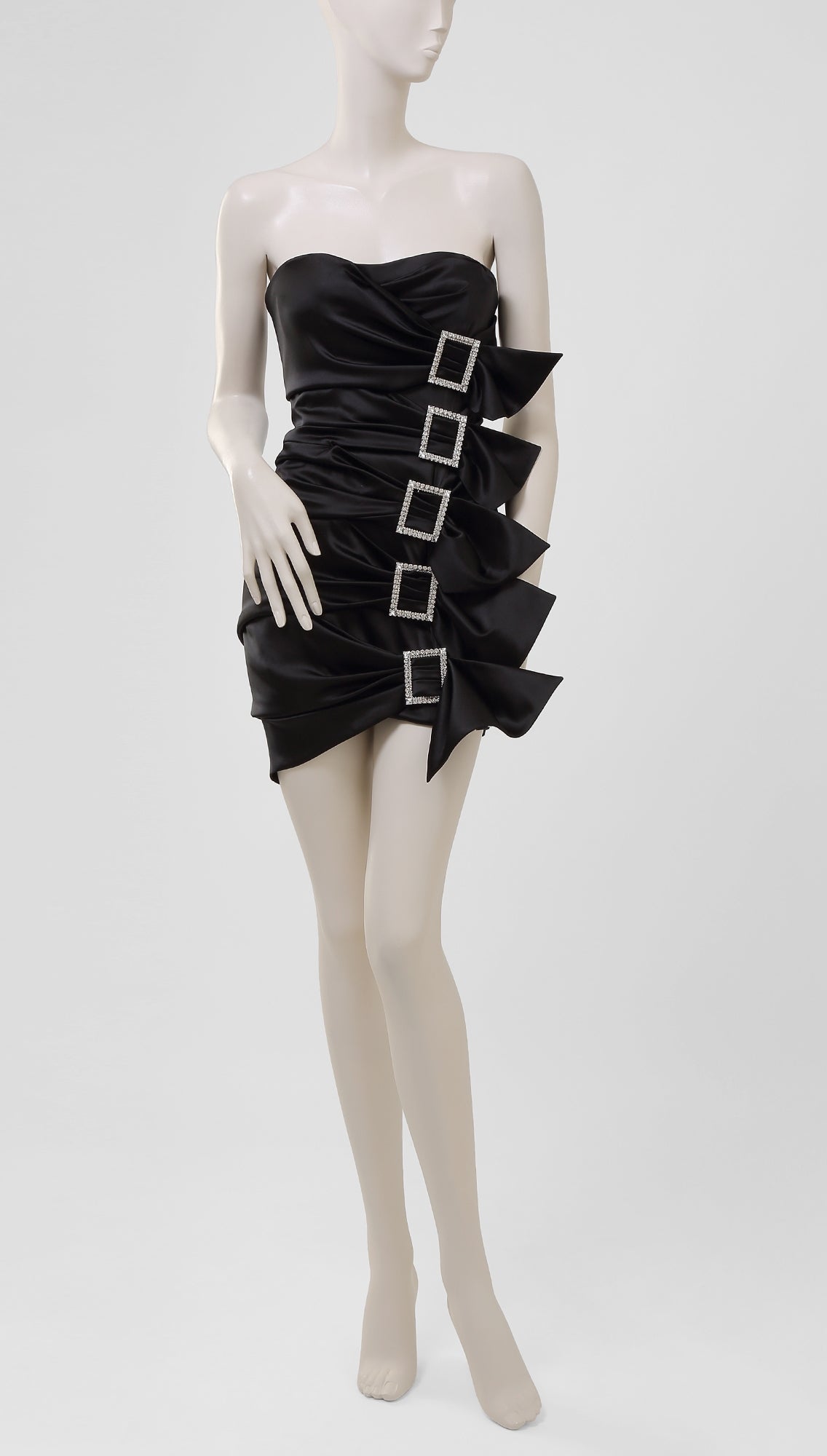 Alexander Vauthier Black Satin Square Crystal Buckle Mini Dress Haute Couture Spring 2018