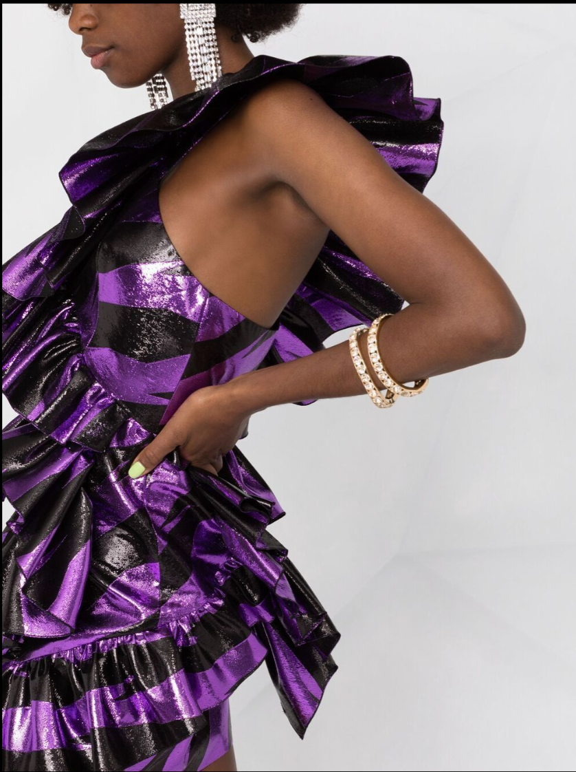 Alexander Vauthier Purple Black Stripes Lurex Metallic Ruffle Dress