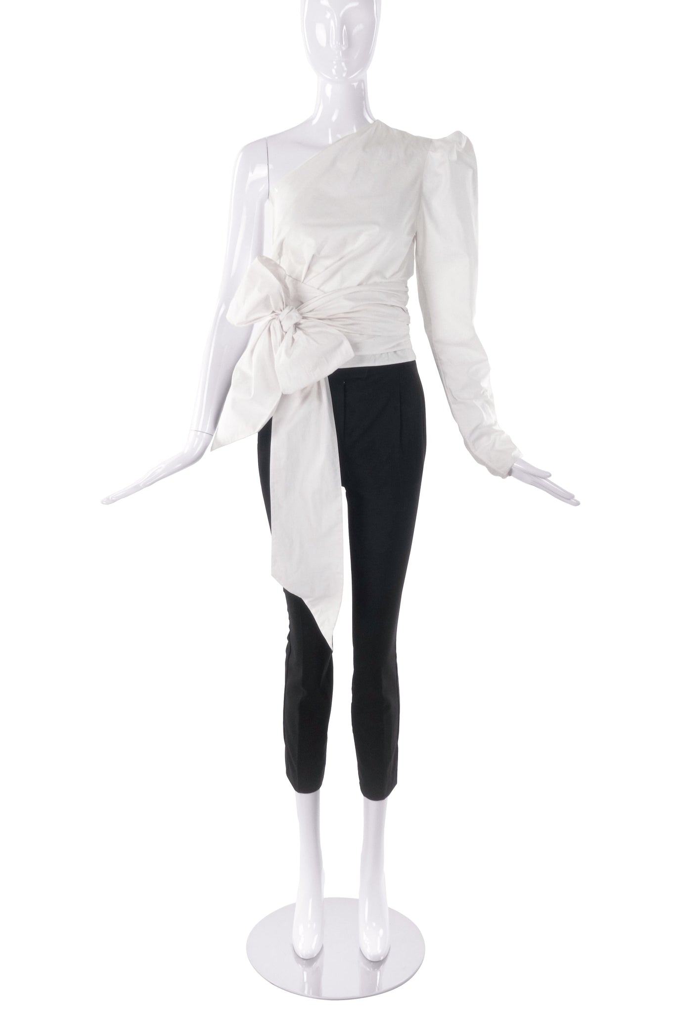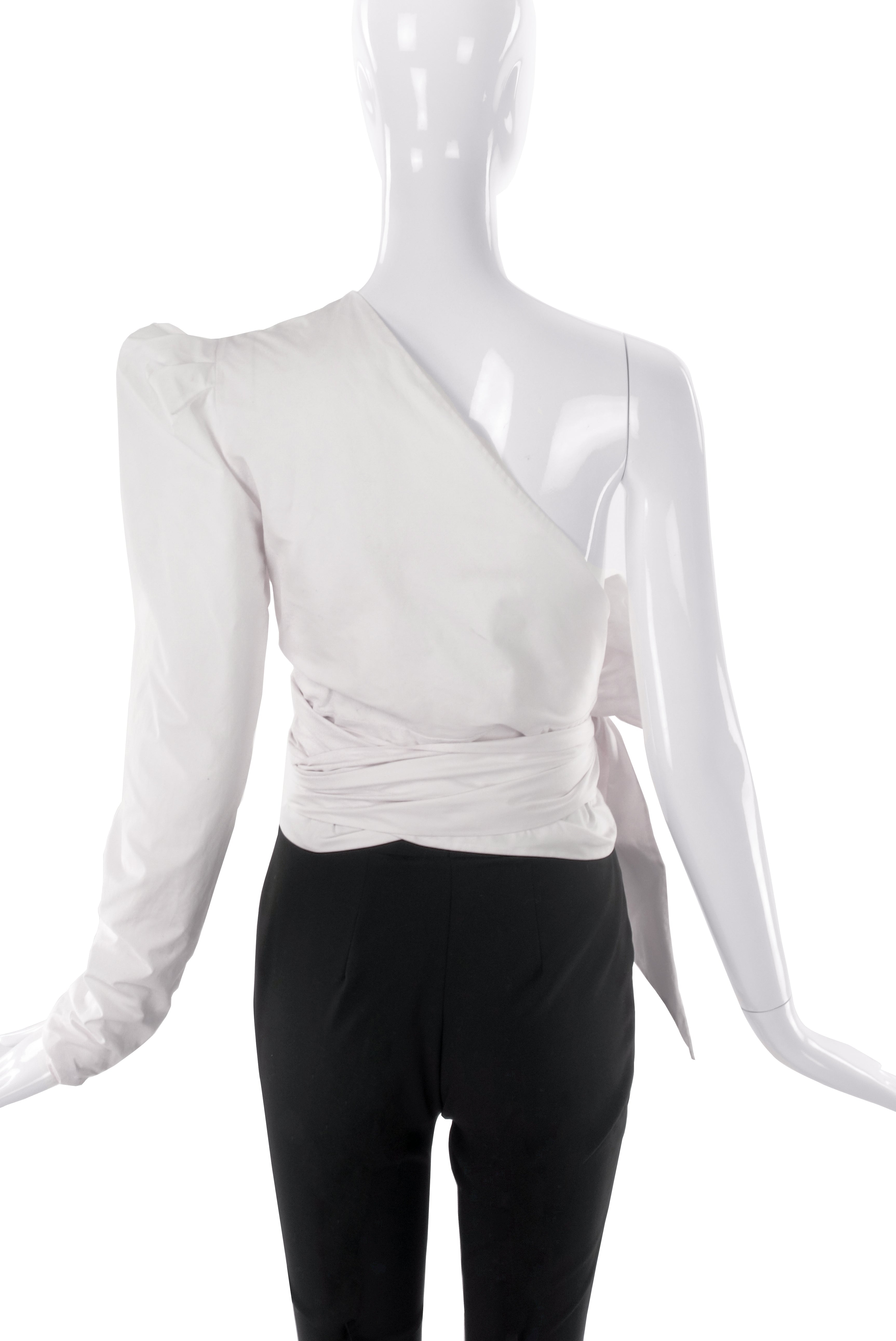 Alexandre Vauthier One Shoulder White Wrap Top with Bow and a Puff Sleeve SS2017 - BOUTIQUE PURCHASE PRICE