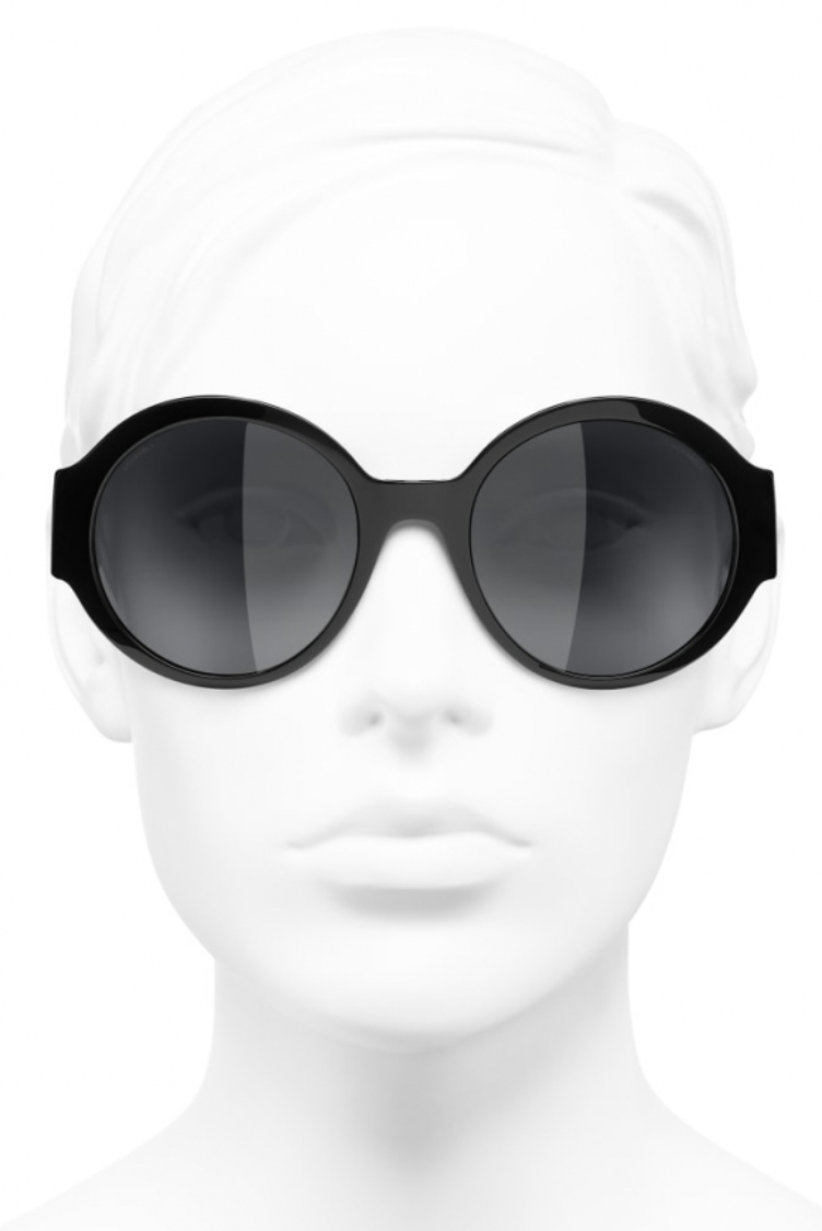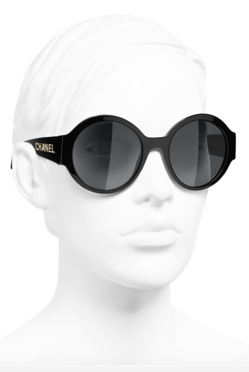 Chanel Black Metallic "CHANEL" Logo Round Sunglasses #