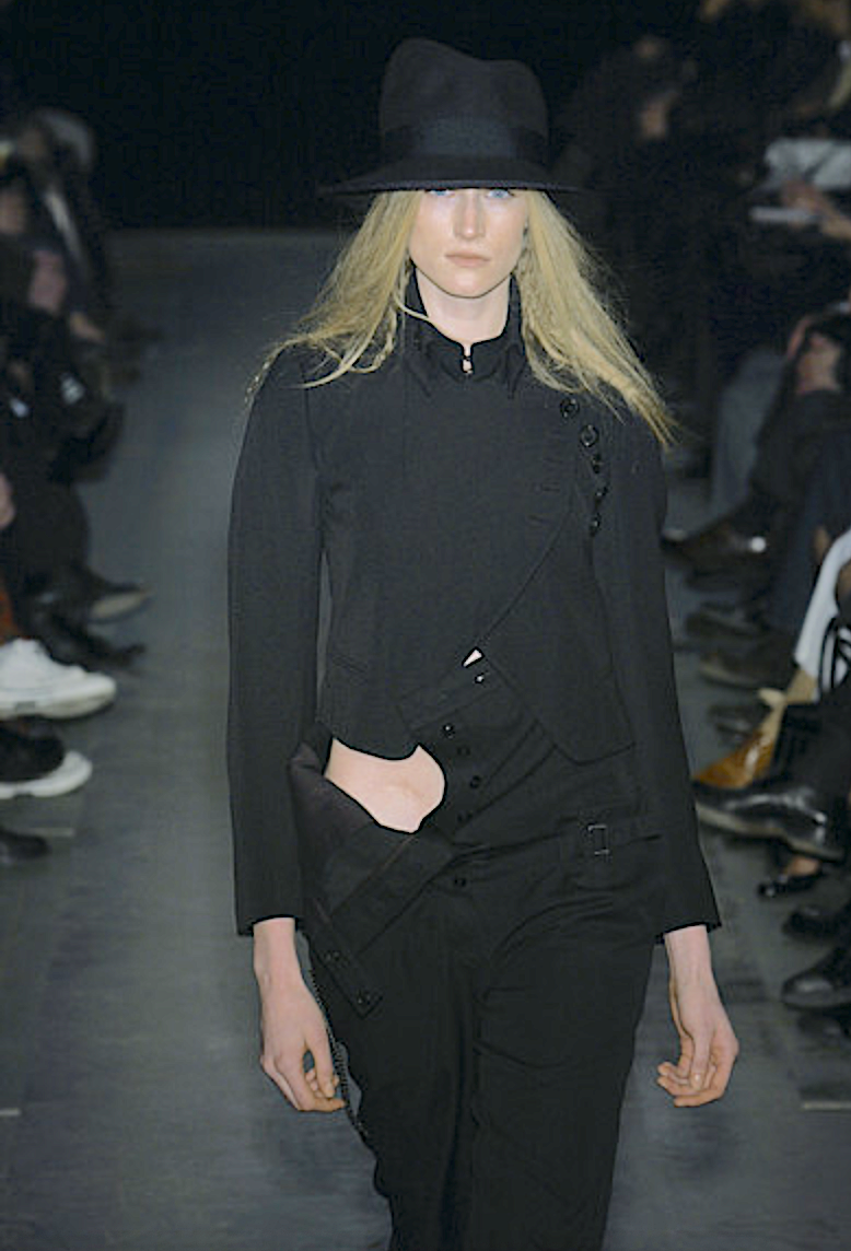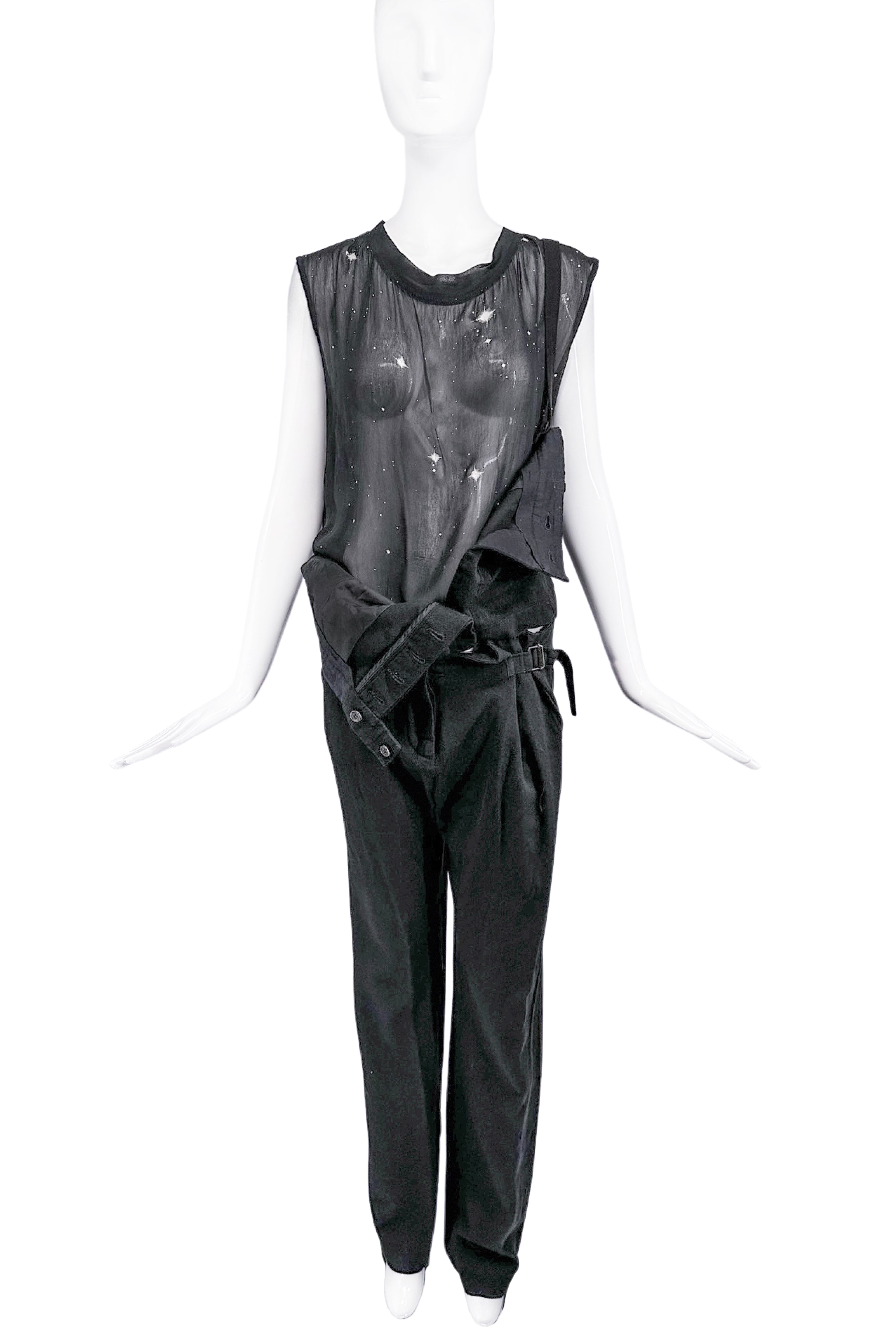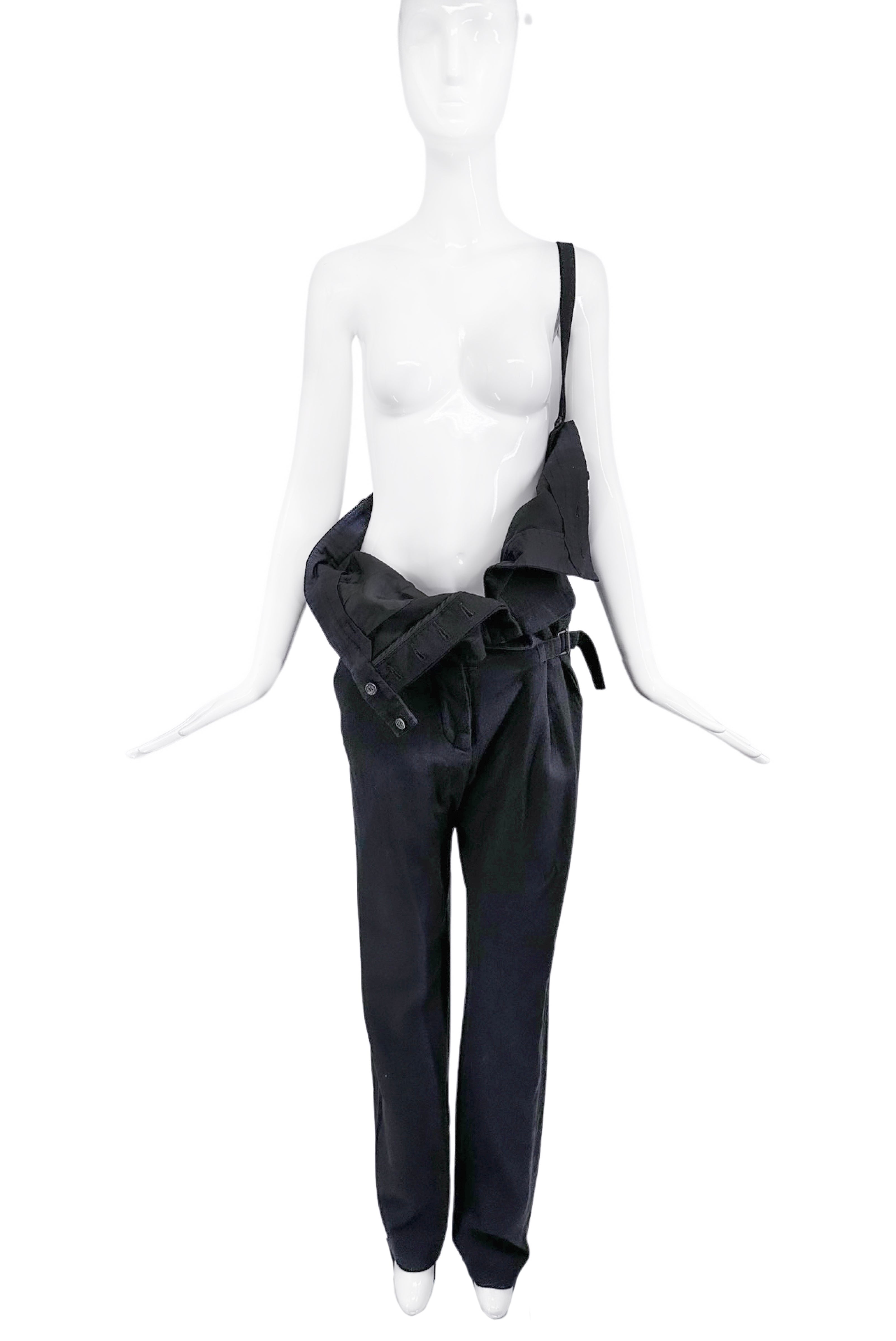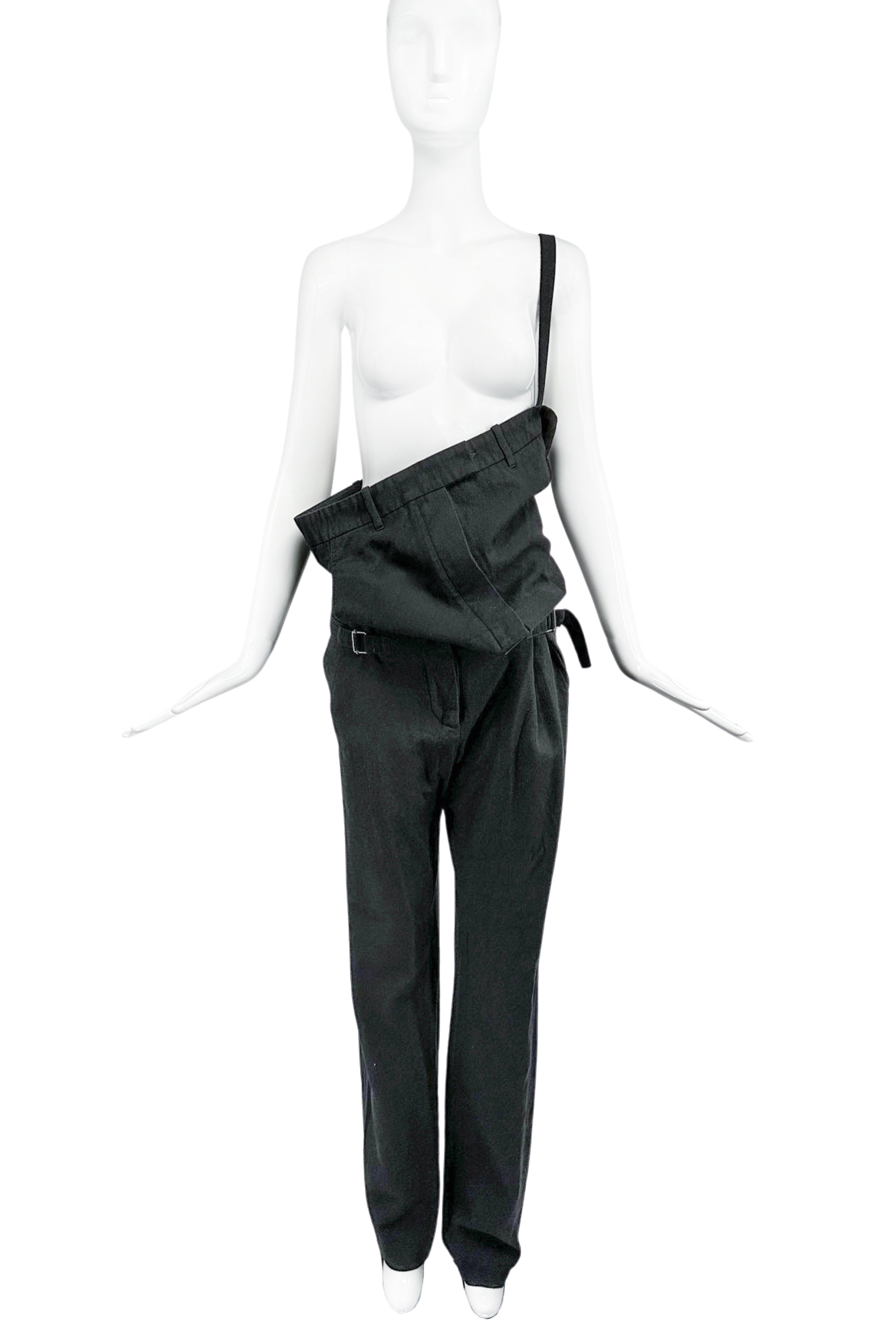 Ann Demeulemeester Black Asymmetric One Strap Overall Jumpsuit Fall 2003 Runway