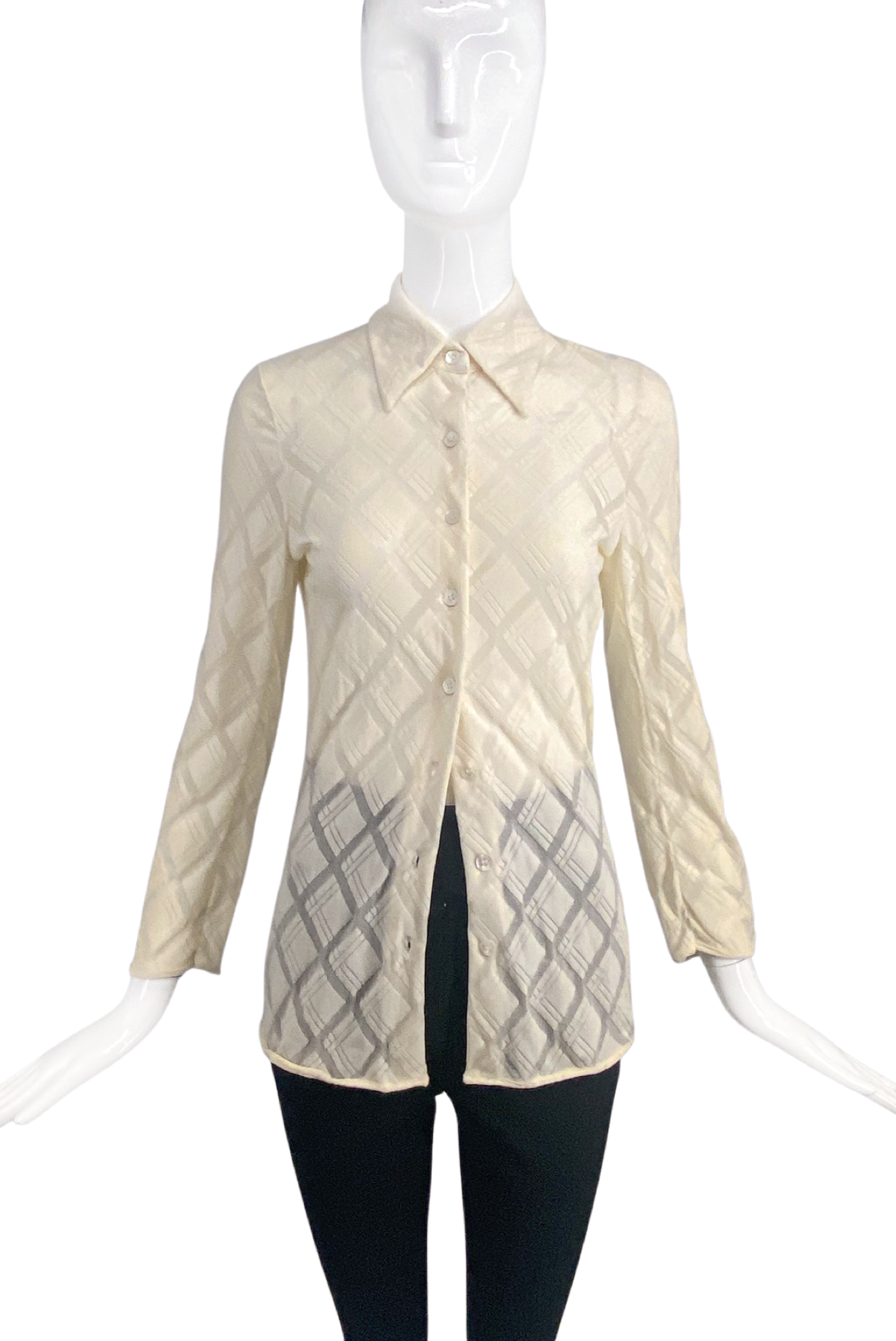 Ann Demeulemeester Ivory Diamond Texture Sheer Nylon Shirt