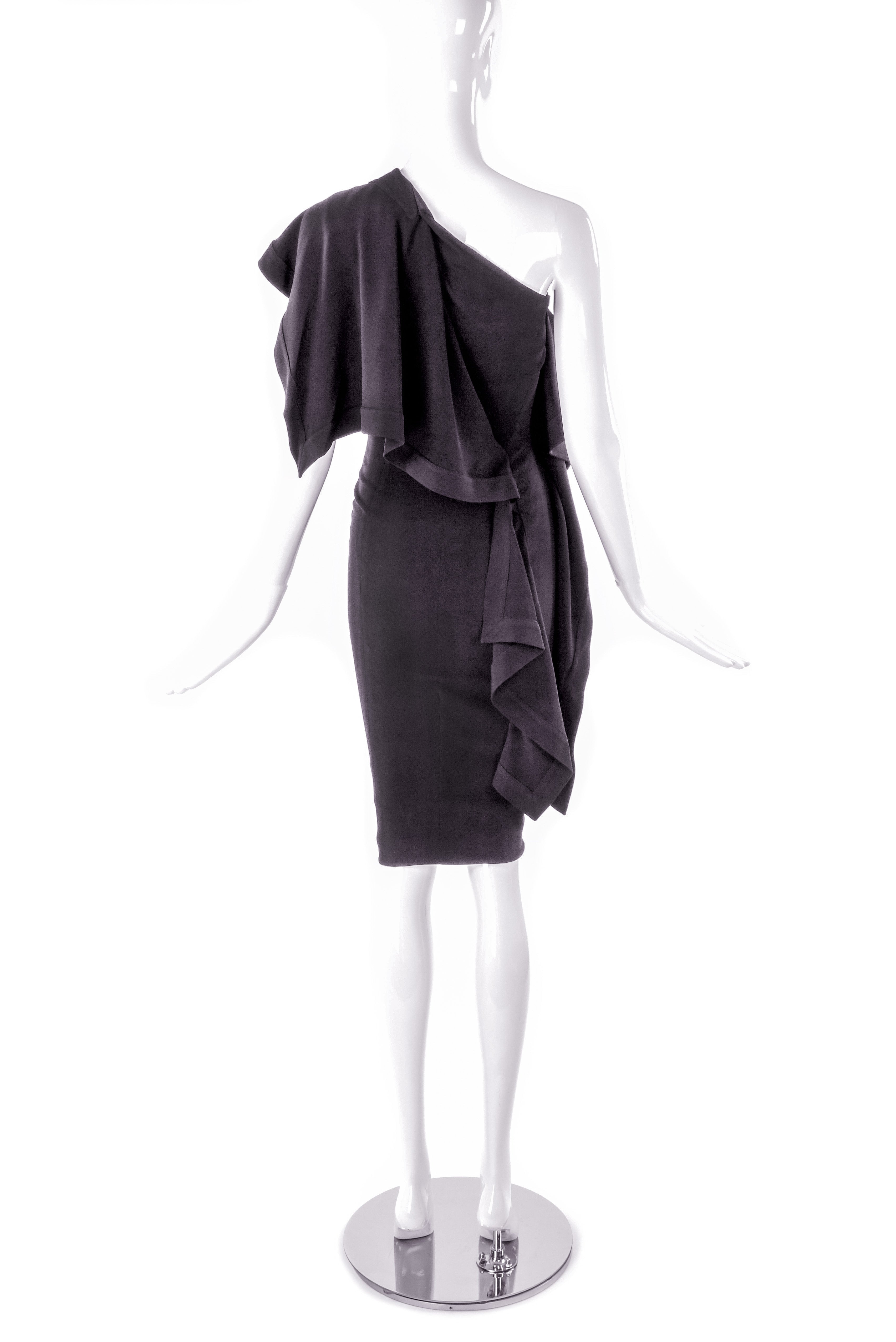 An Antonio Berardi black silk crepe midi length cocktail dress with draped one shoulder.