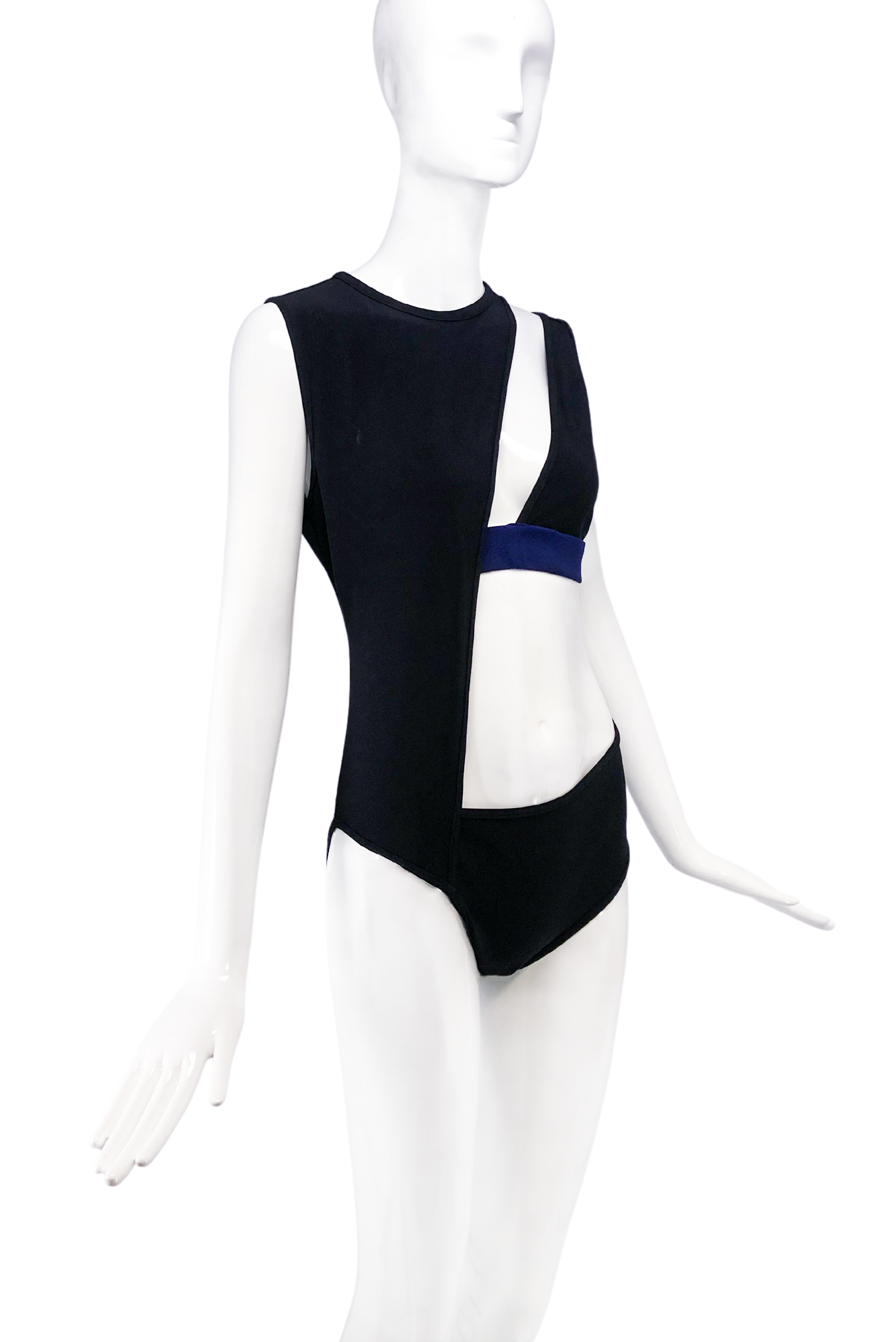Anthony Vaccarello Black Cut Out Bathing Suit Blue Strap Spring Summer 2012