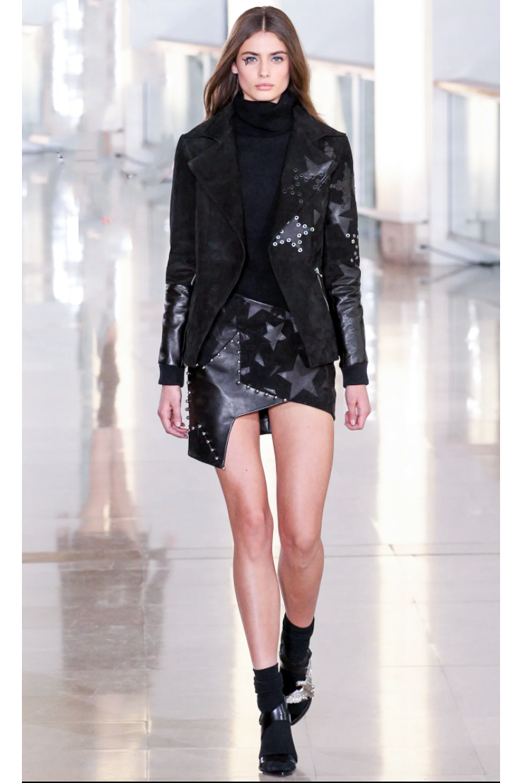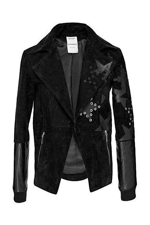 Anthony Vaccarello Black Suede Grommet Stud Star Leather Jacket Runway Fall 2015