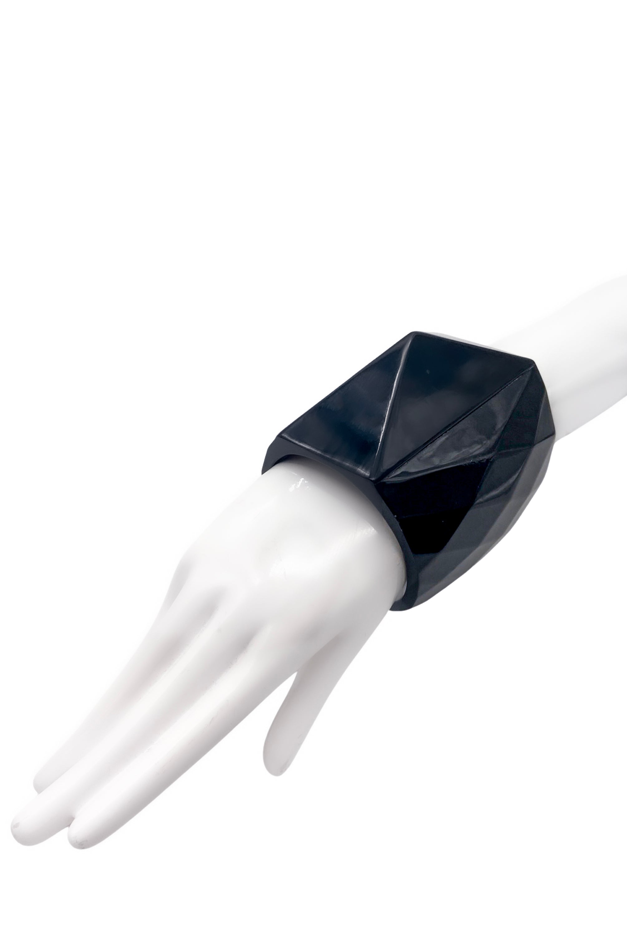 Armani Black Oversized Bezel Facet Cut Resin Lucite Bracelet