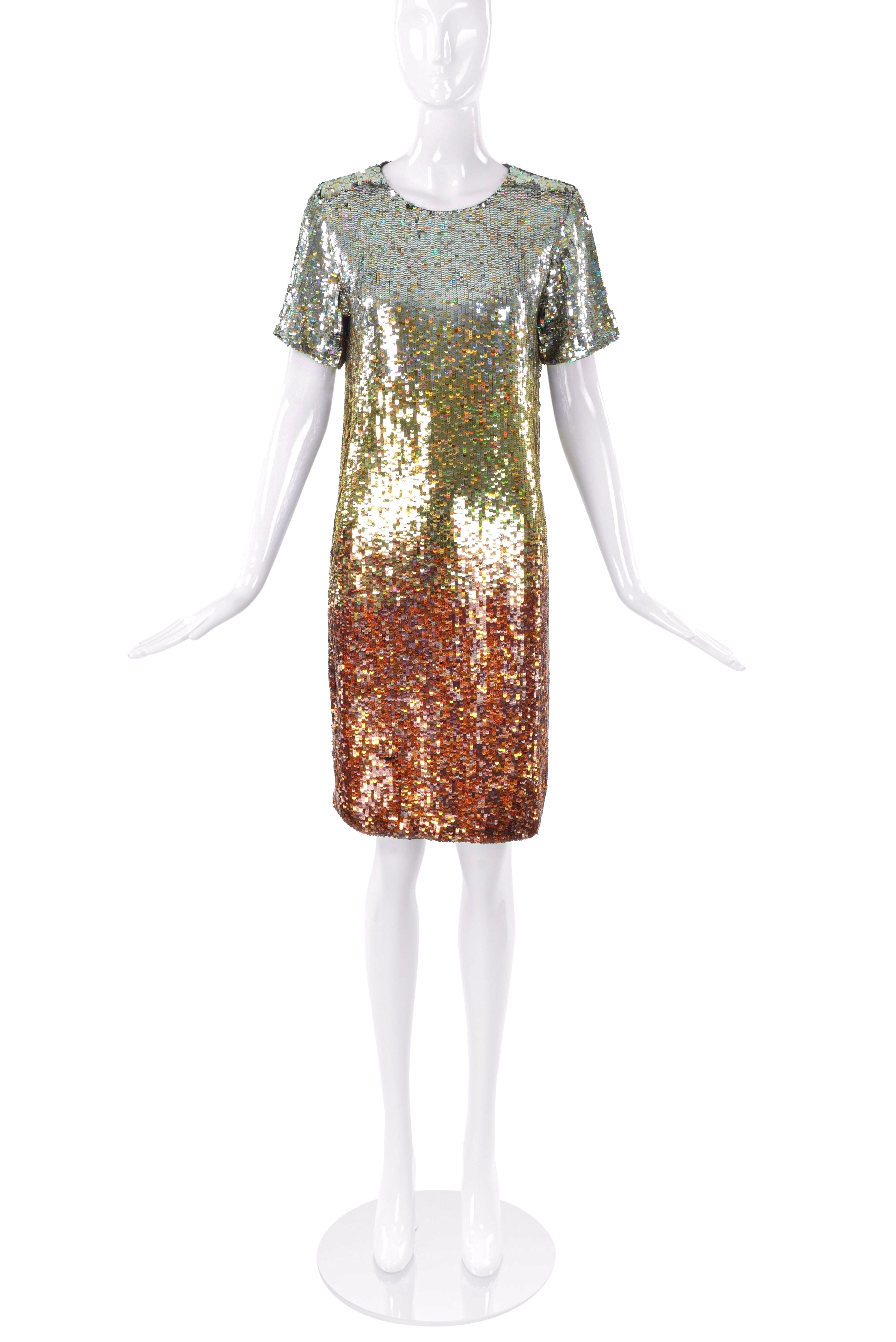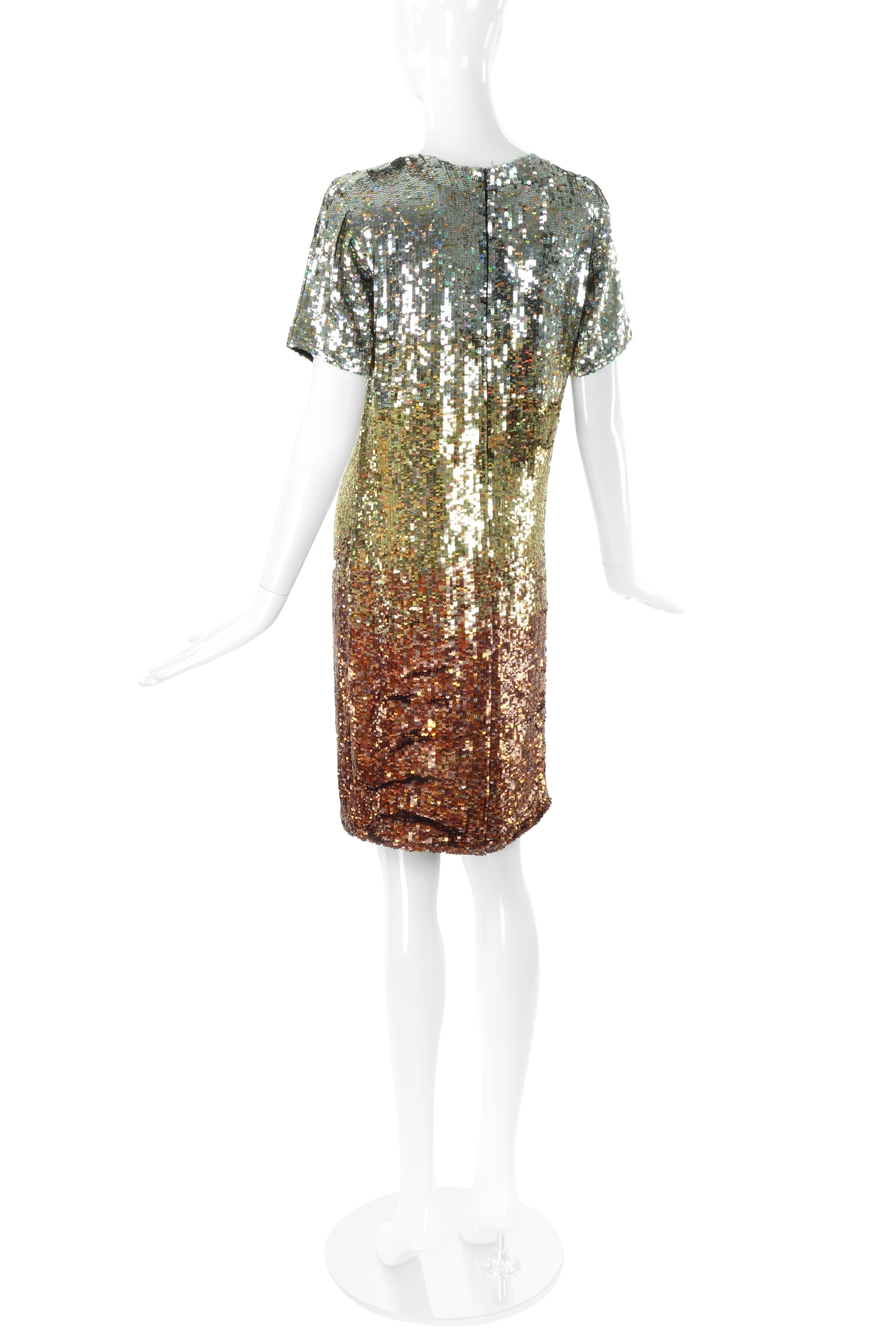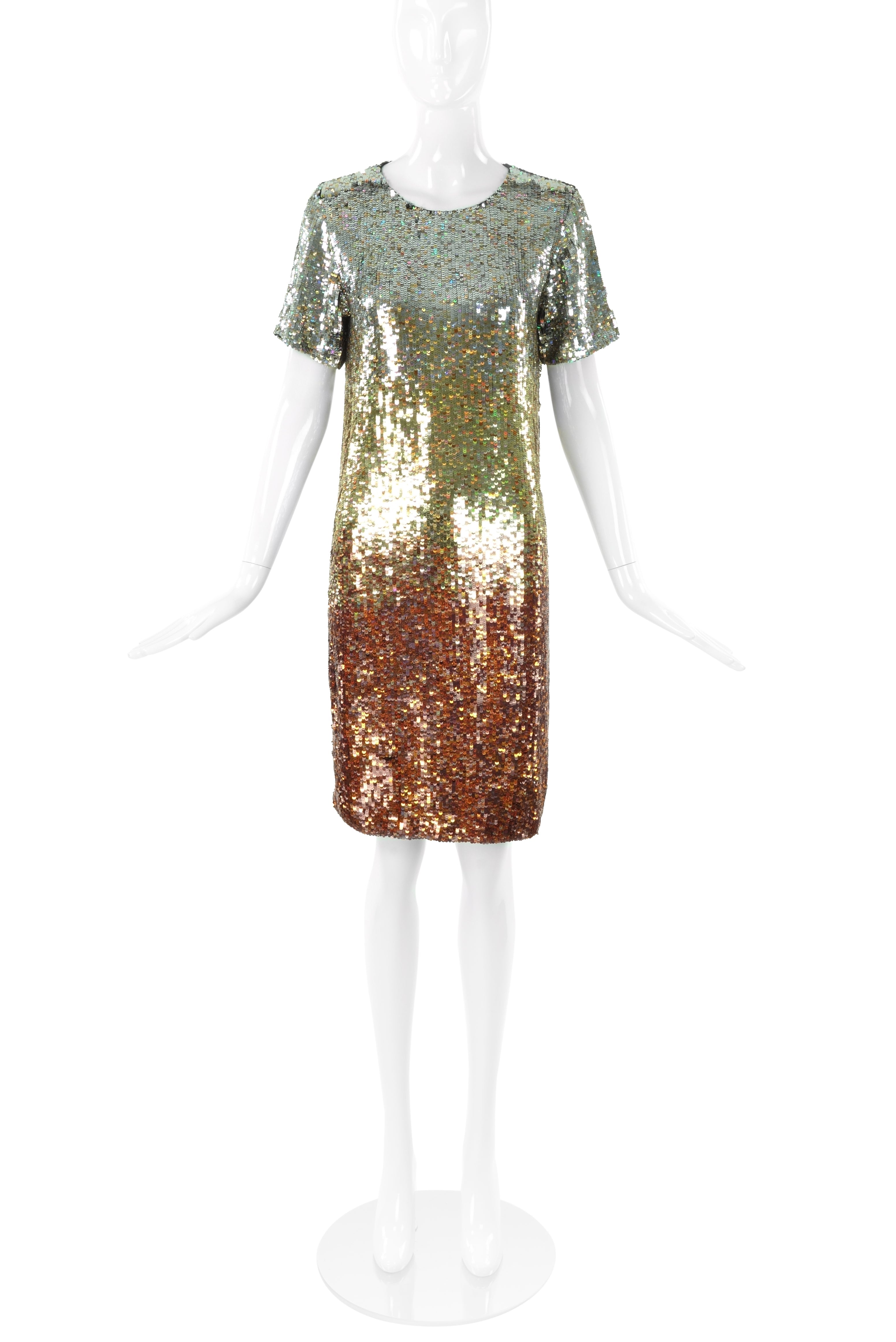 An Ashish ombré silver, gold and bronze sequin mini t-shirt dress. From the Ashish Fall / Winter 2007 runway presentation.