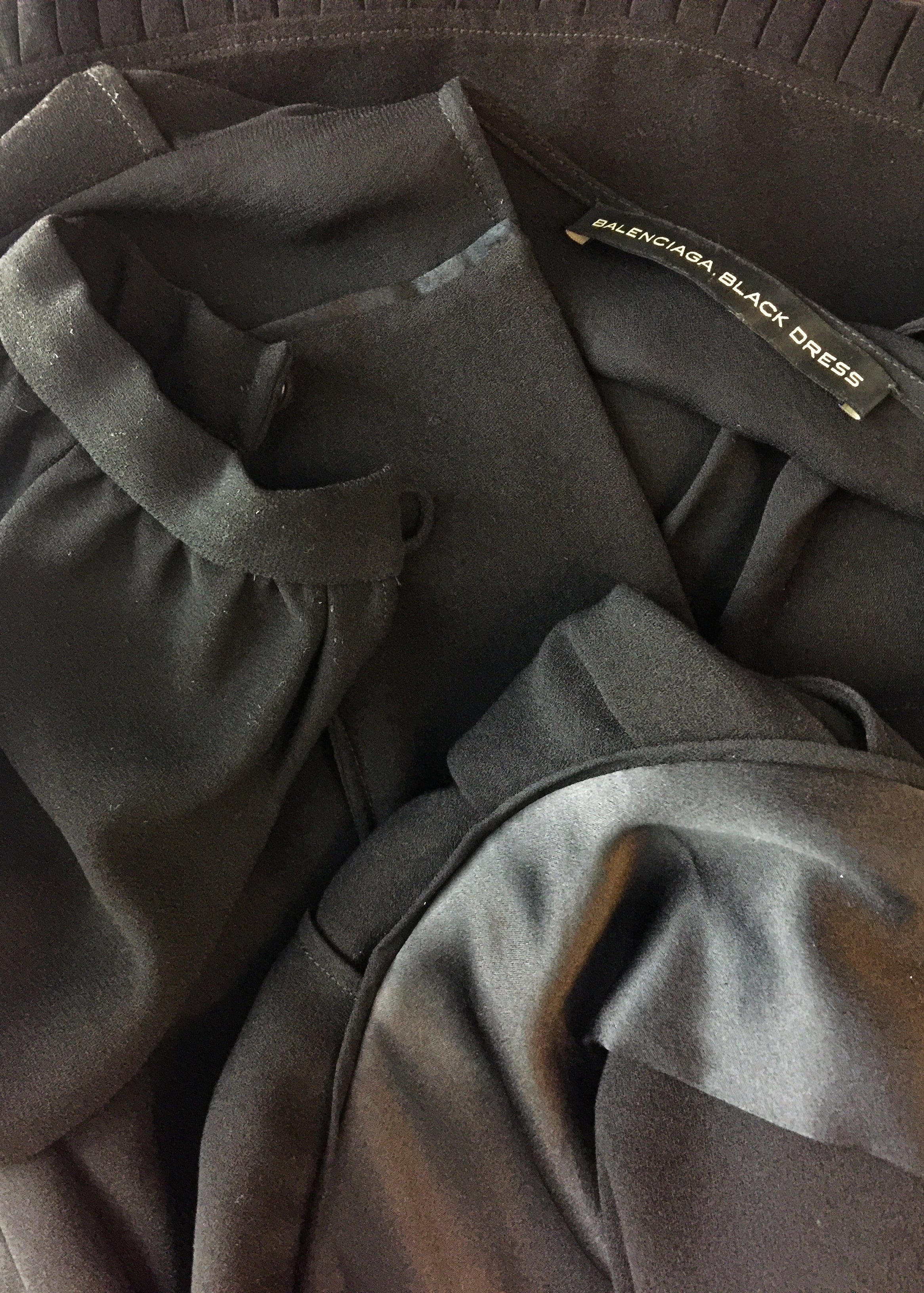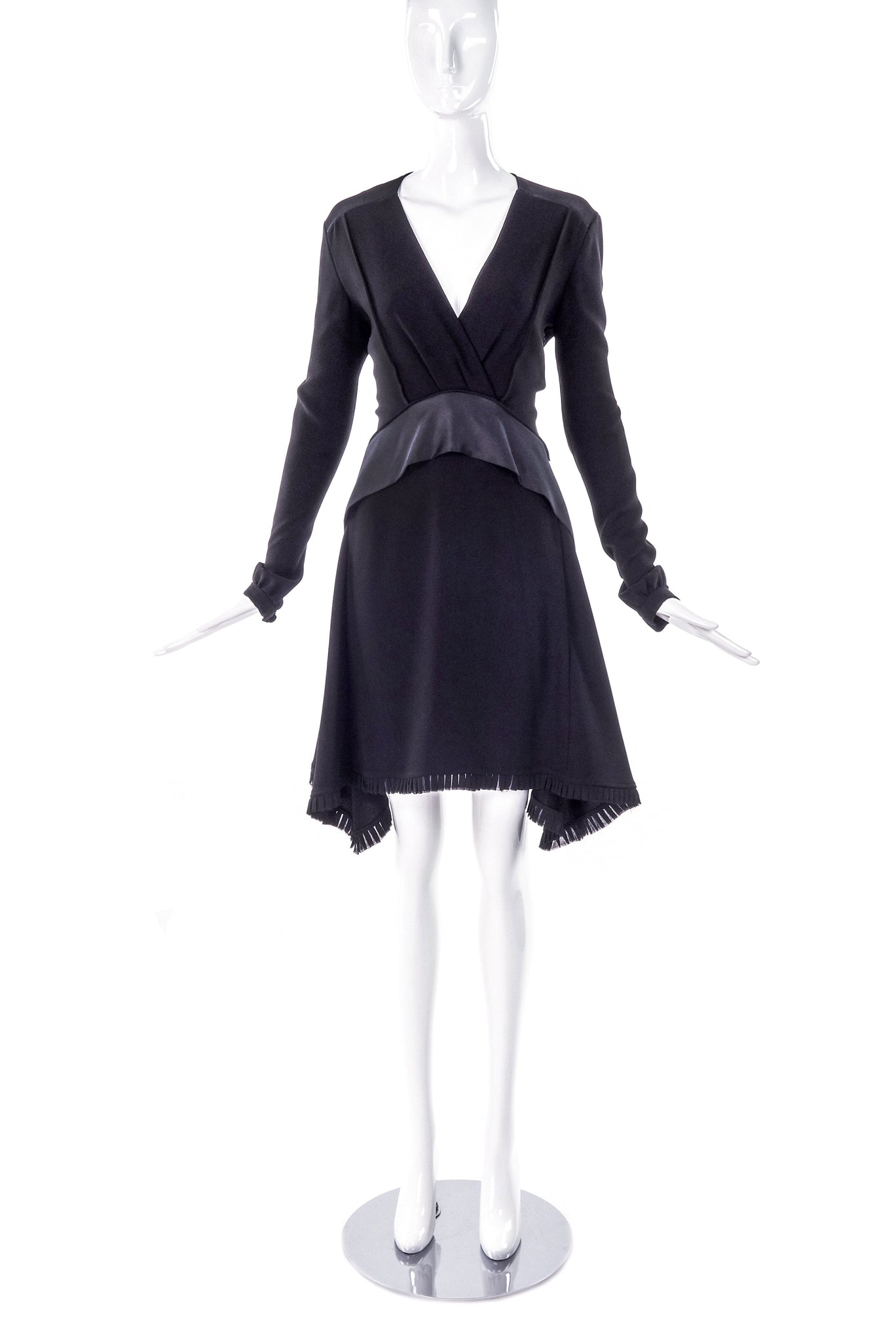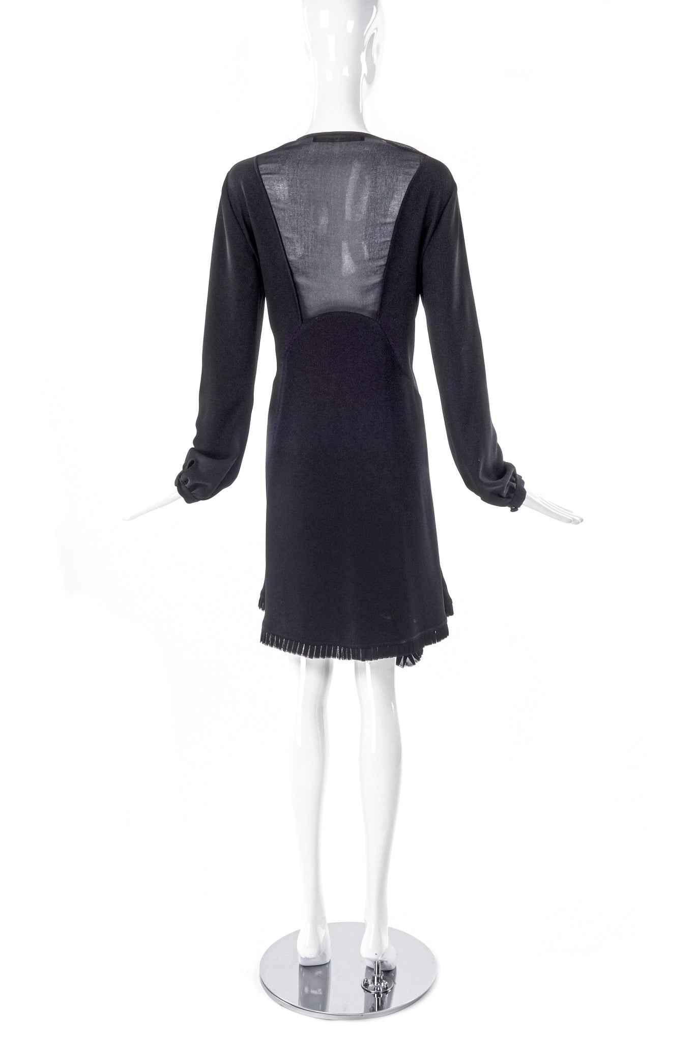 Balenciaga Black Silk Crepe Long Sleeve Dress with Satin Tier Detail