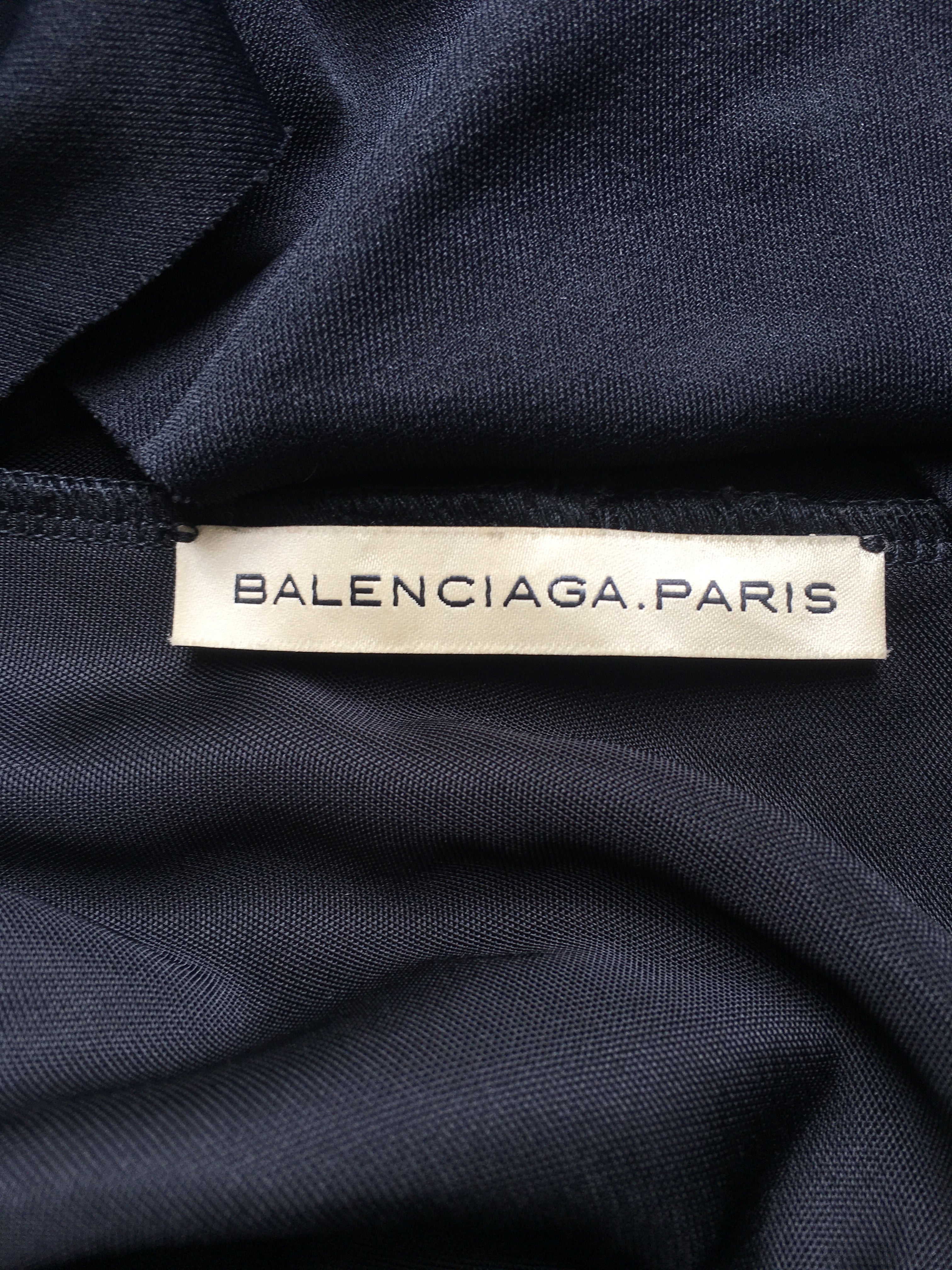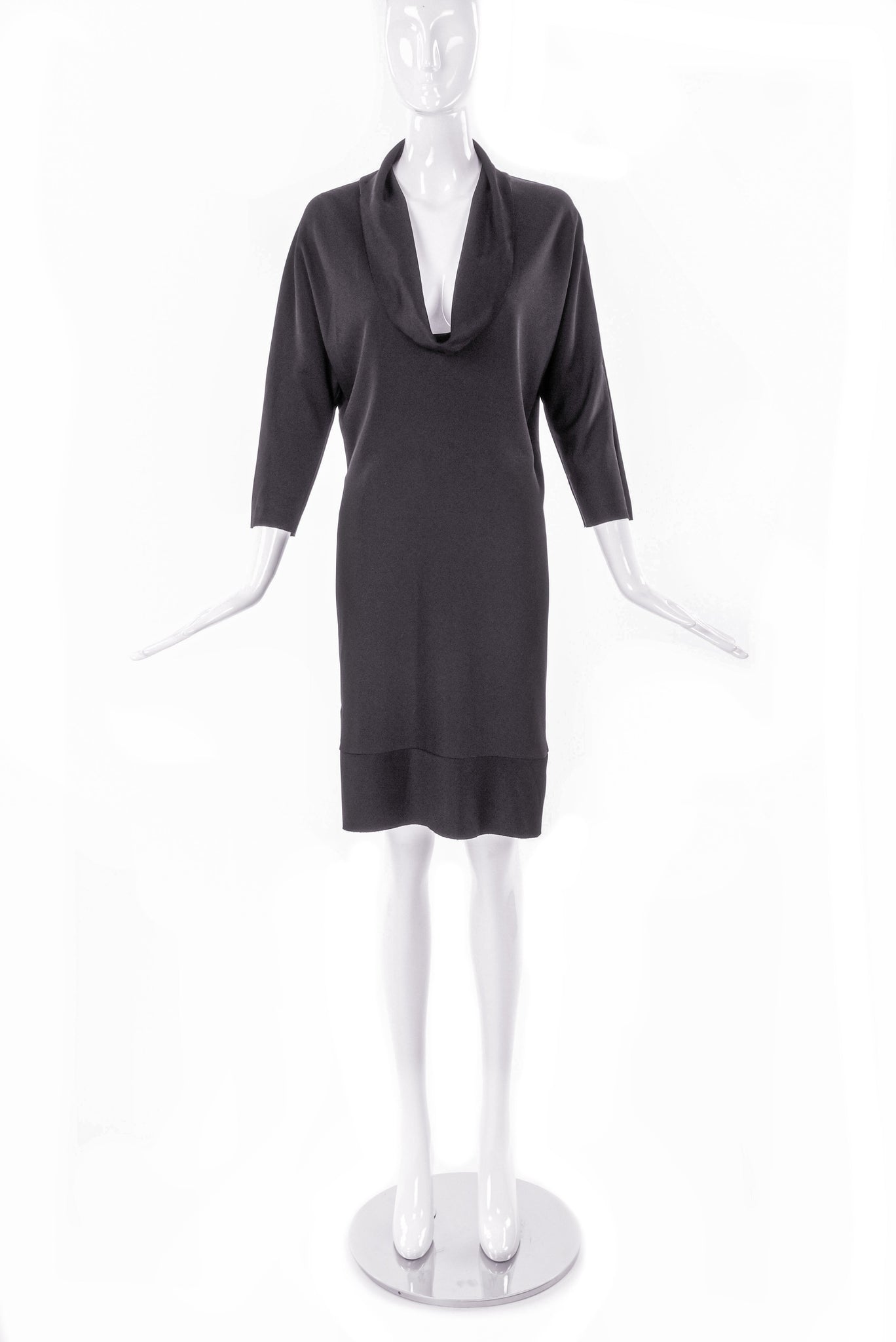 From the iconic Balenciaga "Scuba" Collection by Nicolas Ghesquiere. A black neoprene cowl neck shift dress.