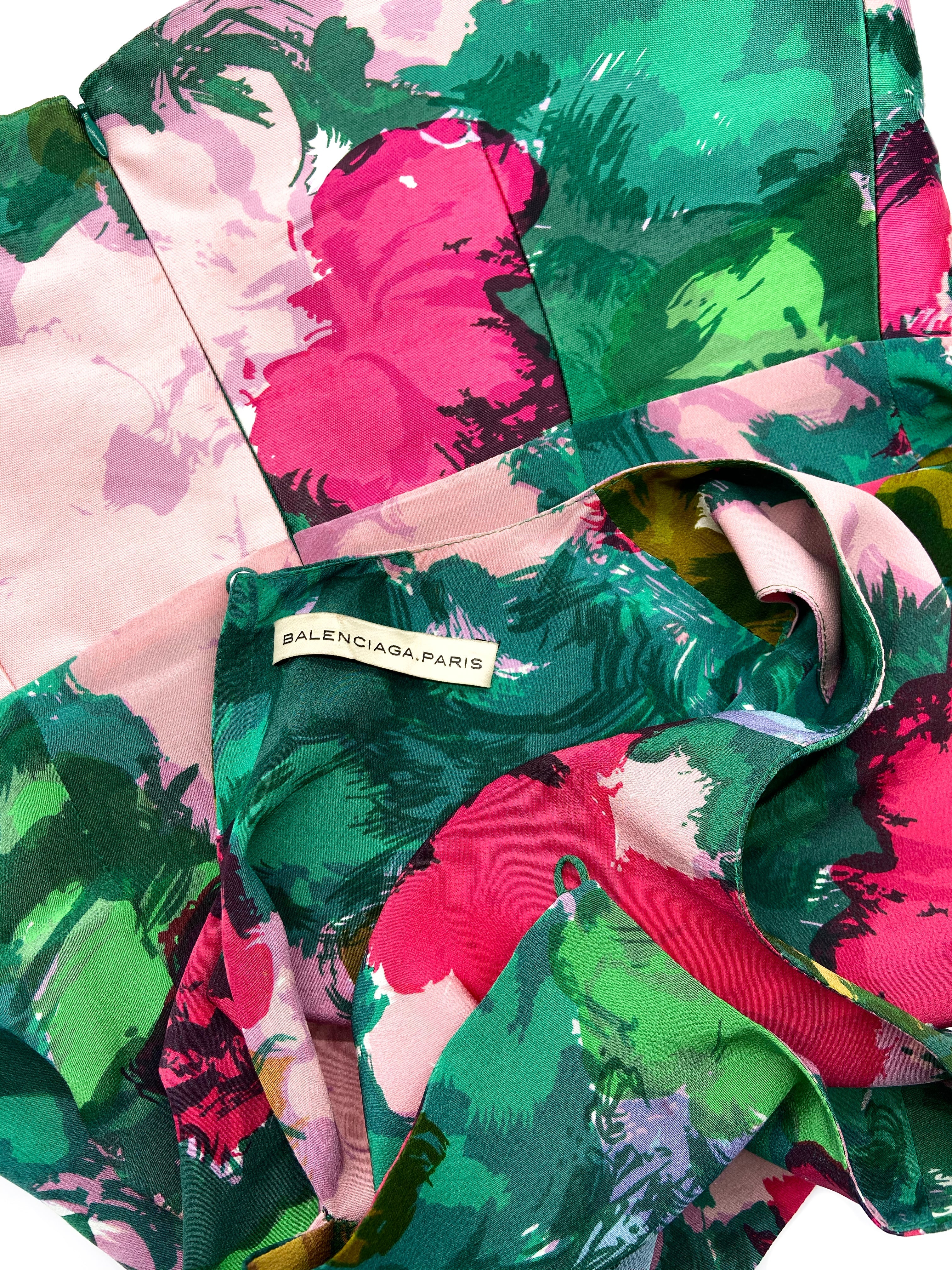 A Balenciaga structured floral print sleeveless blouse. From the iconic Balenciaga by Nicolas Ghesquière Spring / Summer 2008 collection. The top has a structured quality that highlights the creative energy Ghesquiere's brought to the house and executed by the expert technique of the house petit mains.