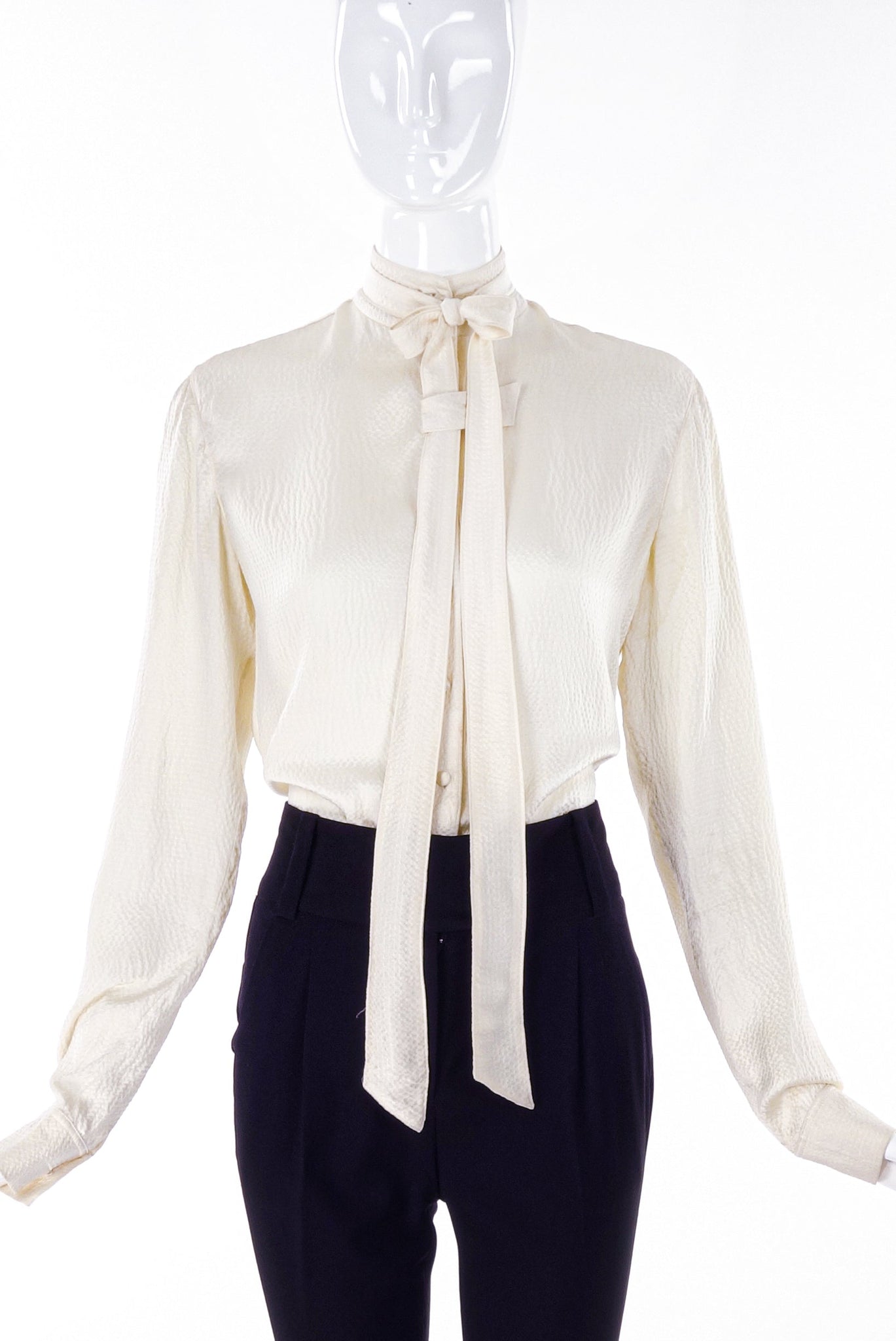 Balenciaga Ivory Wrinkle Silk Button-Up Bow Blouse