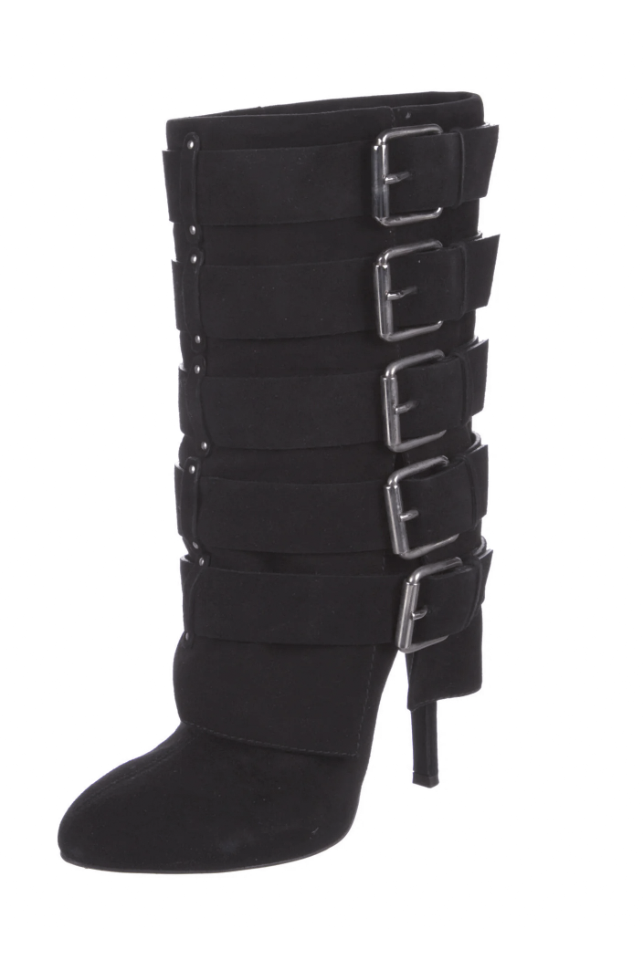 Balmain x Giuseppe Zanotti Black Suede Multi Buckle Heel Boot Shoe FW2009