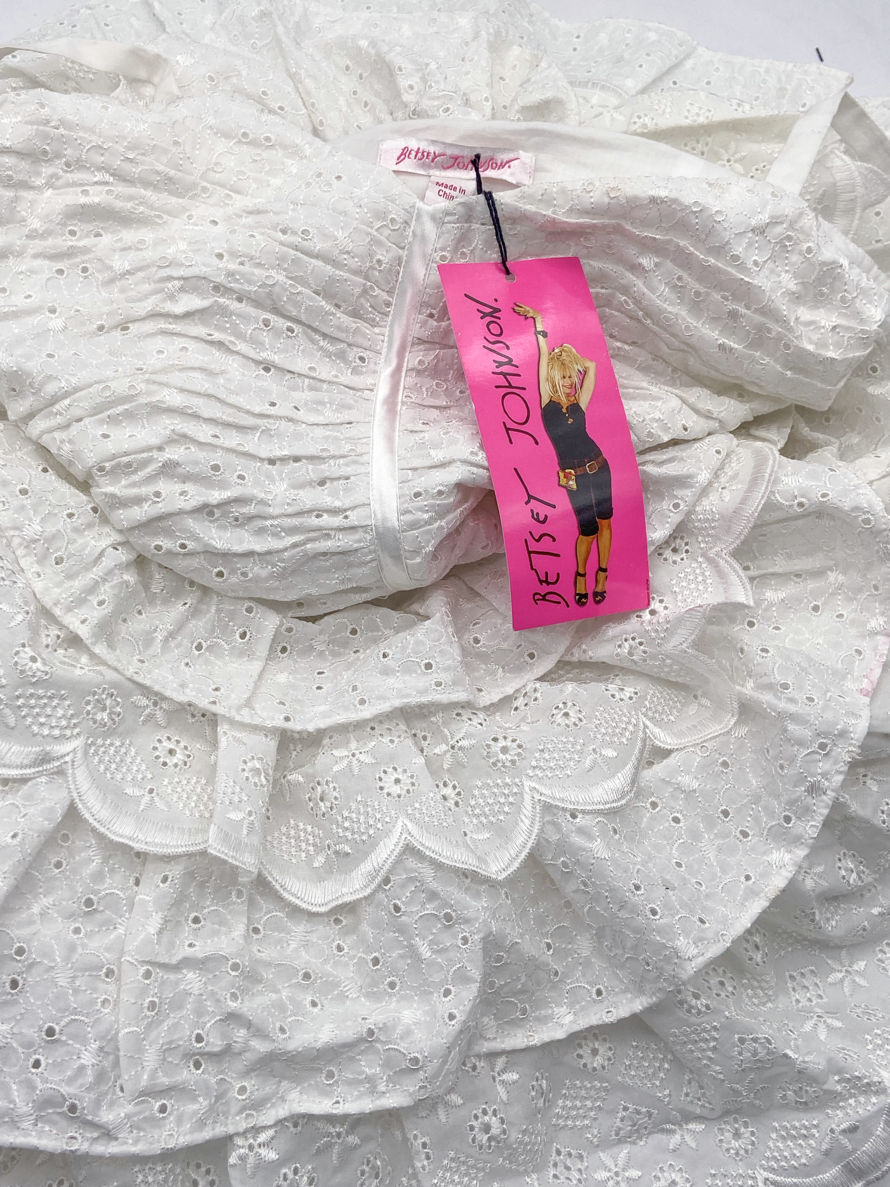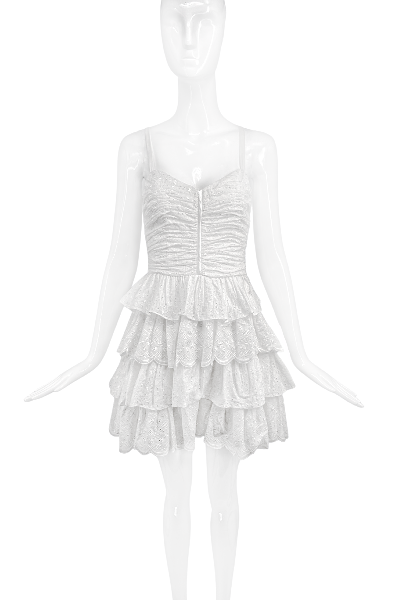 Betsey Johnson Vintage White Eyelet Lace Ruffle Tiered 'Like a Virgin' 'Pretty Baby' Mini Dress