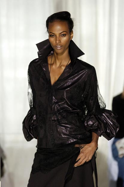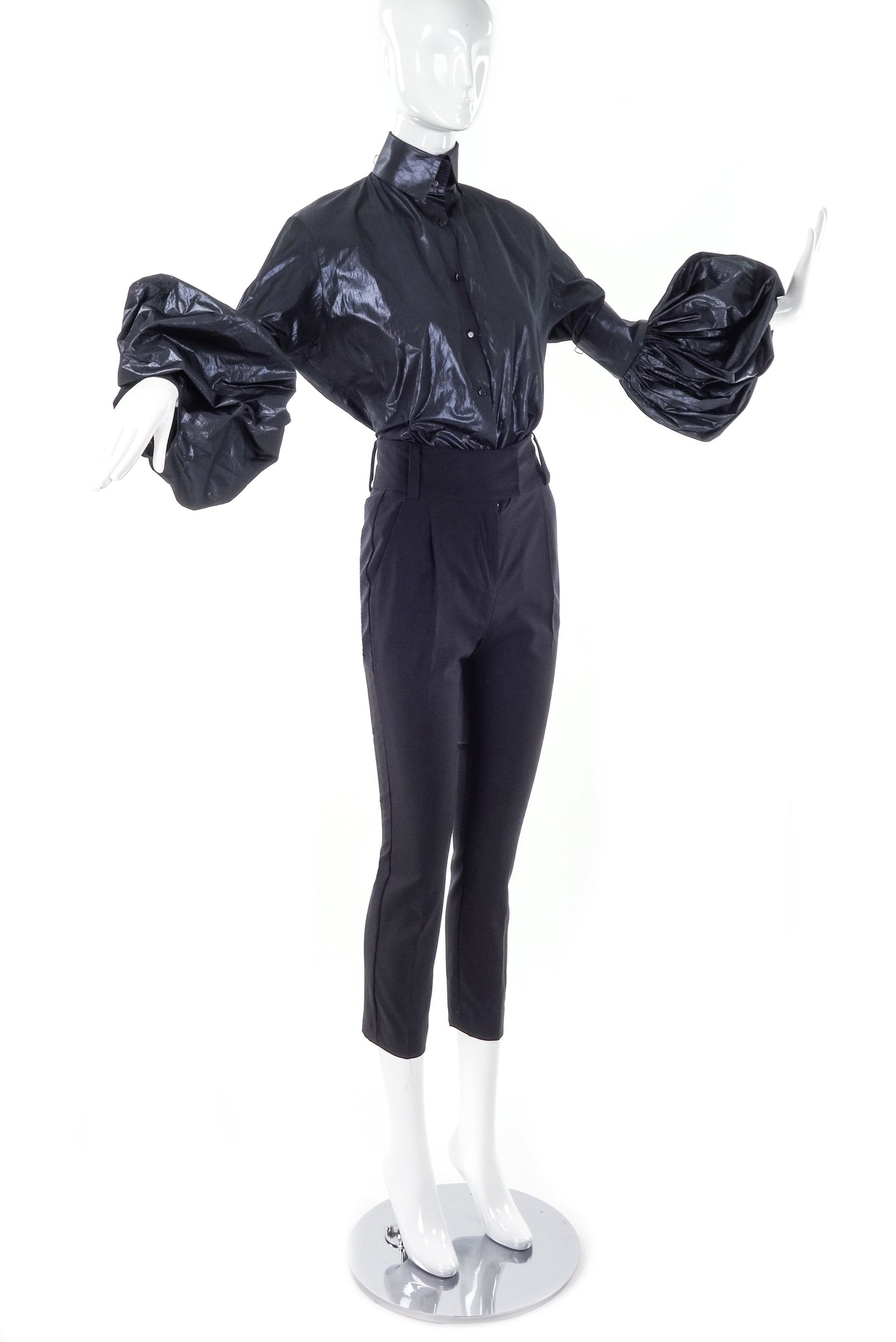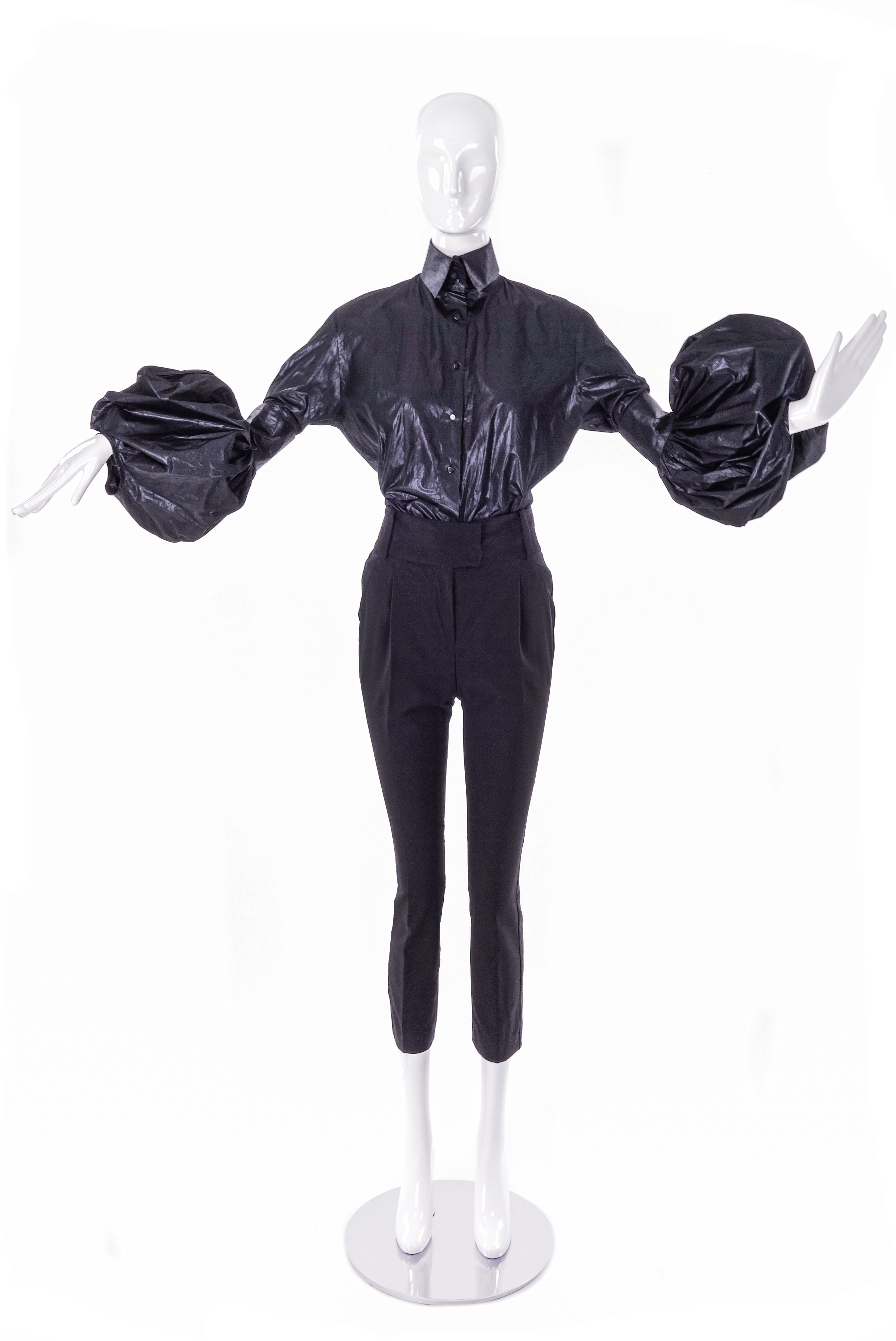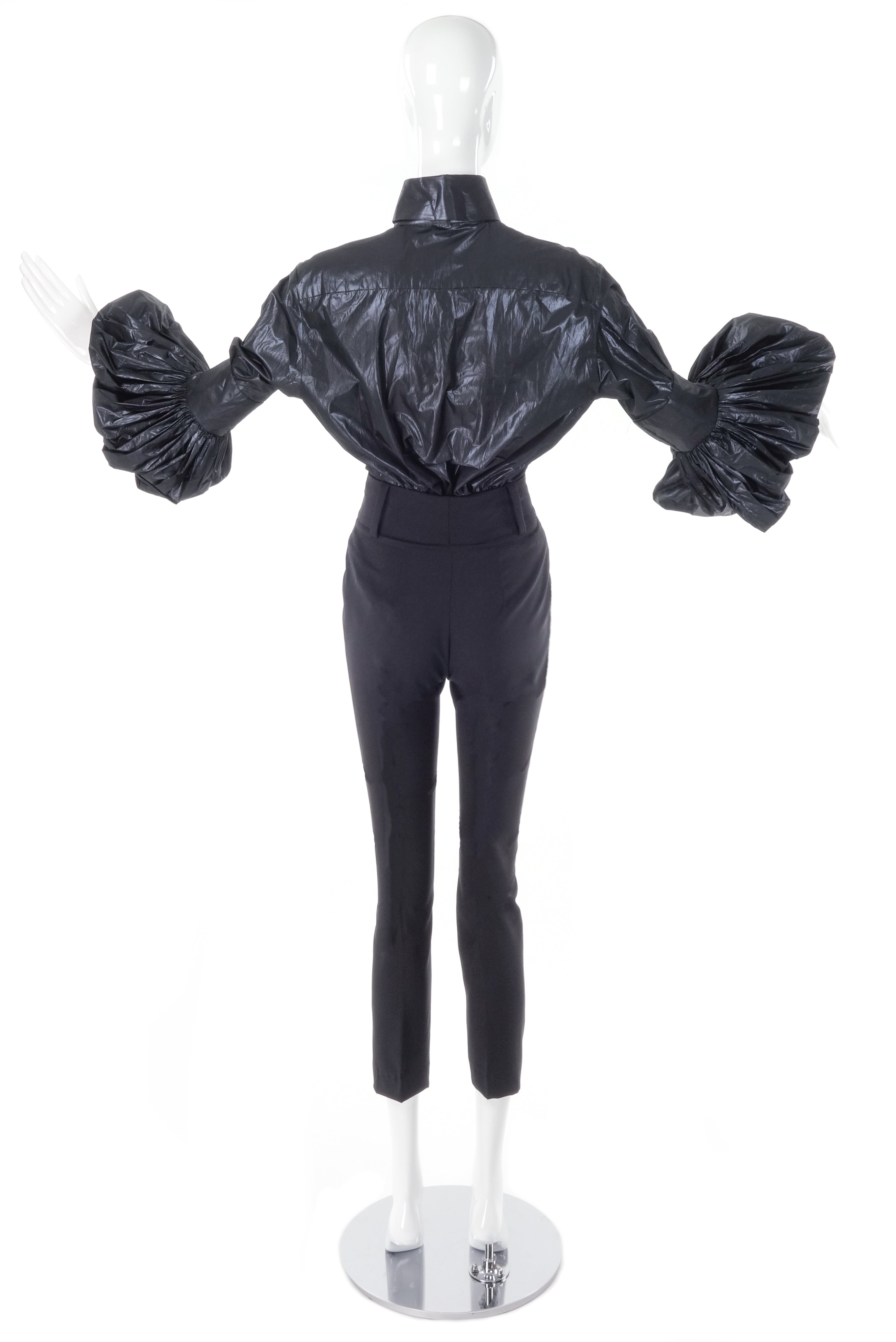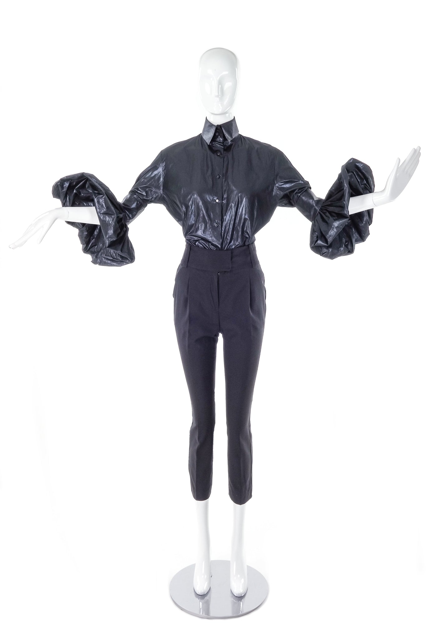 Boudicca Black Shine "Trash Bag" Shirt Blouse with Sculptural Balloon Sleeve FW2005