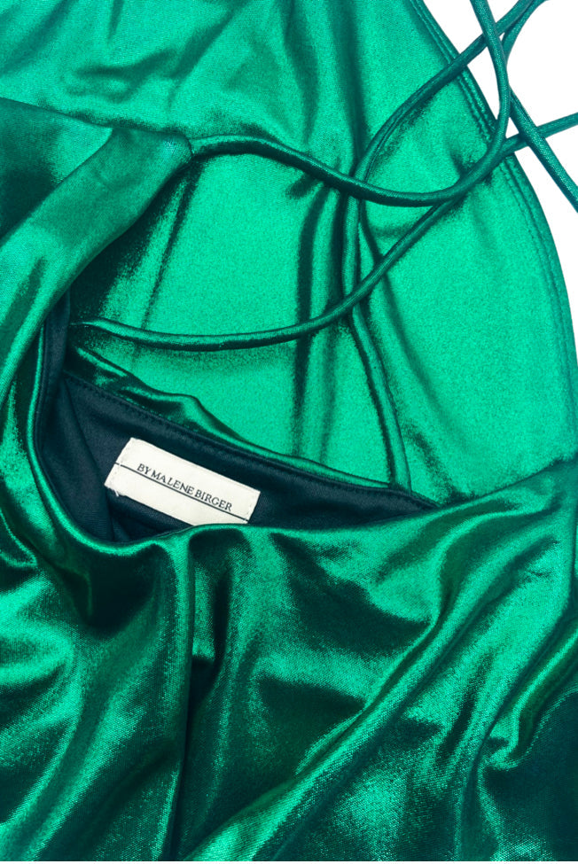 By Malene Bircher Metallic Green Ruffle Body Suit
