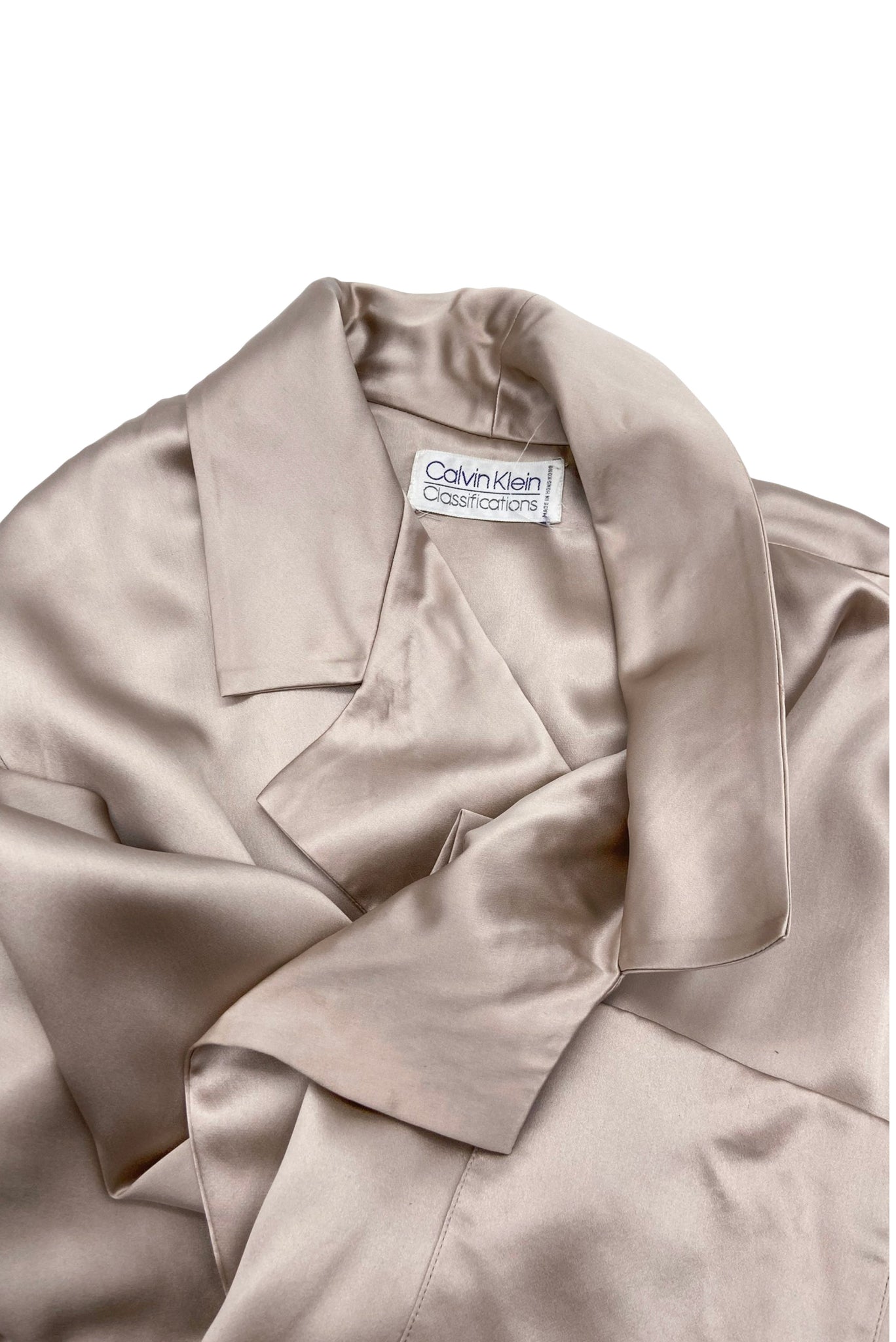 Calvin Klein Taupe Champagne Silk Vintage 80's Jacket Blouse Shirt
