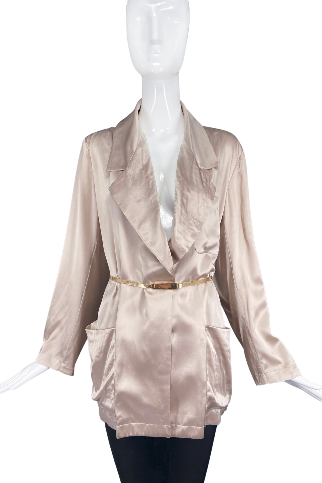 Taupe Champagne Silk Calvin Klein Classifications 80's Jacket - shown below with gold Gucci belt.