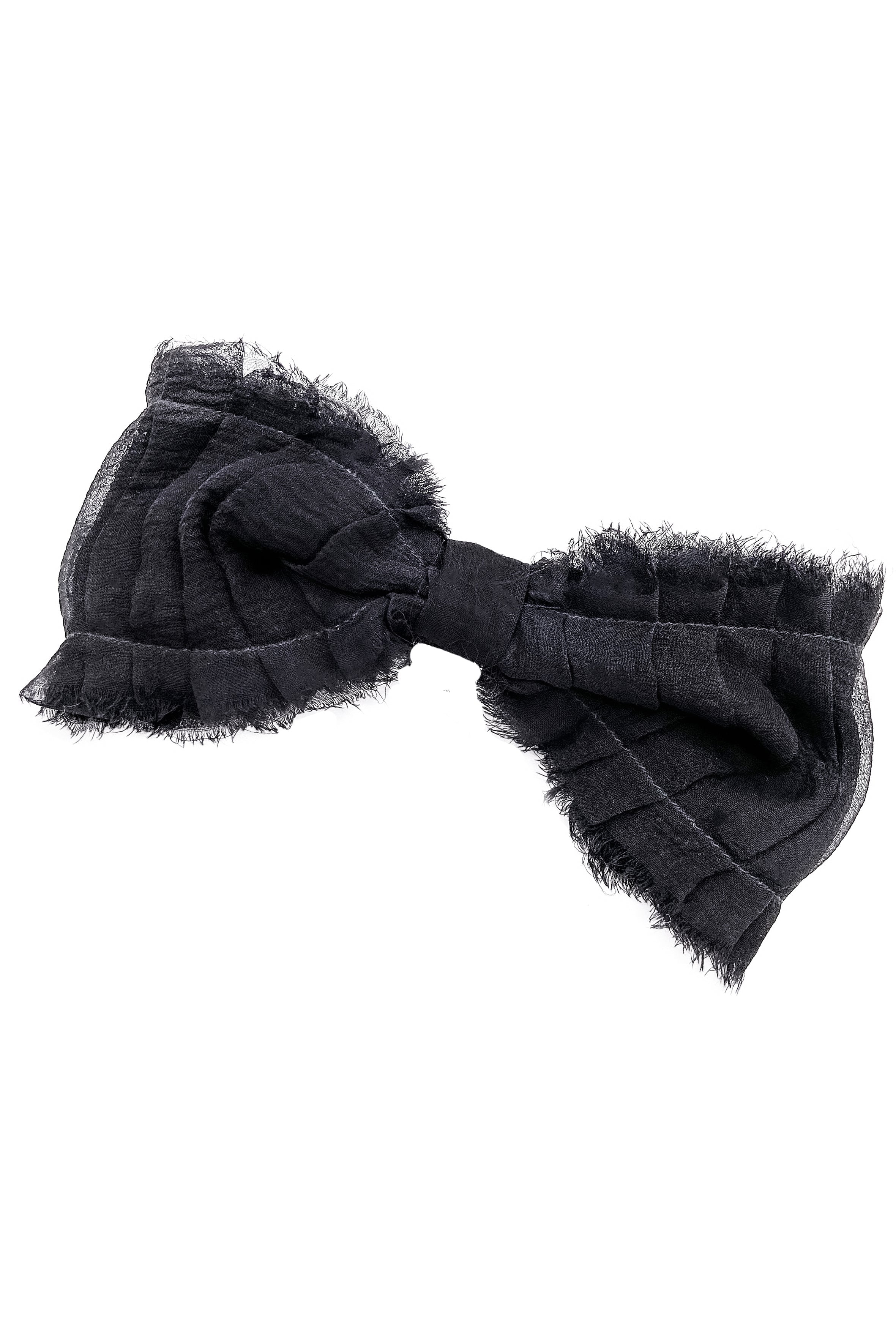 Chanel Black Chiffon Pleated Raw Edged Hair Bow