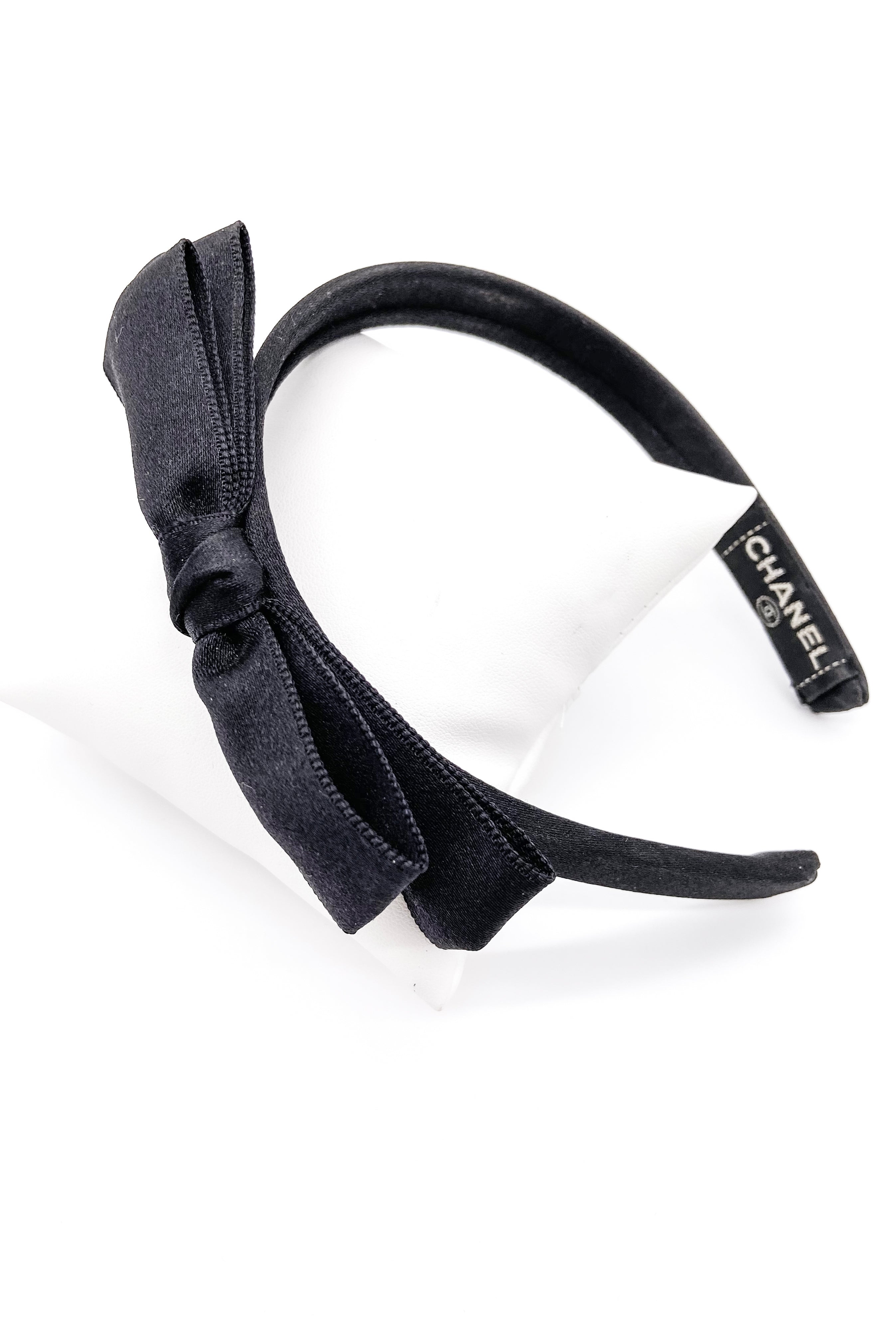 Also available Chanel black satin double bow headband and Chanel black satin gold cc logo hair bow.