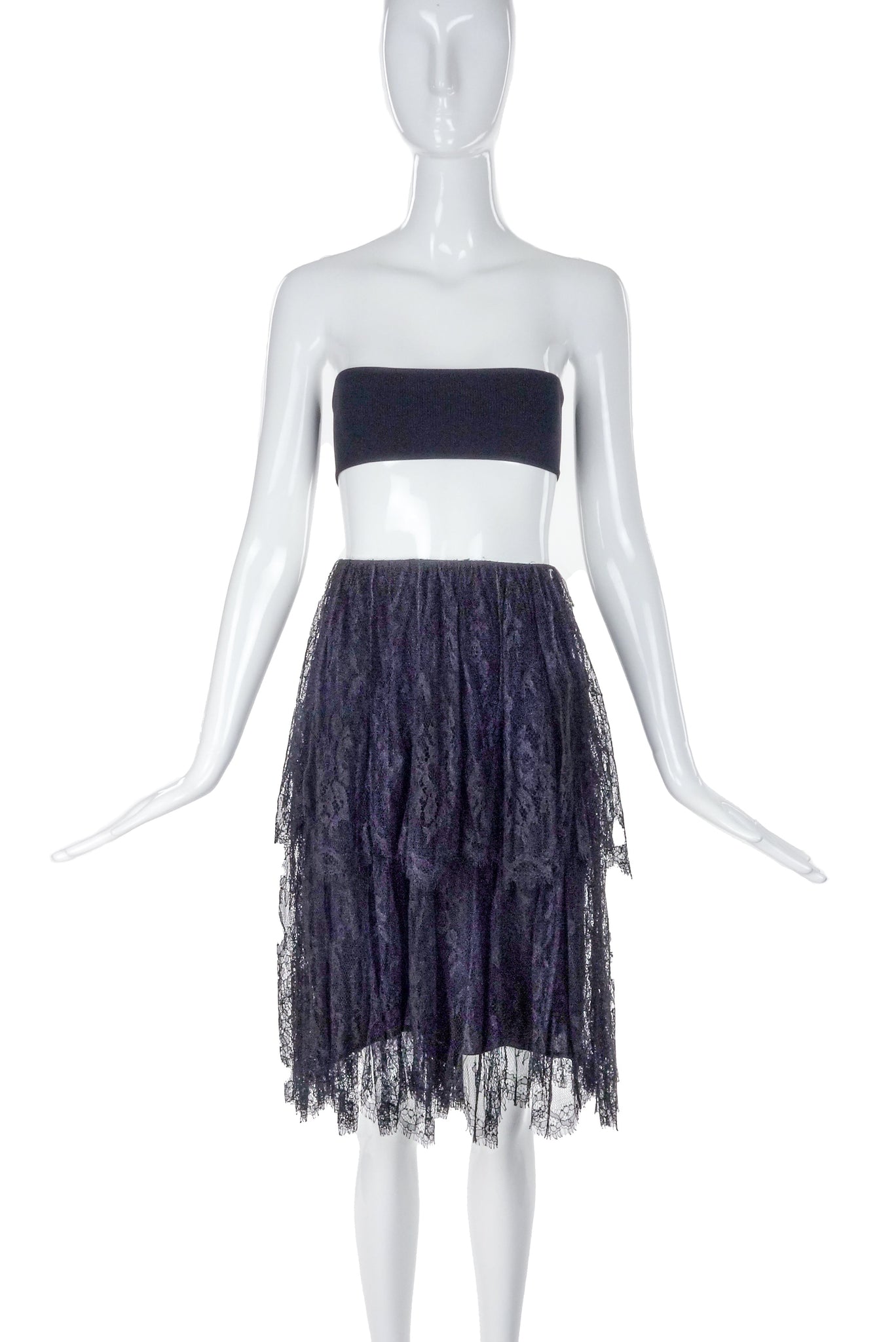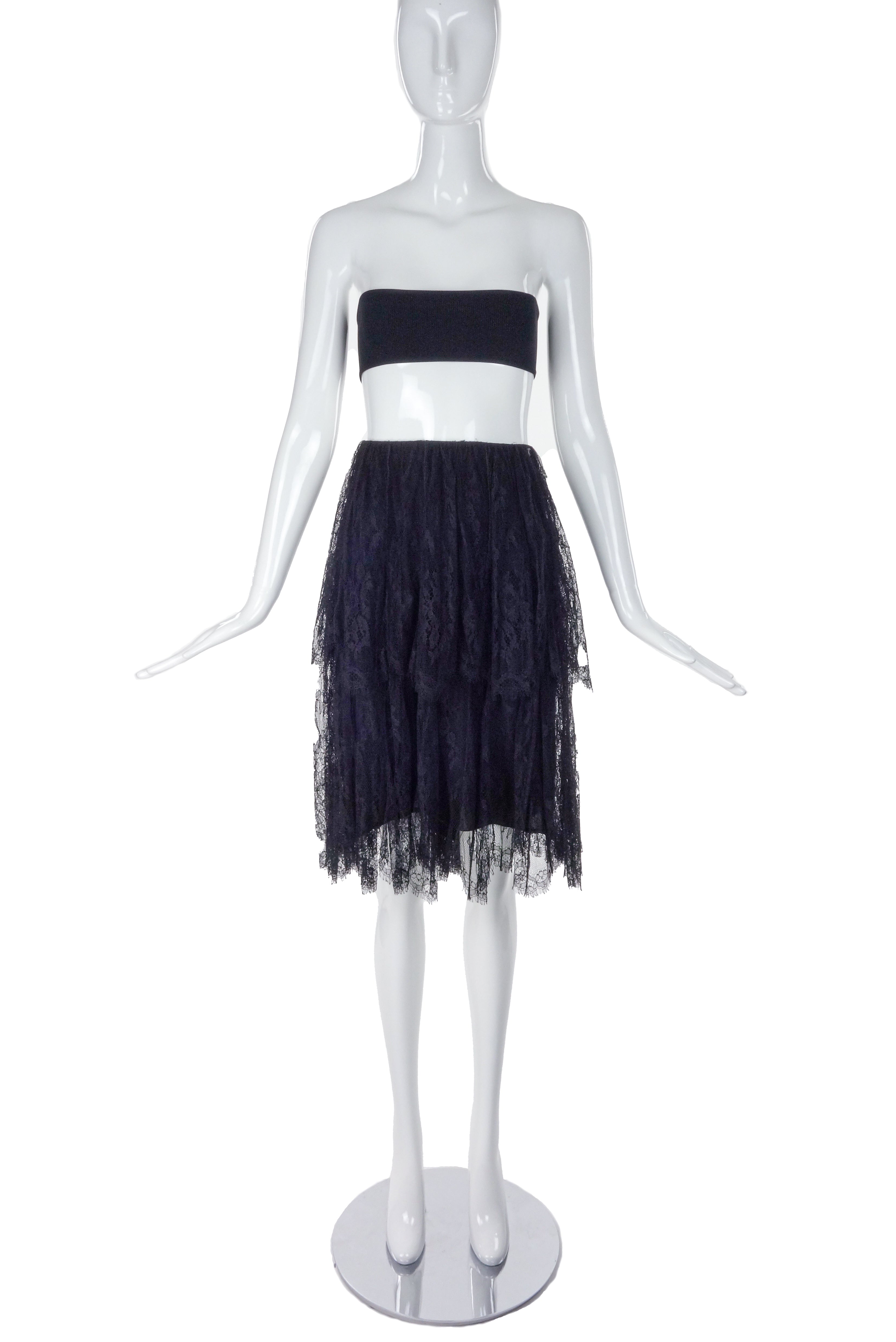 Chanel Black Floral Lace Tiered Skirt SS2001