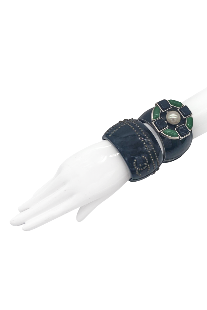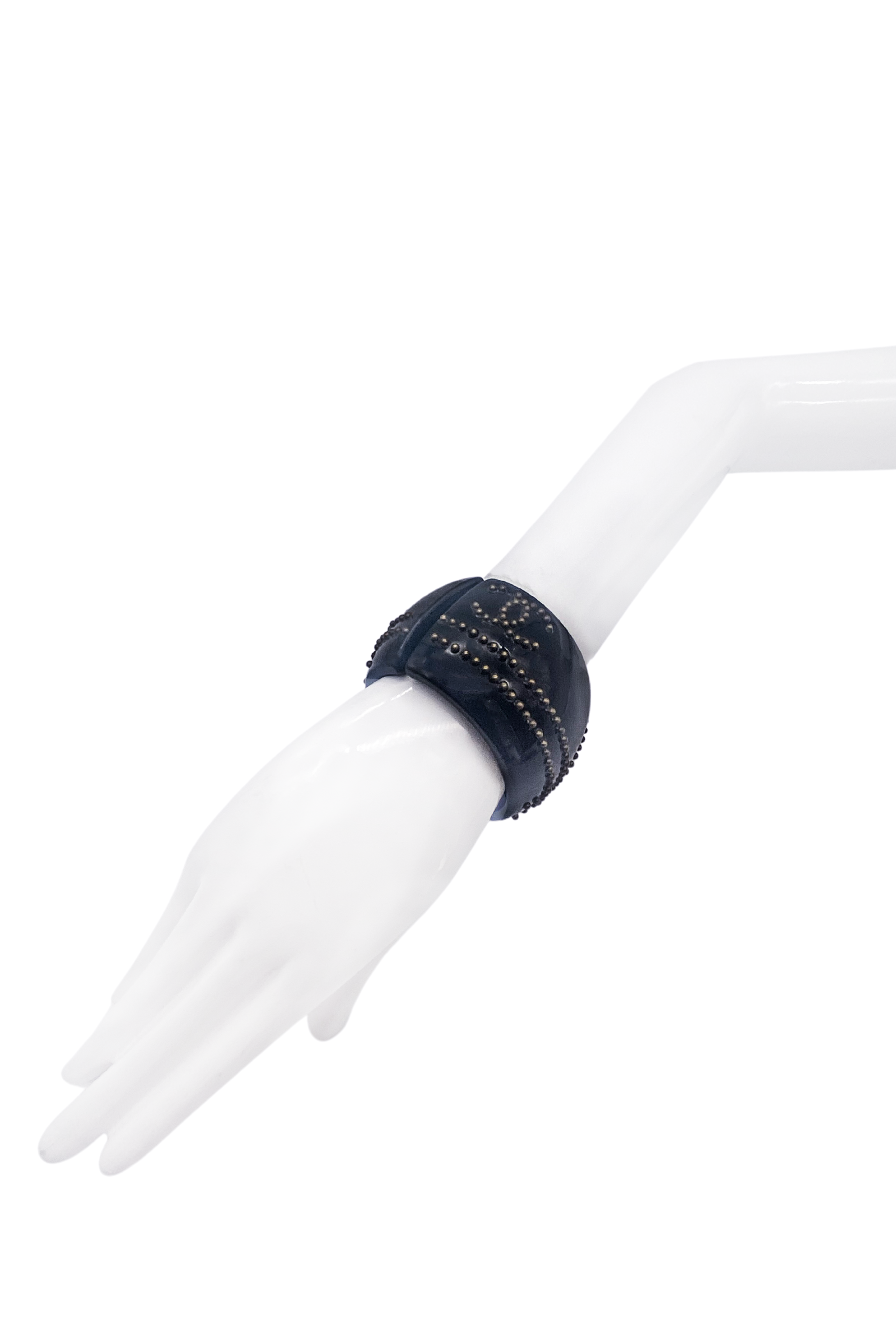 Chanel Black Resin Cuff Bracelet with Bronze Stud Details