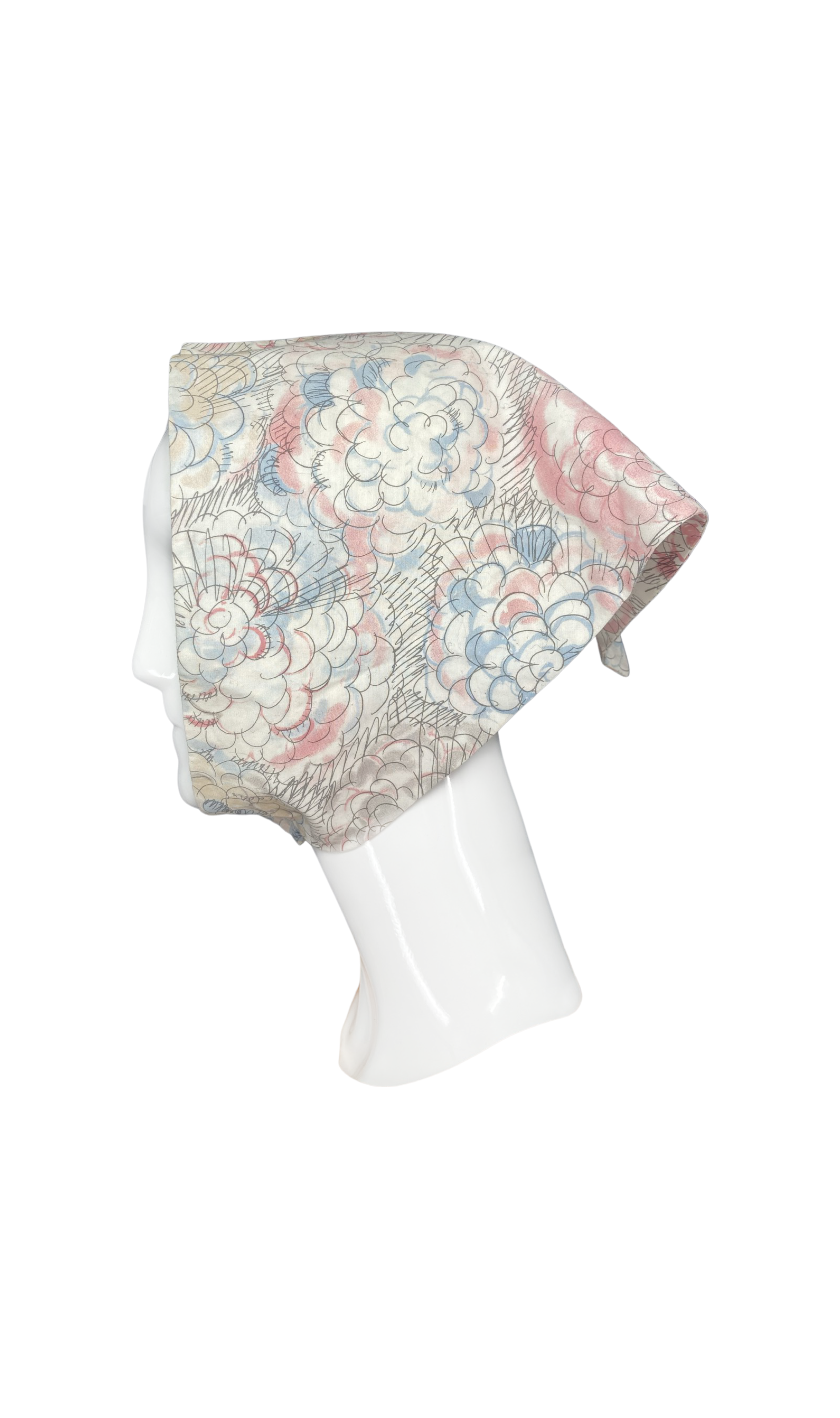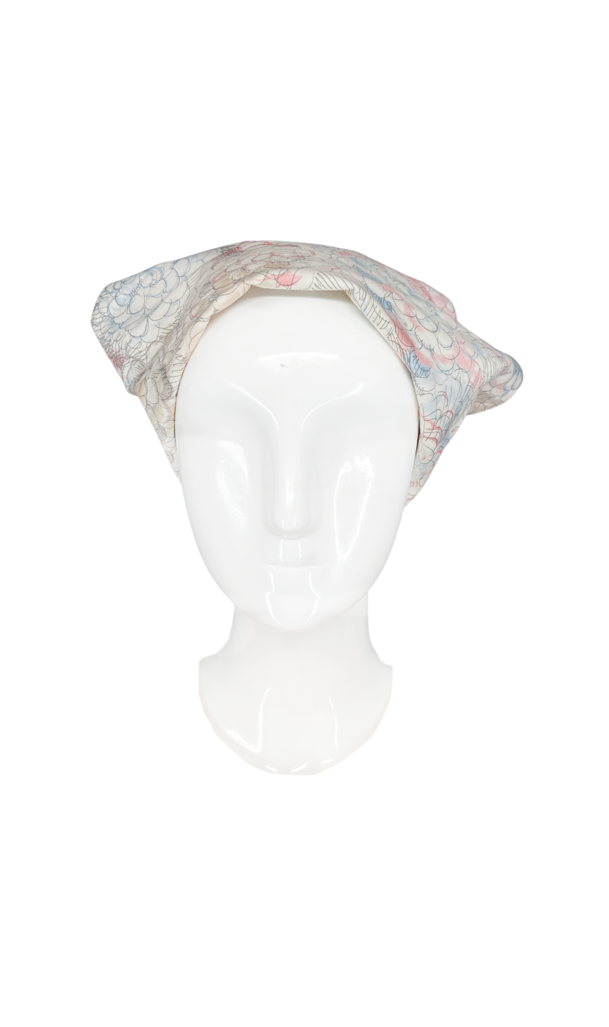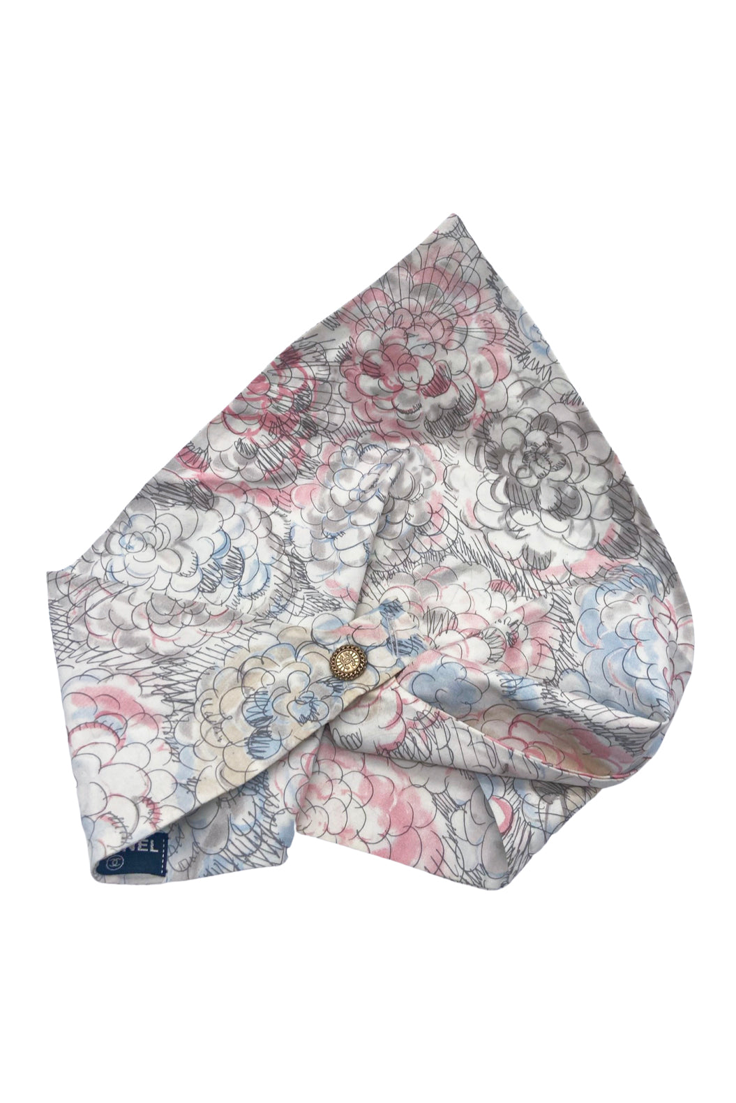 Chanel Floral Camellia Sketch Drawing Headscarf with Chanel Button