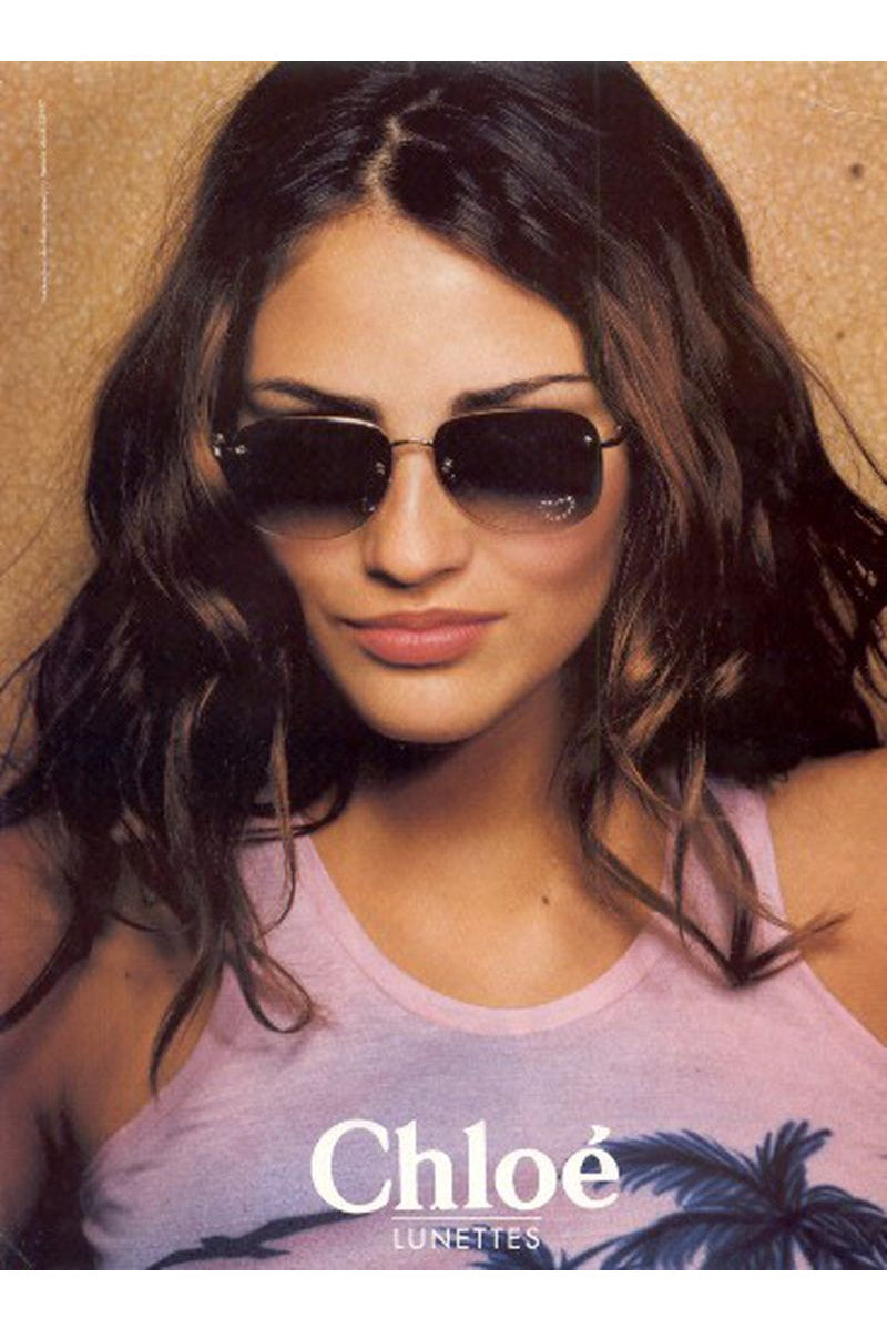 A pair of Chloé by Stella McCartney aviator style sunglasses with an ombré lens and a pink sparkling rhinestone heart detail on the left lens. The sunglasses were the IT fashion piece of 1999 and was created by Stella McCartney for the Blockbuster film Charlie's Angels starring Drew Barrymore, Cameron Diaz and Lucy Liu. As seen in the Chloé Spring / Summer 1999 ad campaign.