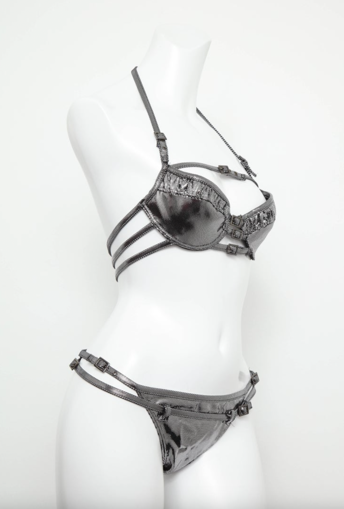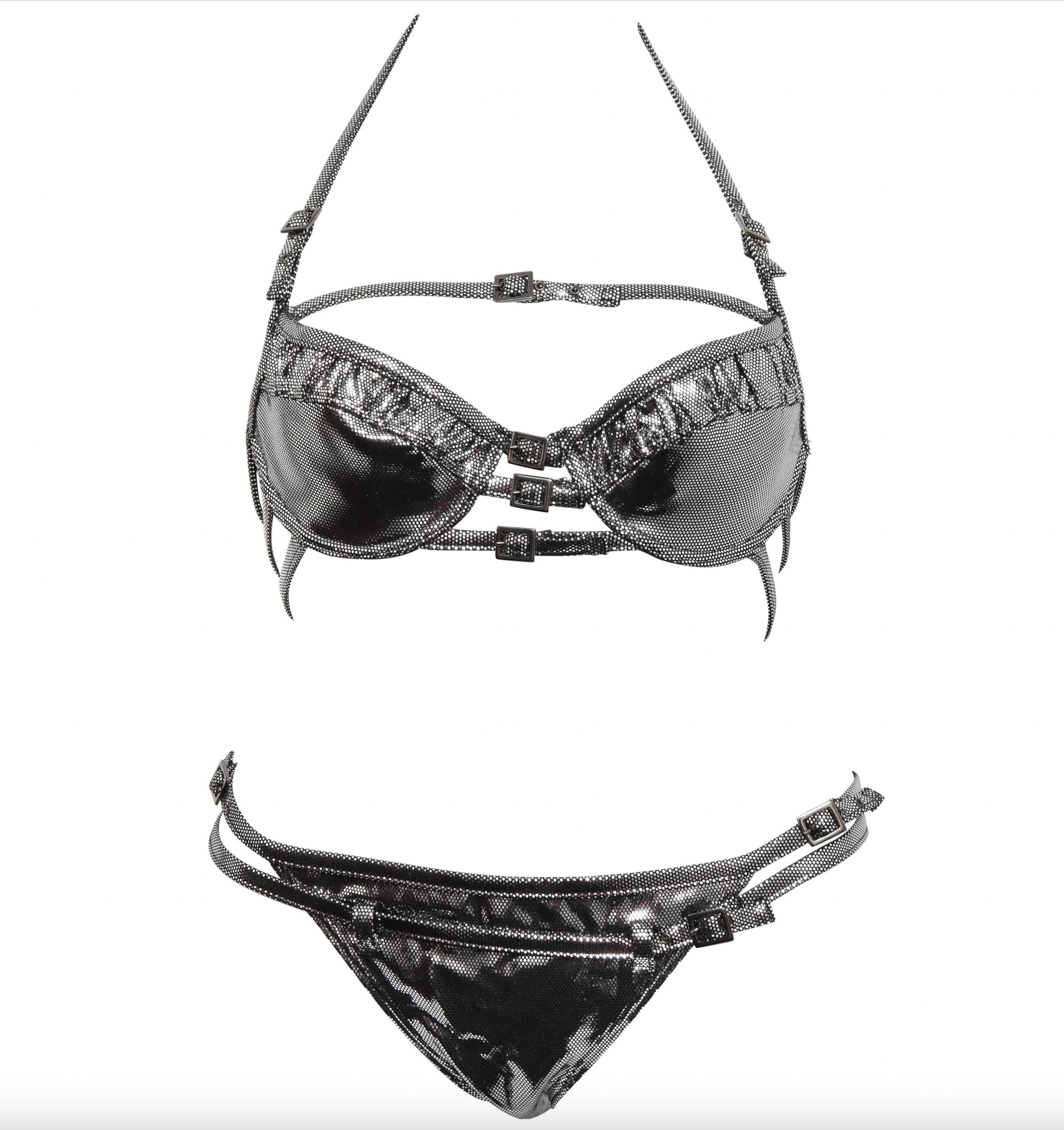 Christian Dior by Galliano Silver Metallic Corset Straps Bikini Two Piece Runway Summer 2003