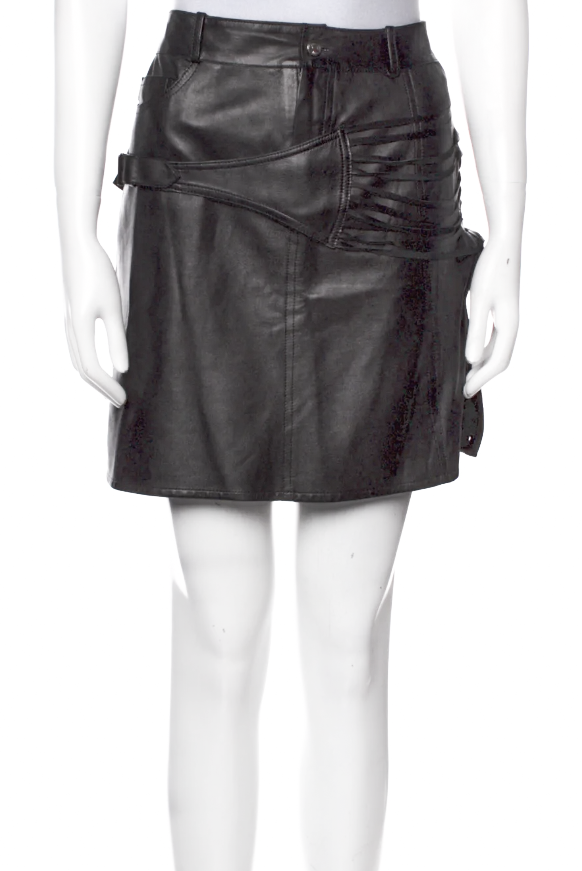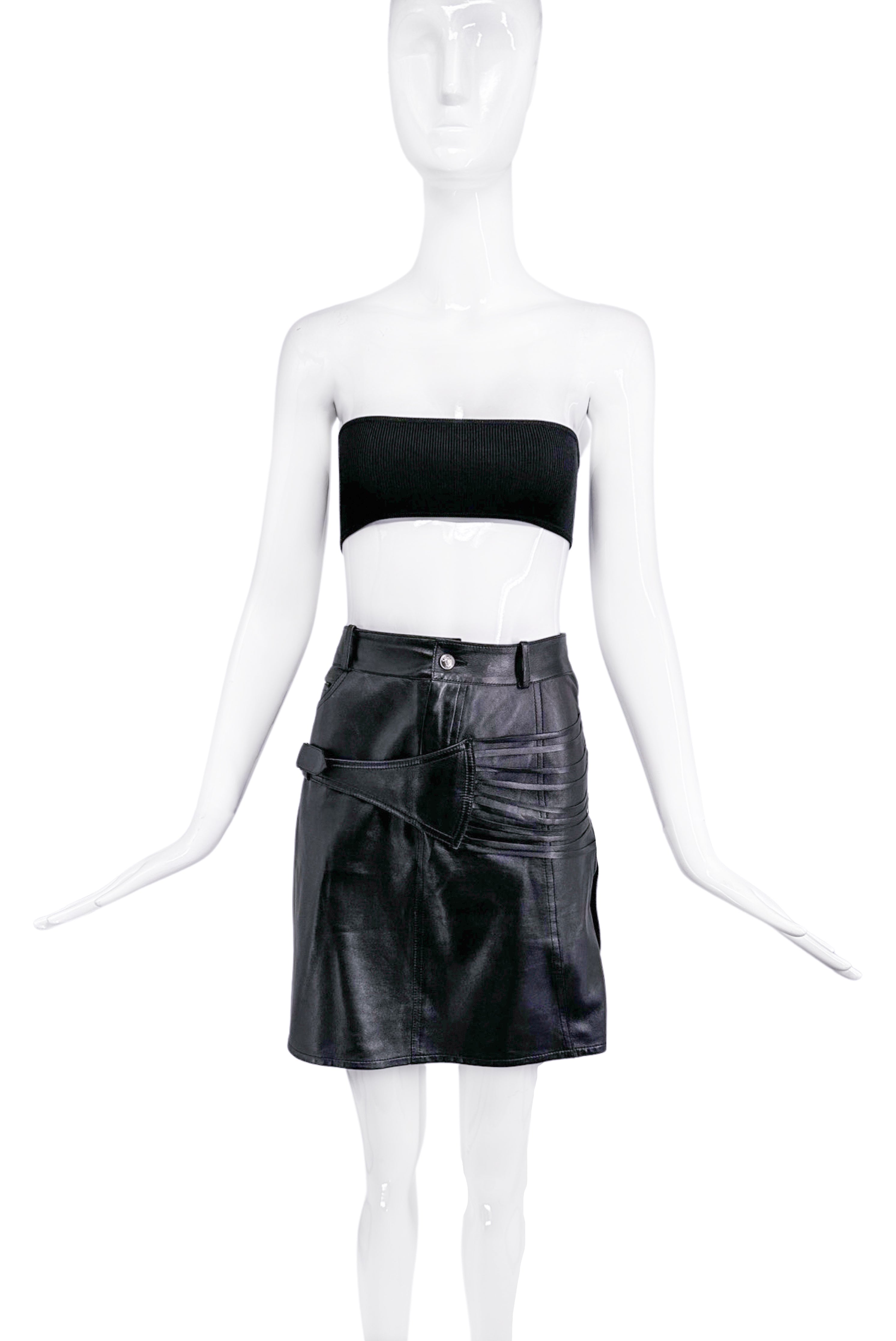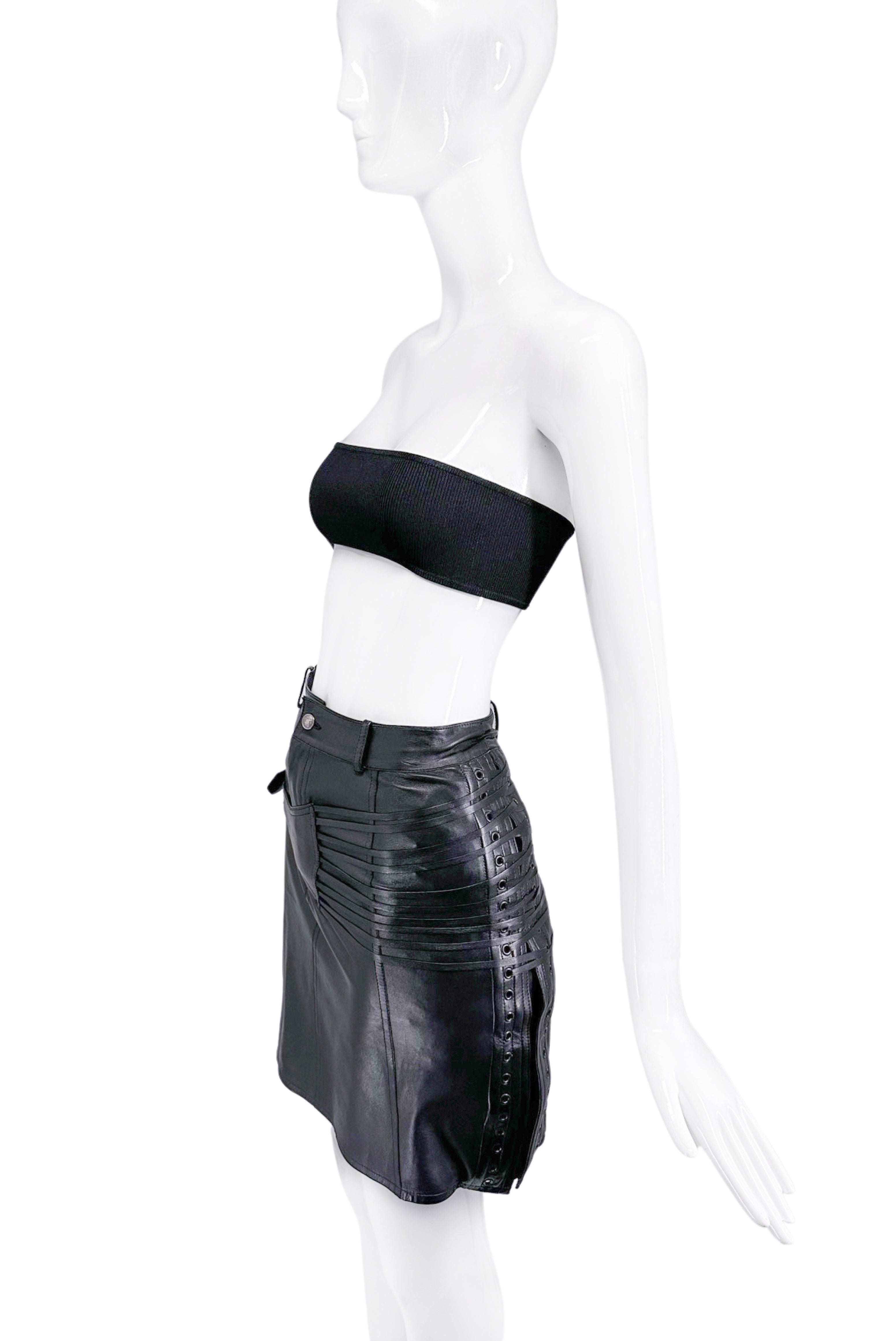 Christian Dior x John Galliano Black Leather Holster Mini Skirt with Lacing Details FW2002
