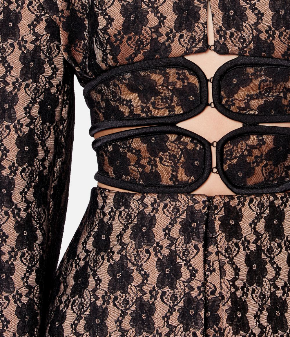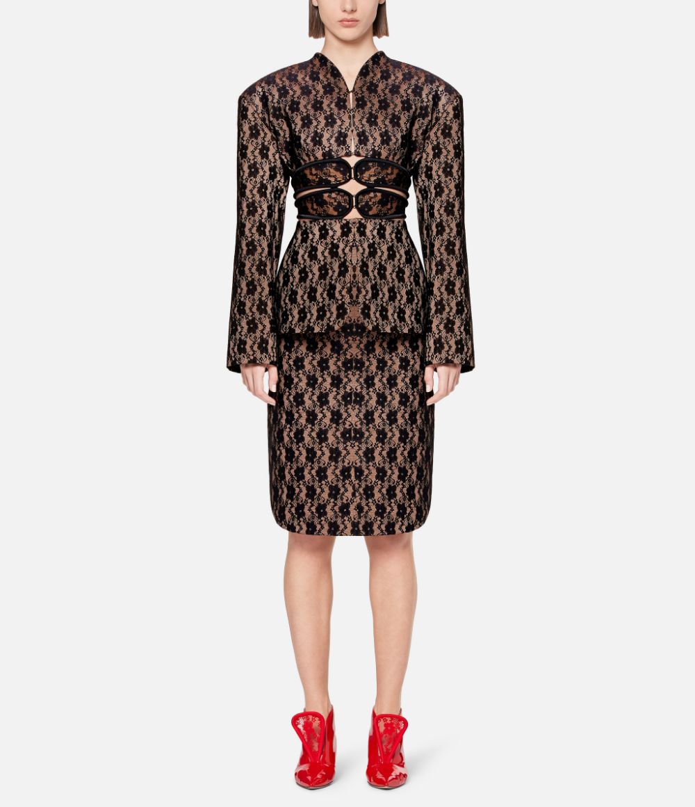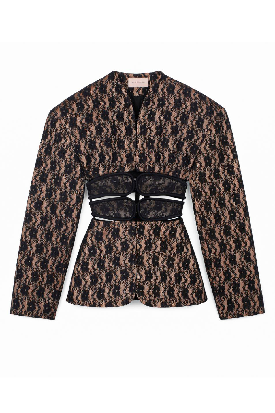 Christopher Kane Black Nude Lace Corset Cut Out Oversized Shoulder Blazer Runway Spring 2019