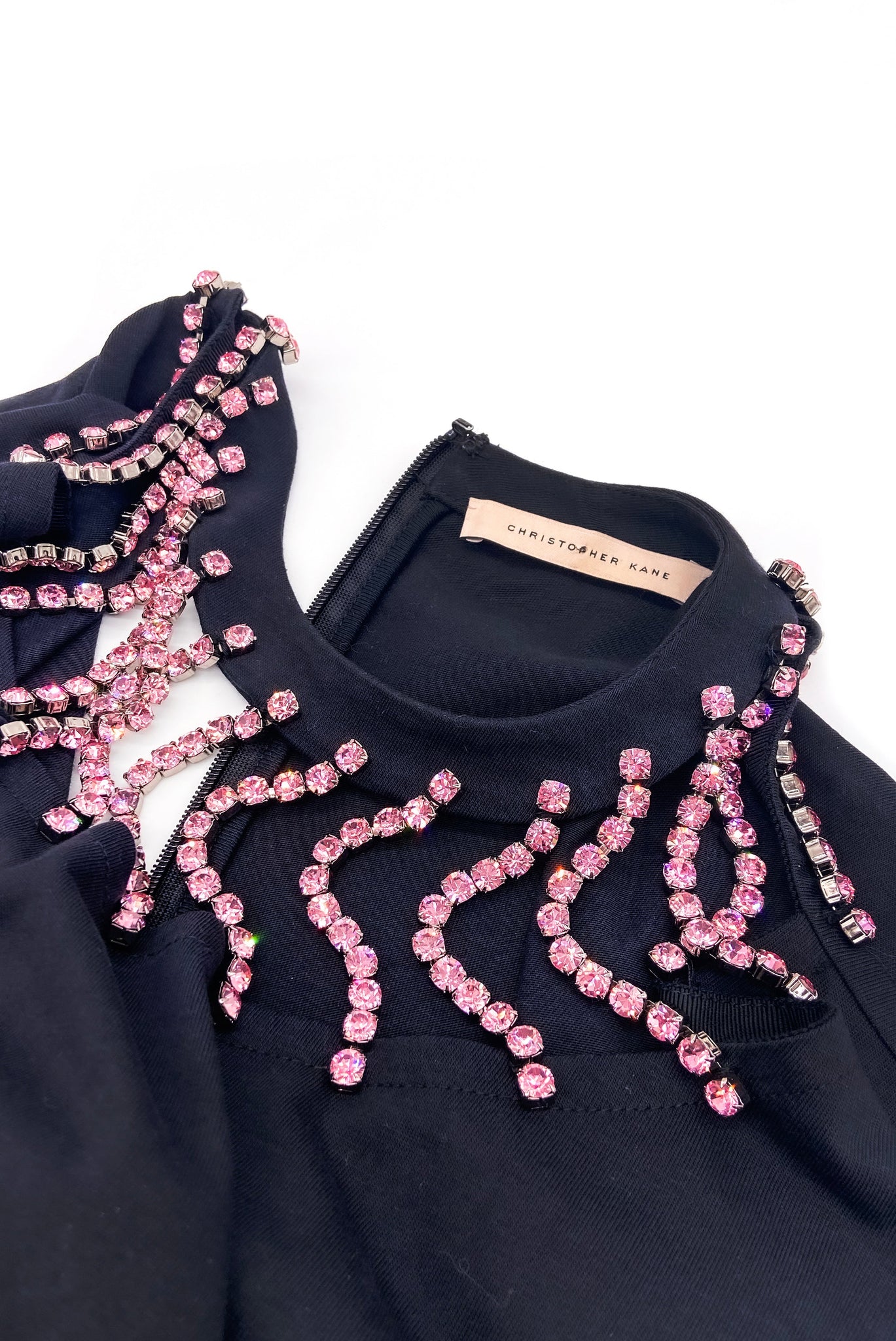 Unleash your goth showgirl with this Christopher Kane pink crystal neck cage top.