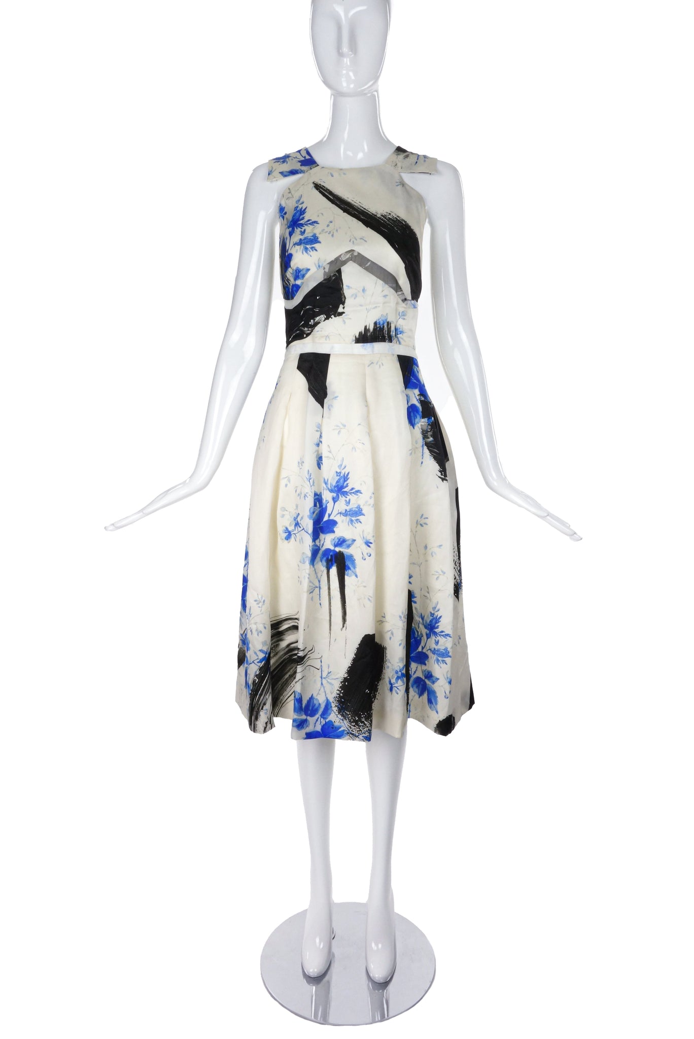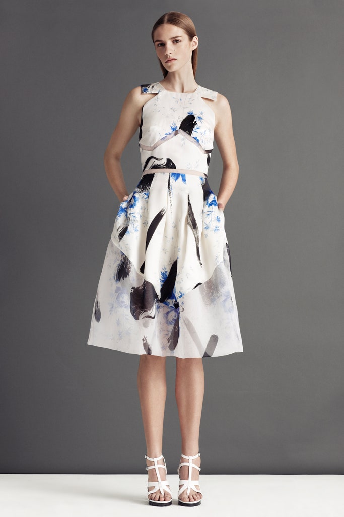 Christopher Kane White Fit and Flare Princess Dress with Paintbrush Print Resort2013
