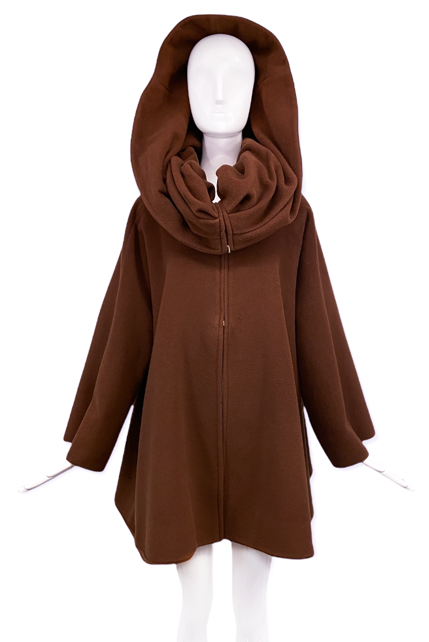 Claude Montana Brown Oversized Hood A Line Zipper Coat Jacket