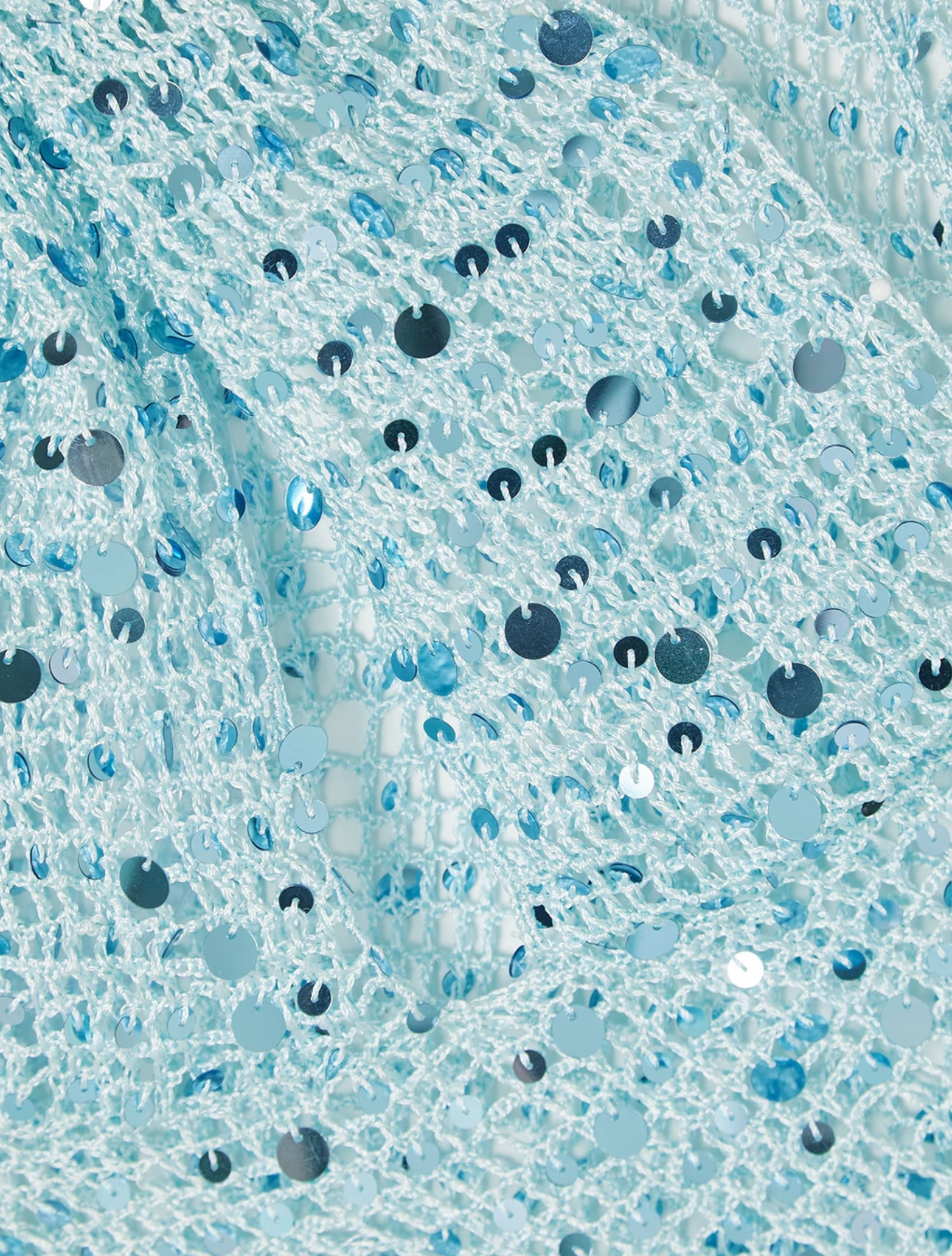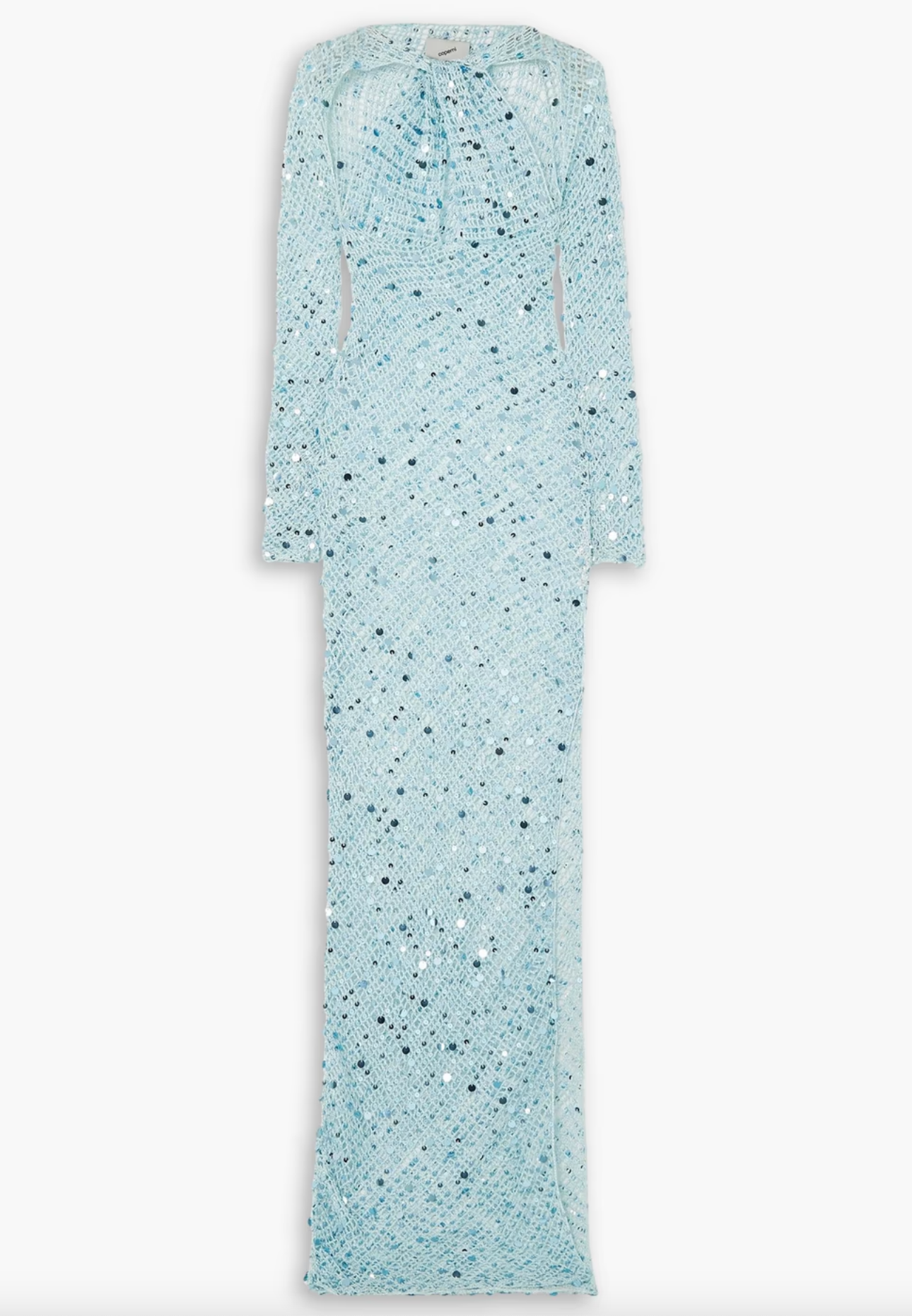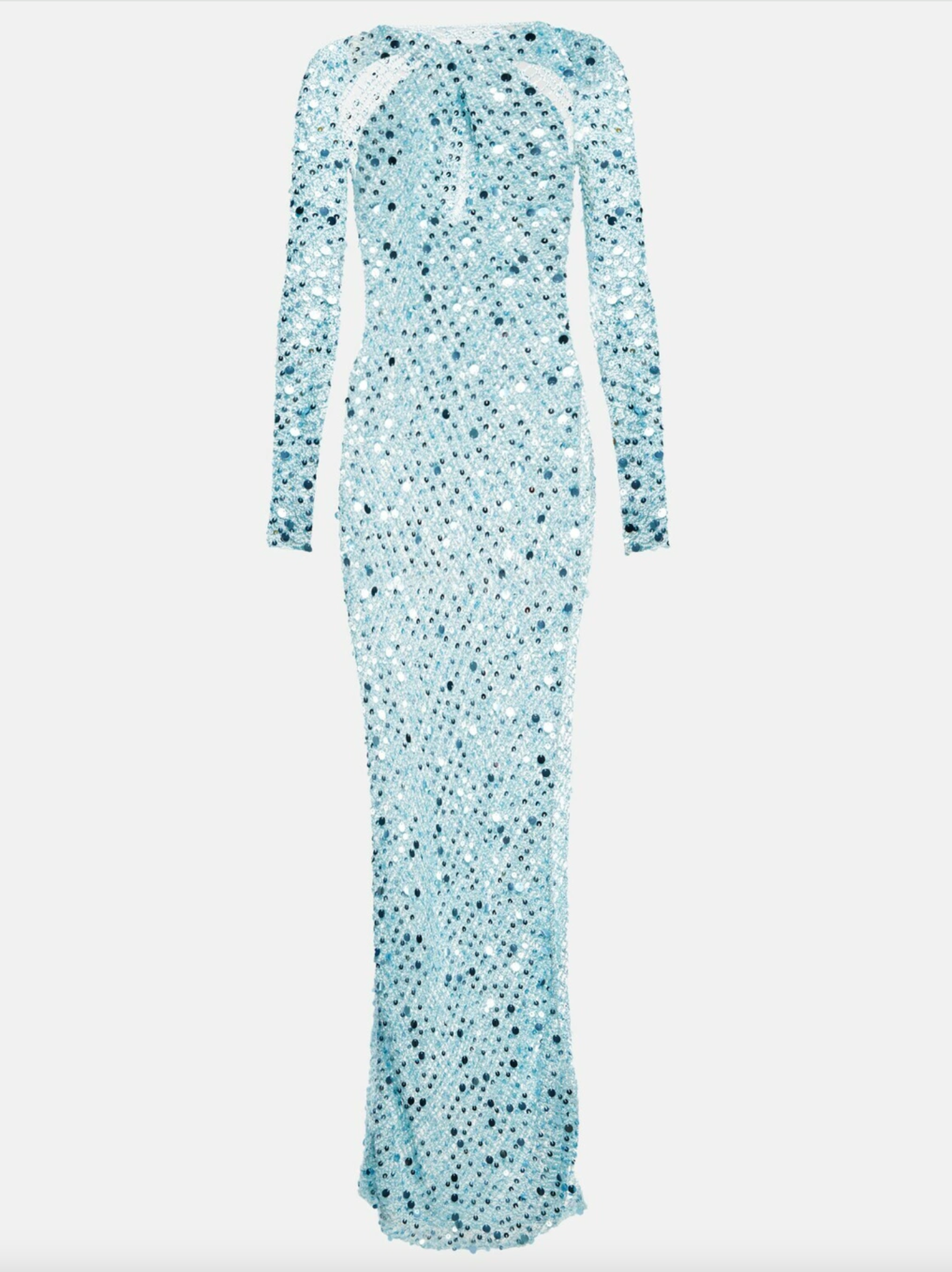 Coperni Blue Sheer Lace Crochet Sequin Cut Out Dress Gown