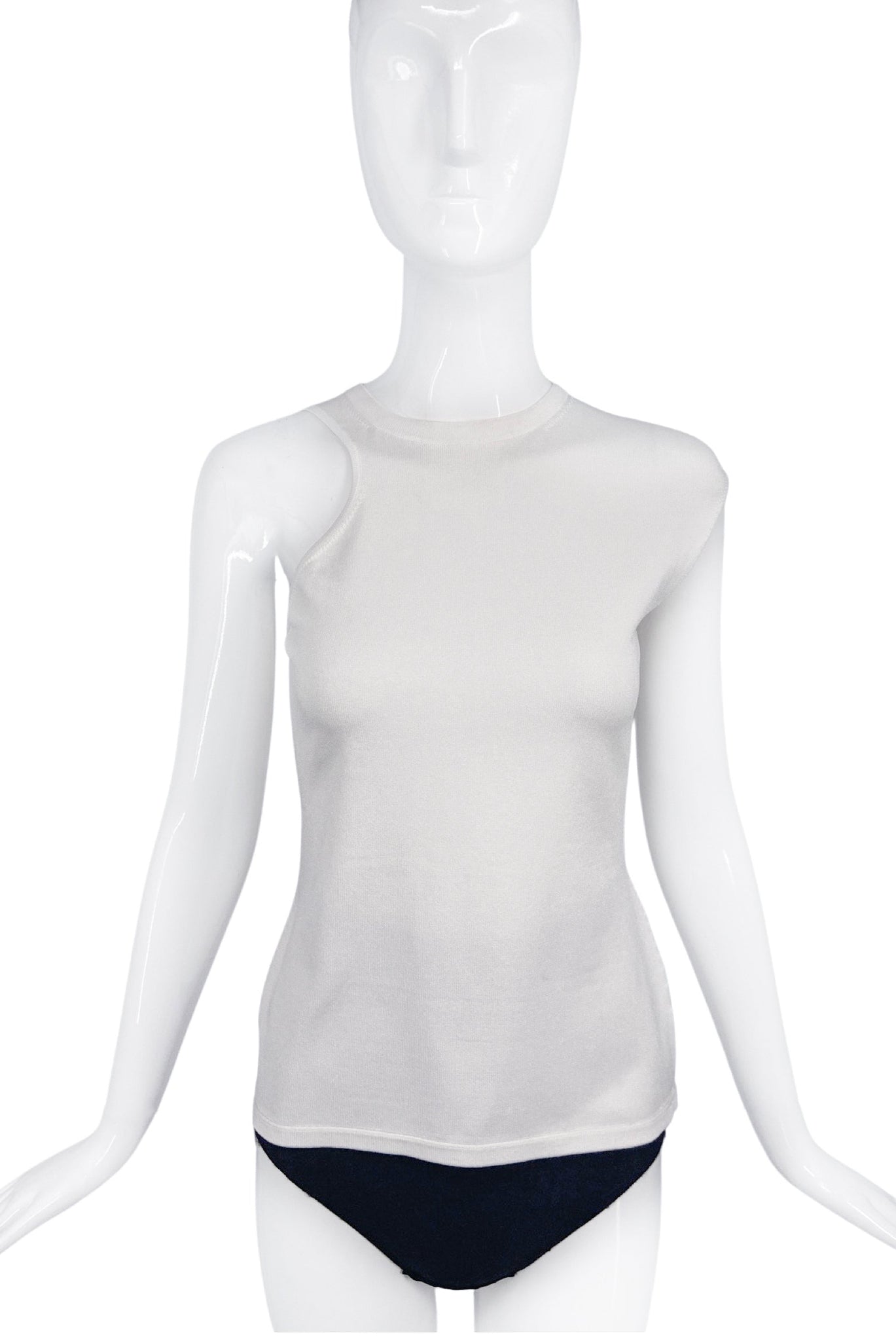 Cushnie White Asymmetric Arm Hole Cut Out Tank Top