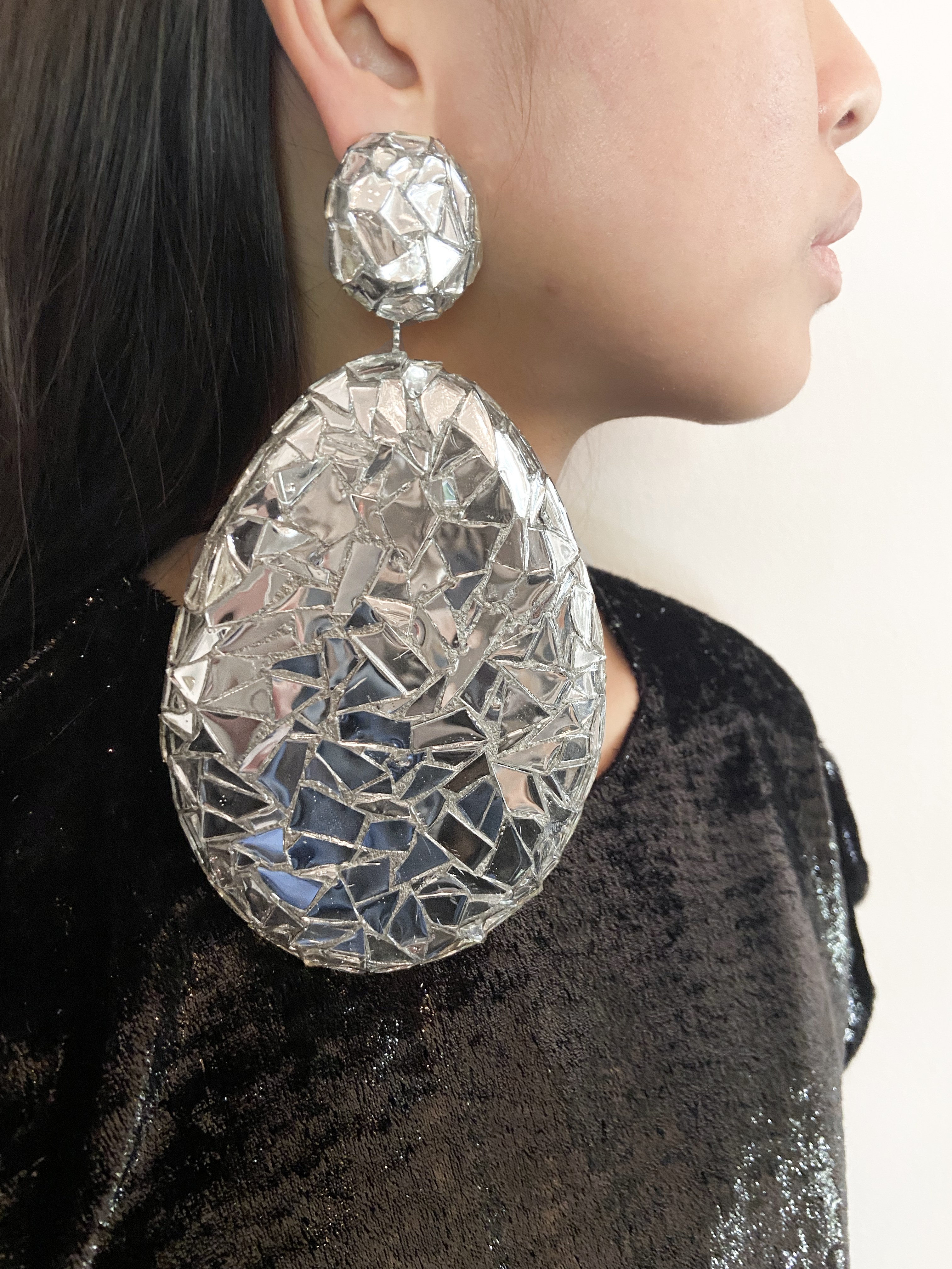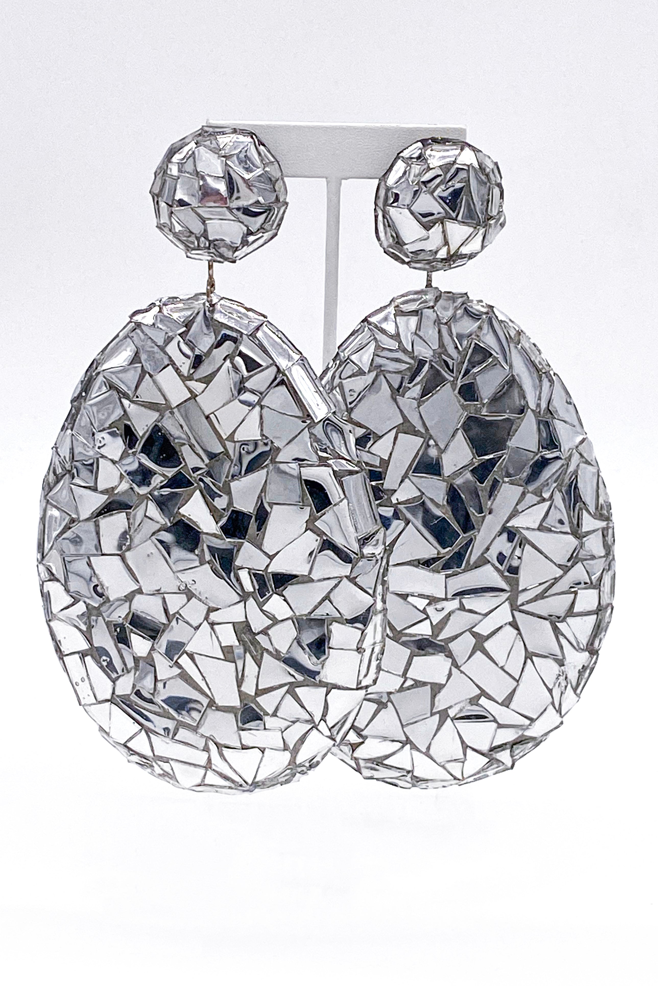Custom Silver "Shattered Mirror" Oversize Statement Earrings