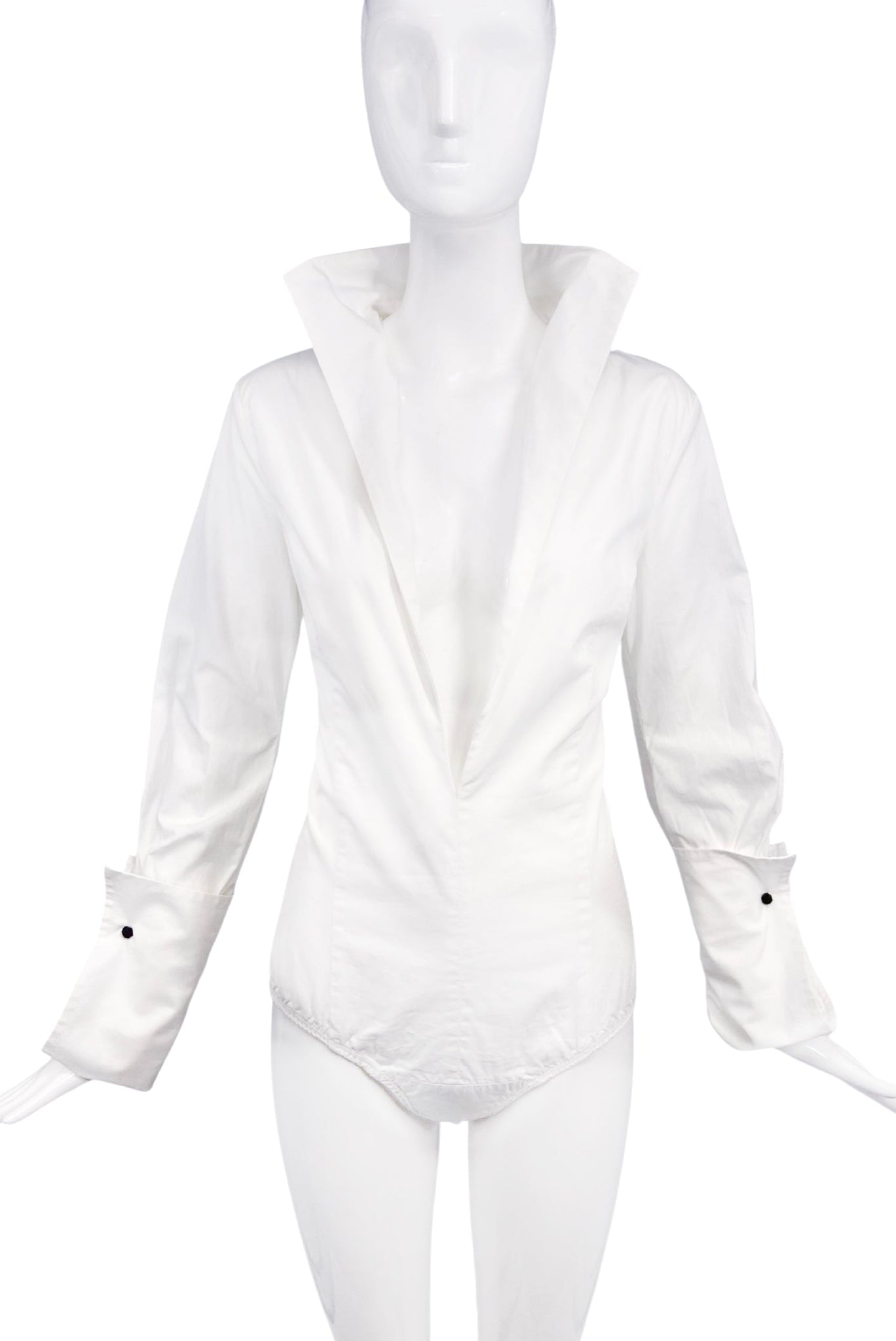 Dsquared2 White Bodysuit Low V Neck Cuff Link Extra Long Sleeves