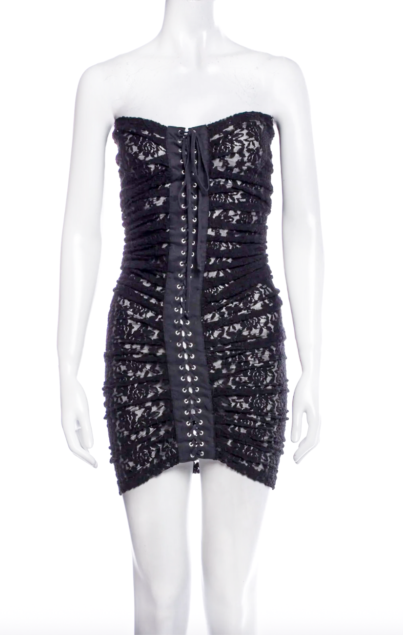 D&G Dolce and Gabbana Black Lace Satin Lace Up Corset Bustier Dress