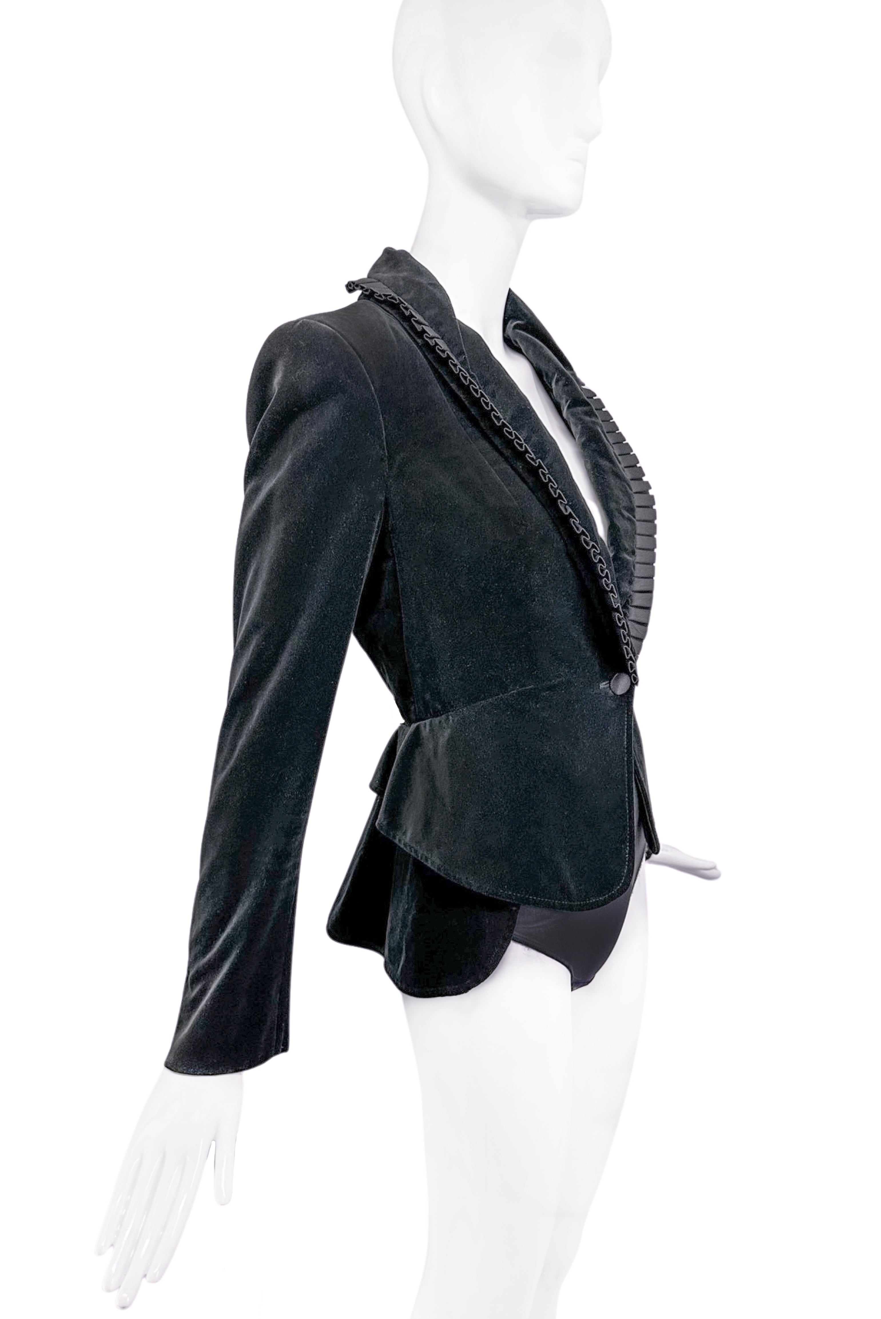 Derek Lam Black Velvet Ruffle Peplum Riding Jacket