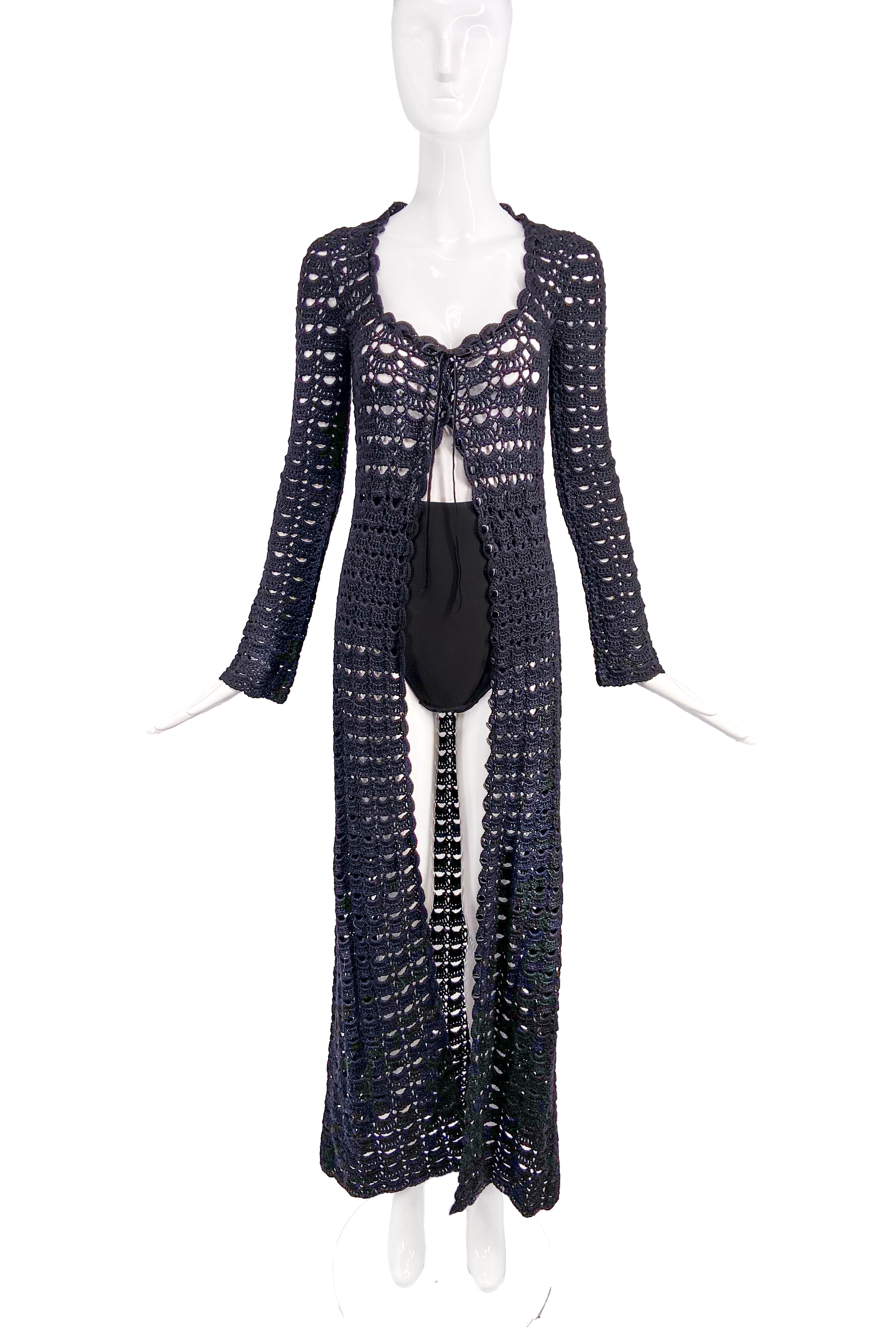 Dolce Gabbana Black Crochet Long Cardigan Coat 1997 collection