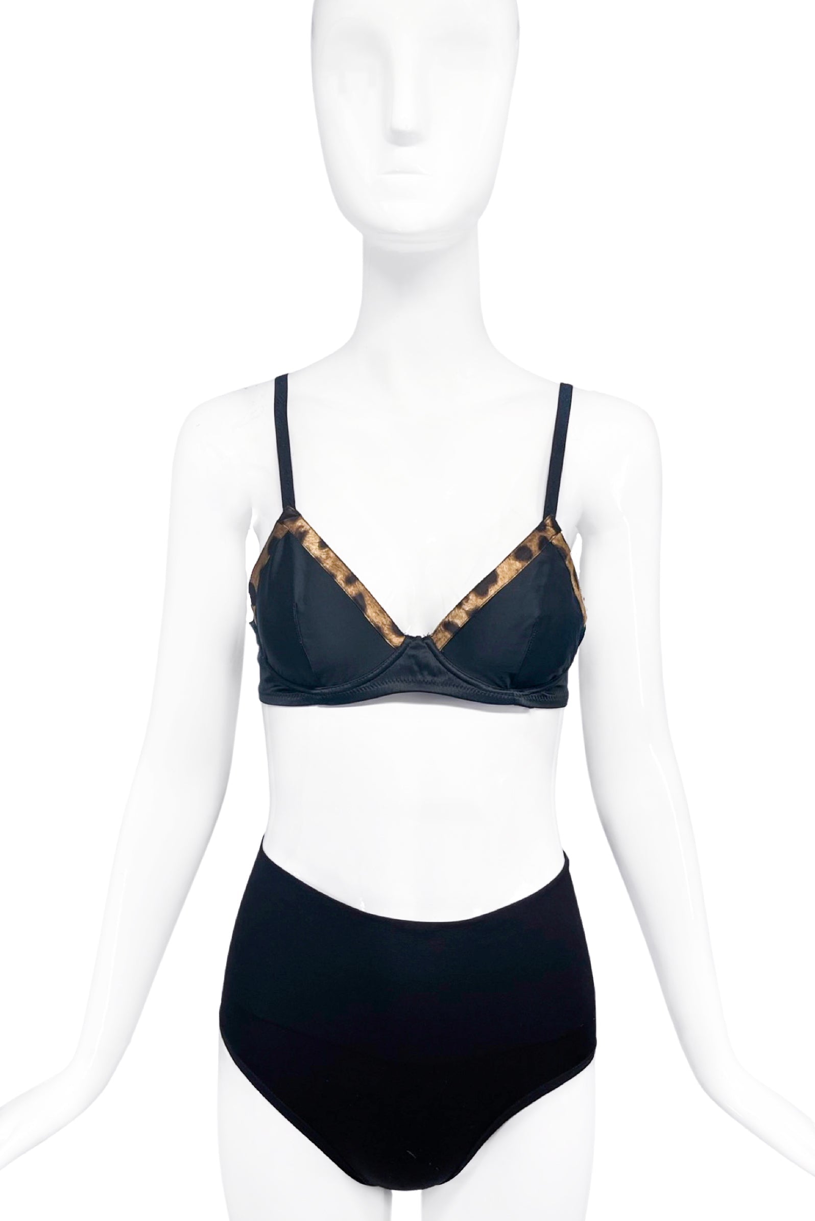 Dolce & Gabbana Black Satin with Leopard Print Trim Detail Bra Top