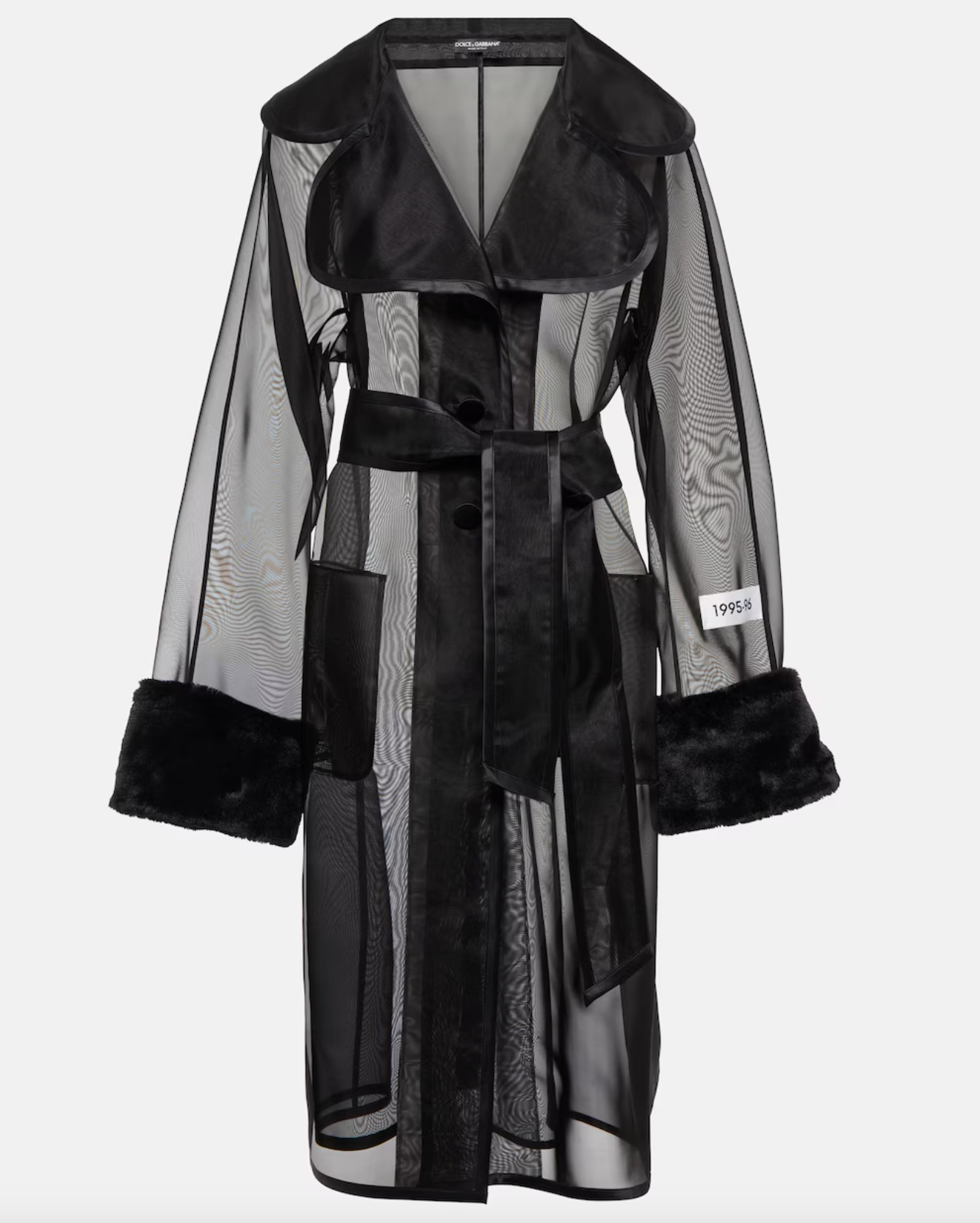 Dolce Gabbana Black Sheer Fur Cuff Trench Coat
