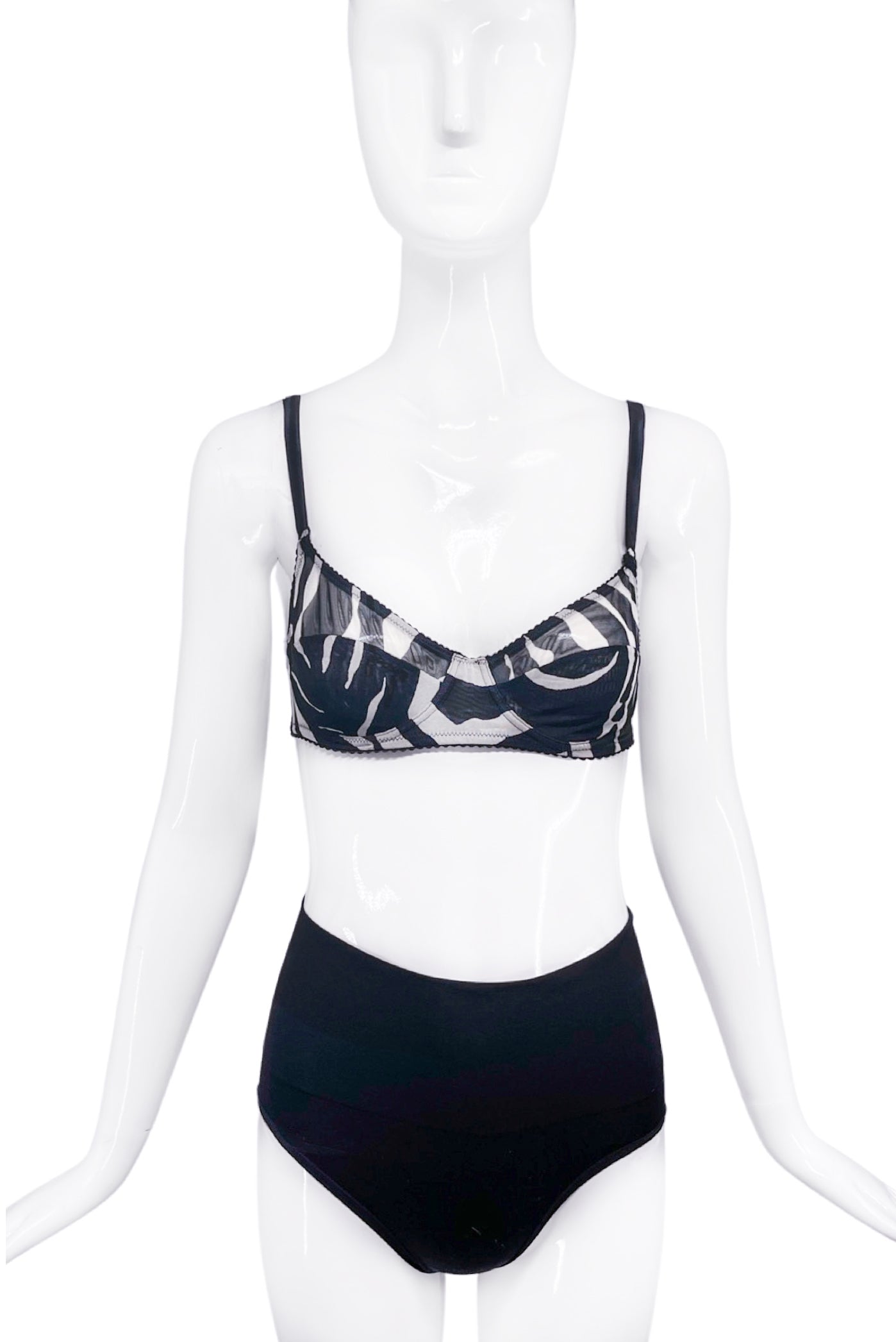 Dolce Gabbana Black & White Zebra Print Satin Bra
