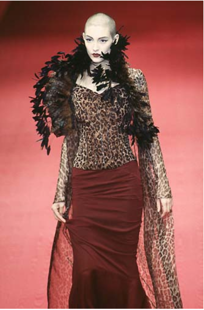 Dolce & Gabbana Leopard Print Chiffon Coat with Exaggerated Feather Collar Fall 1997