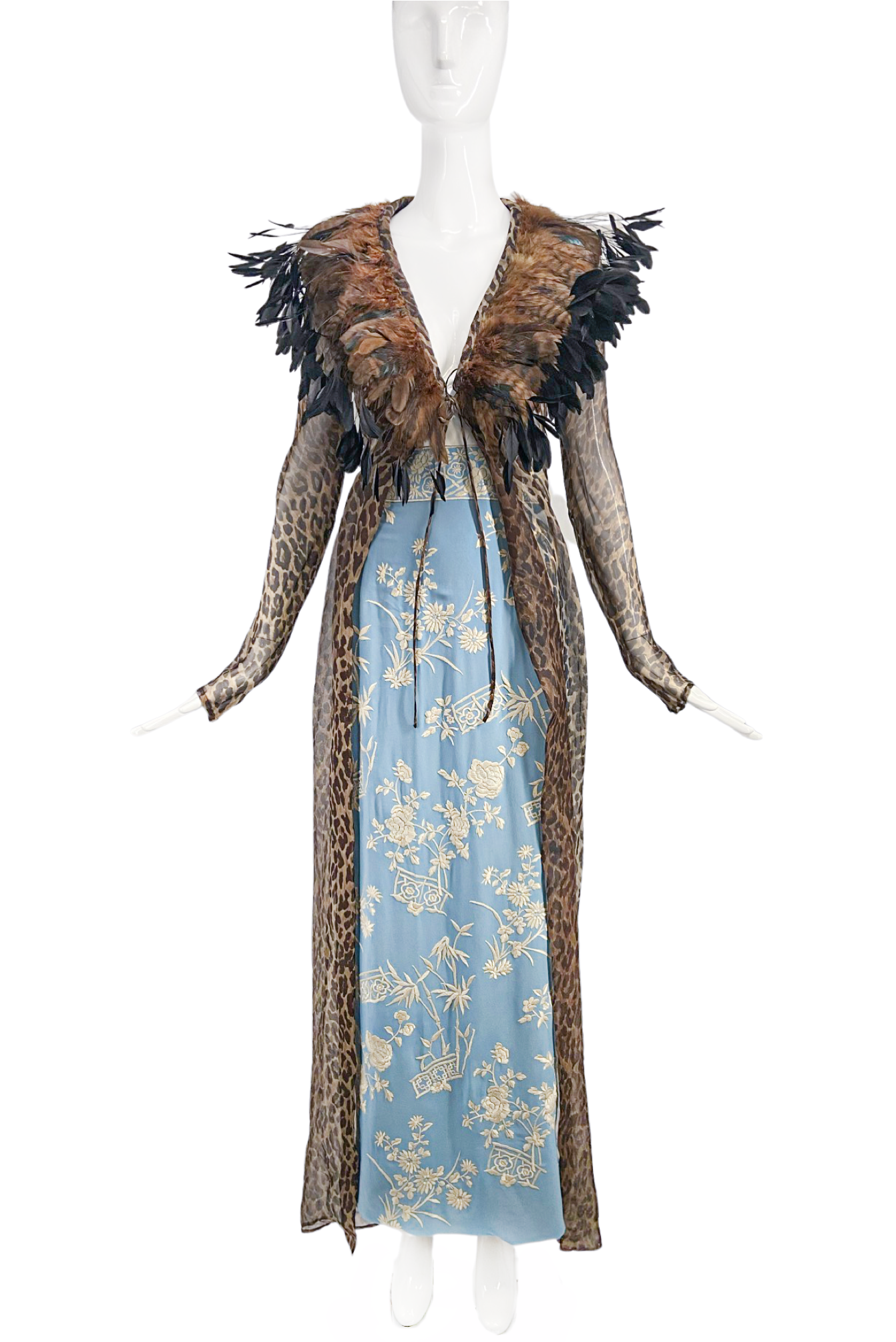 Dolce Gabbana Pale Blue Creme Embroidered Skirt Spring 1997 Collection