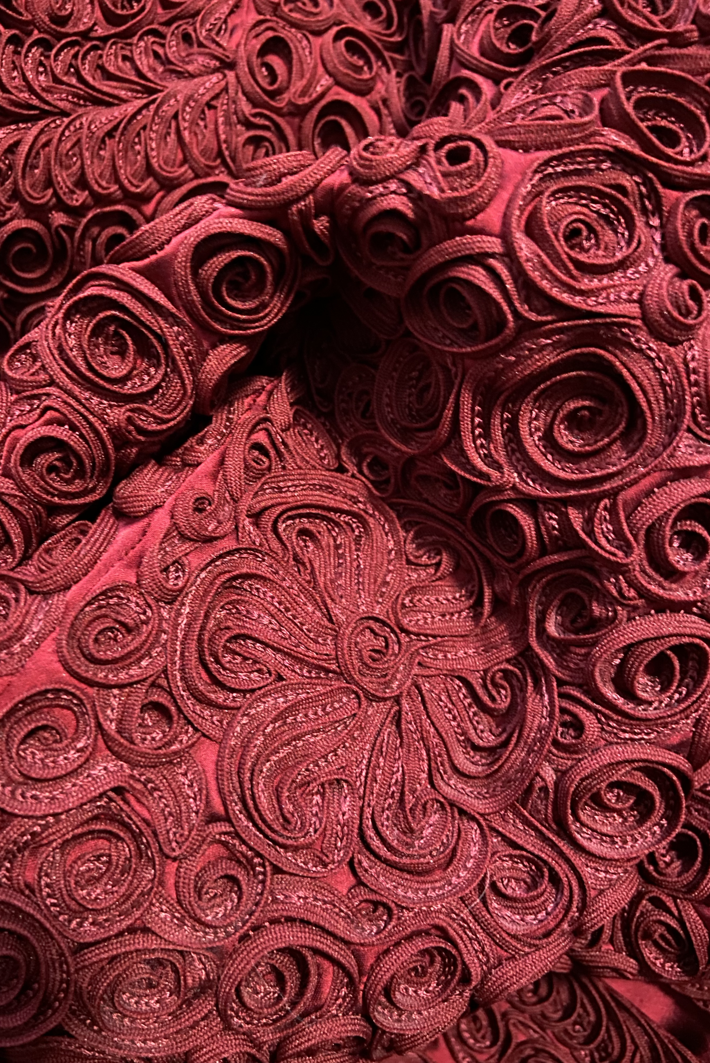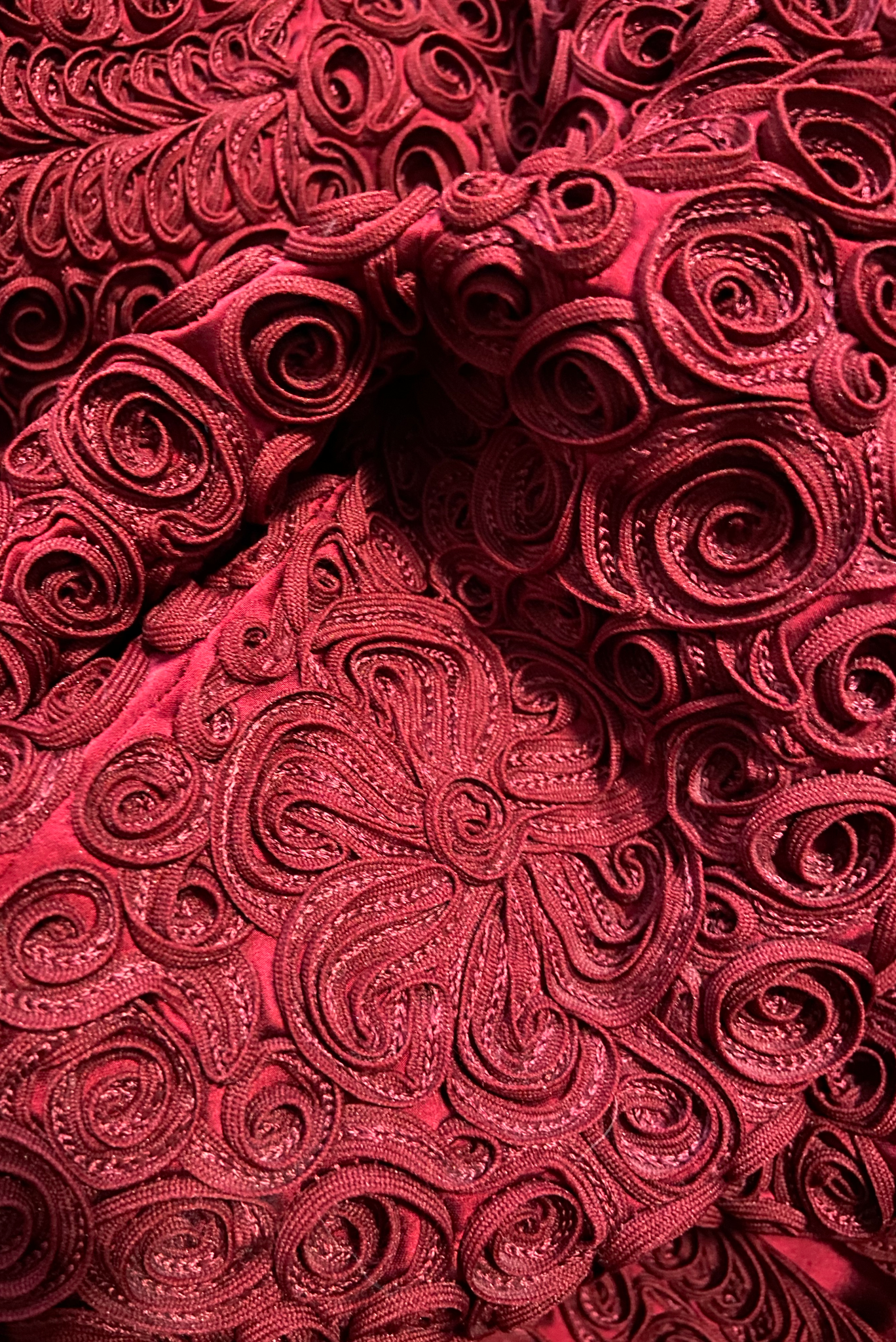 Dolce & Gabbana Red Textured Rosette Coat 1990's Isabella Rossellini