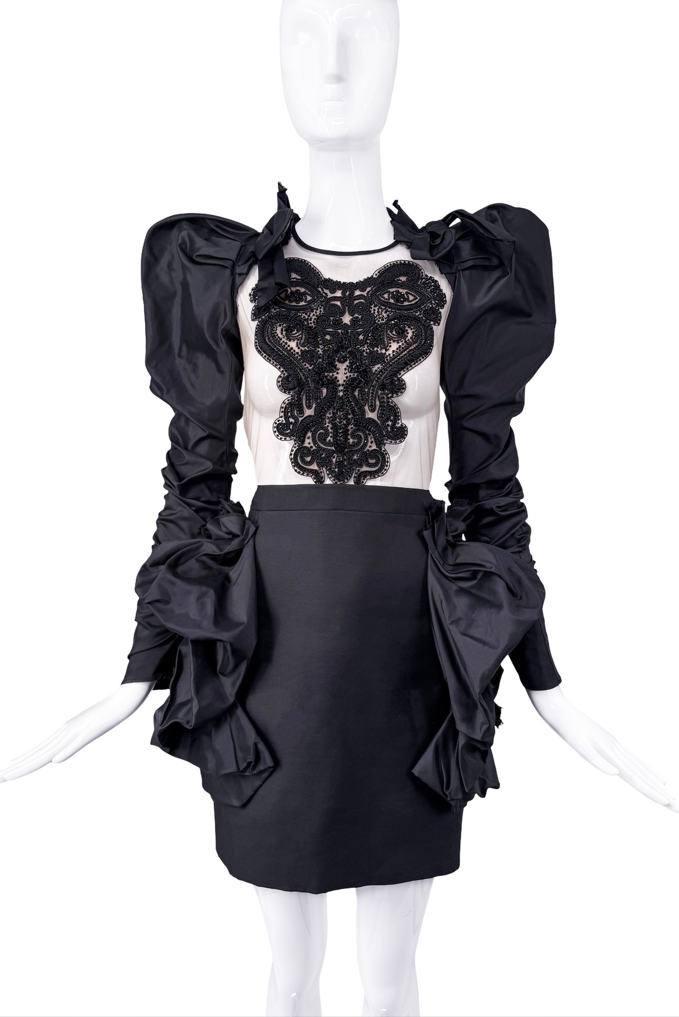 DSquared2 Black Ruffle Mesh Embellished Puff Sleeve Dress