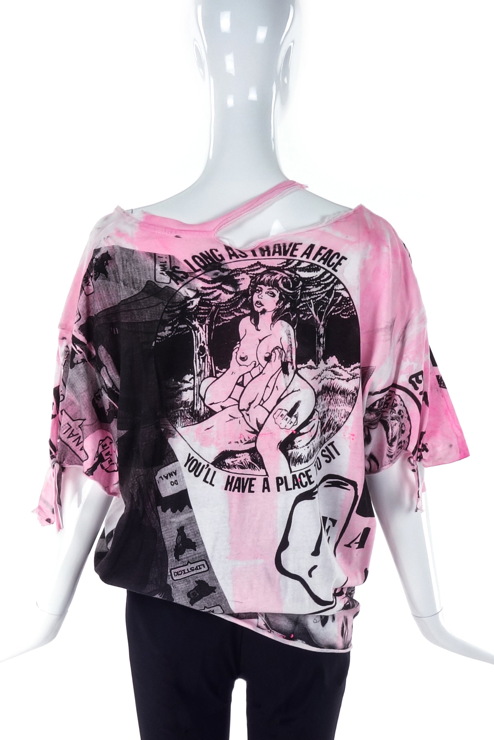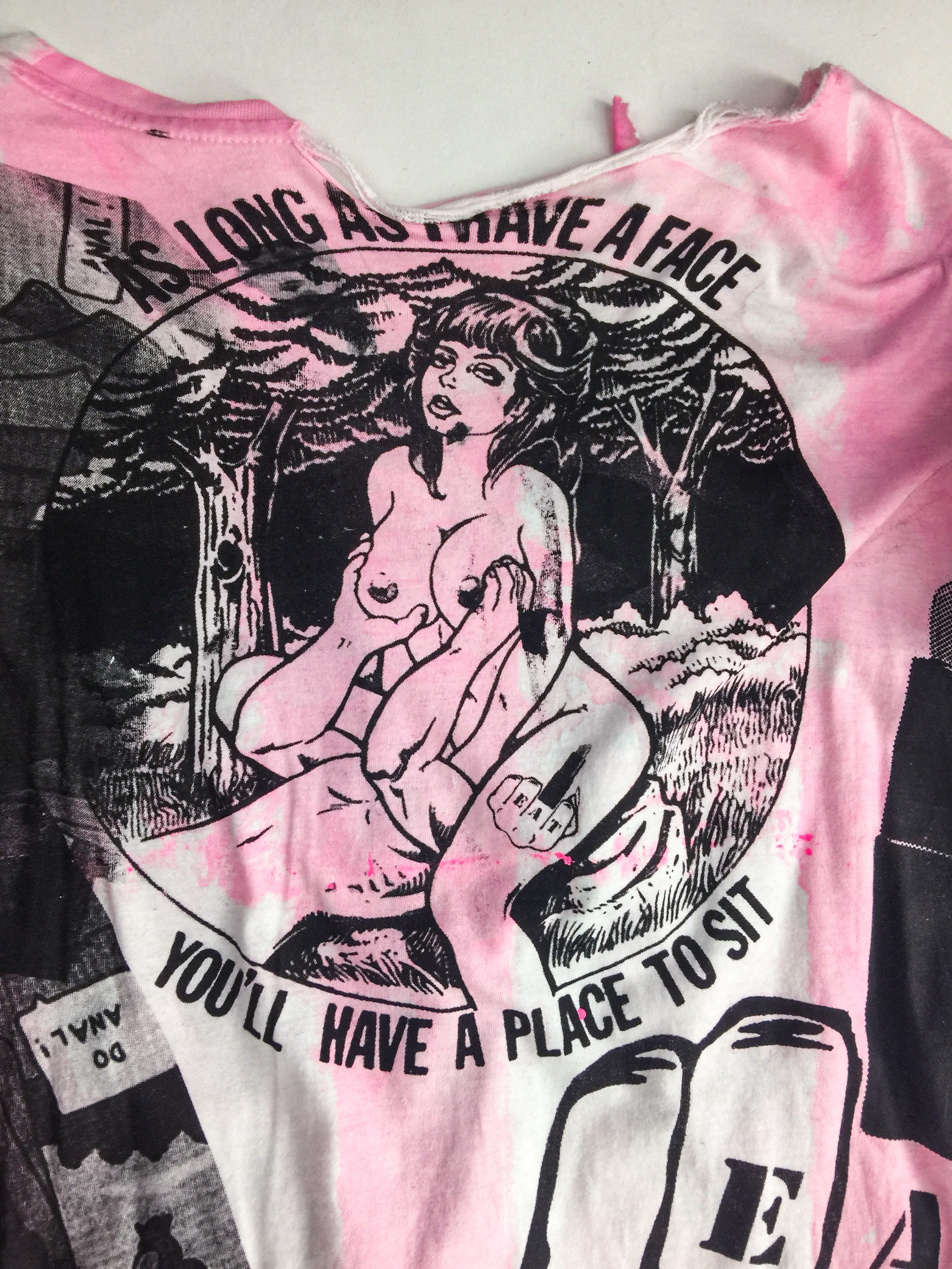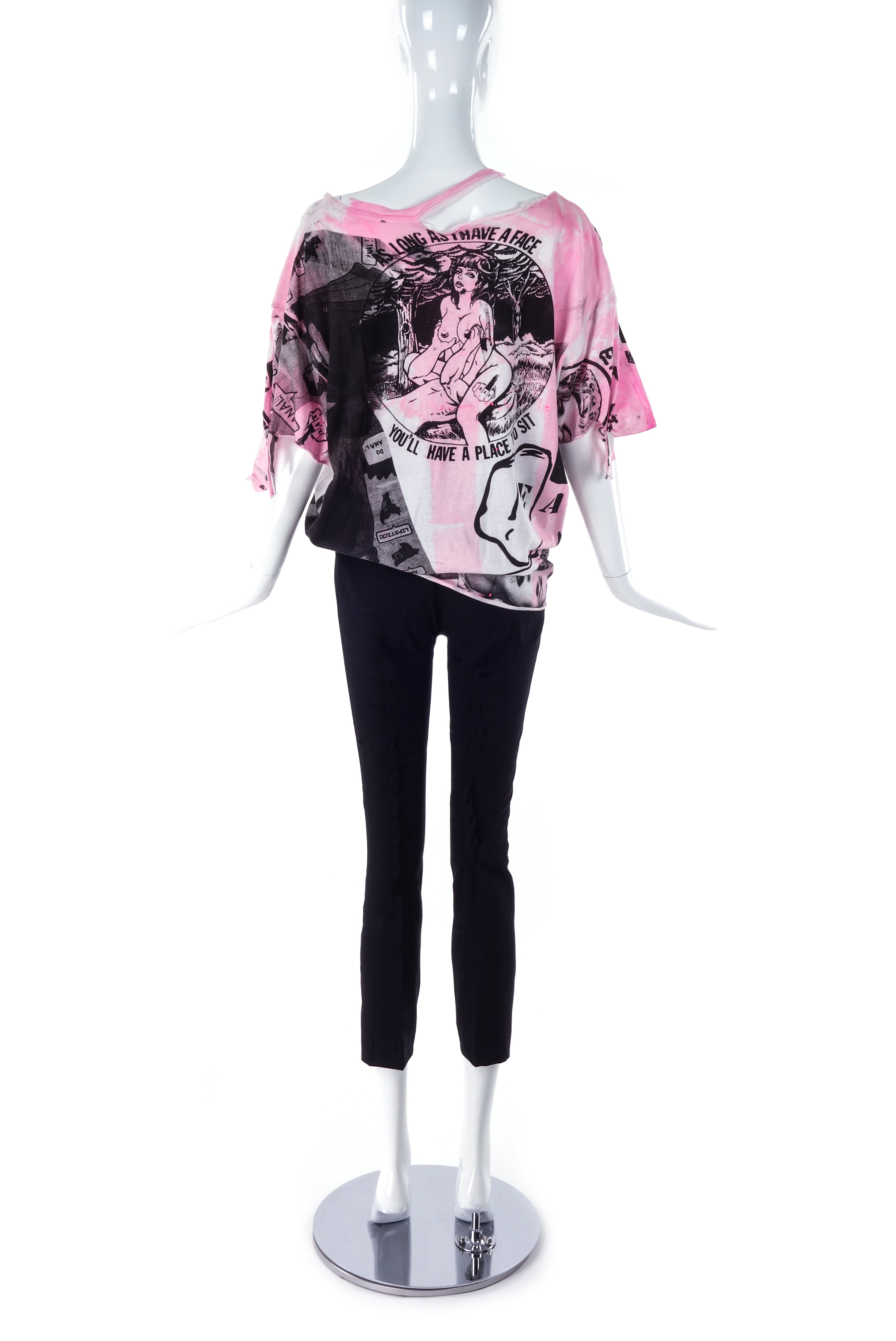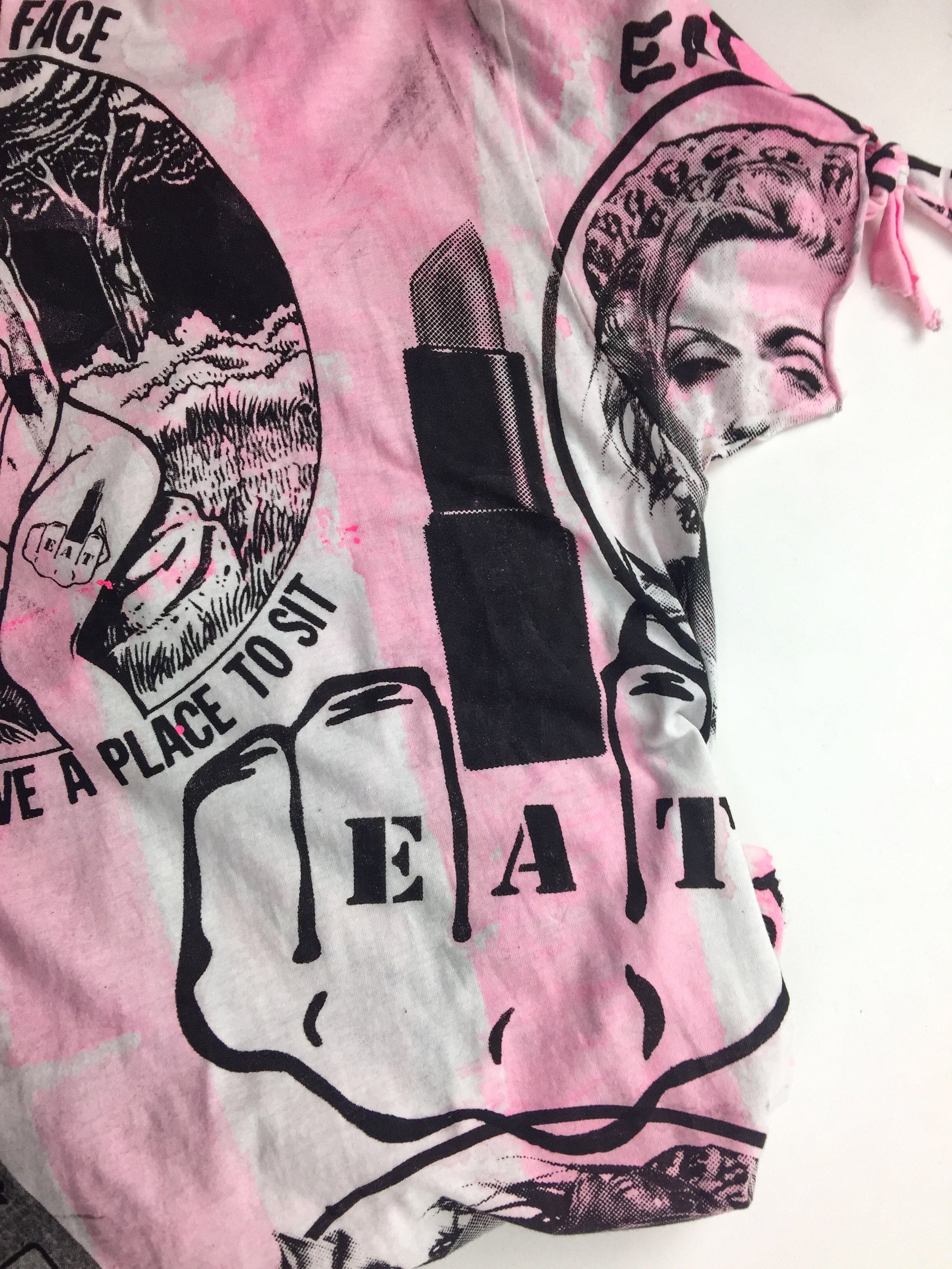 A custom Couture pink and black print deconstructed versatile T-shirt from Berlin Cult Punk Band "Eat Lipstick".