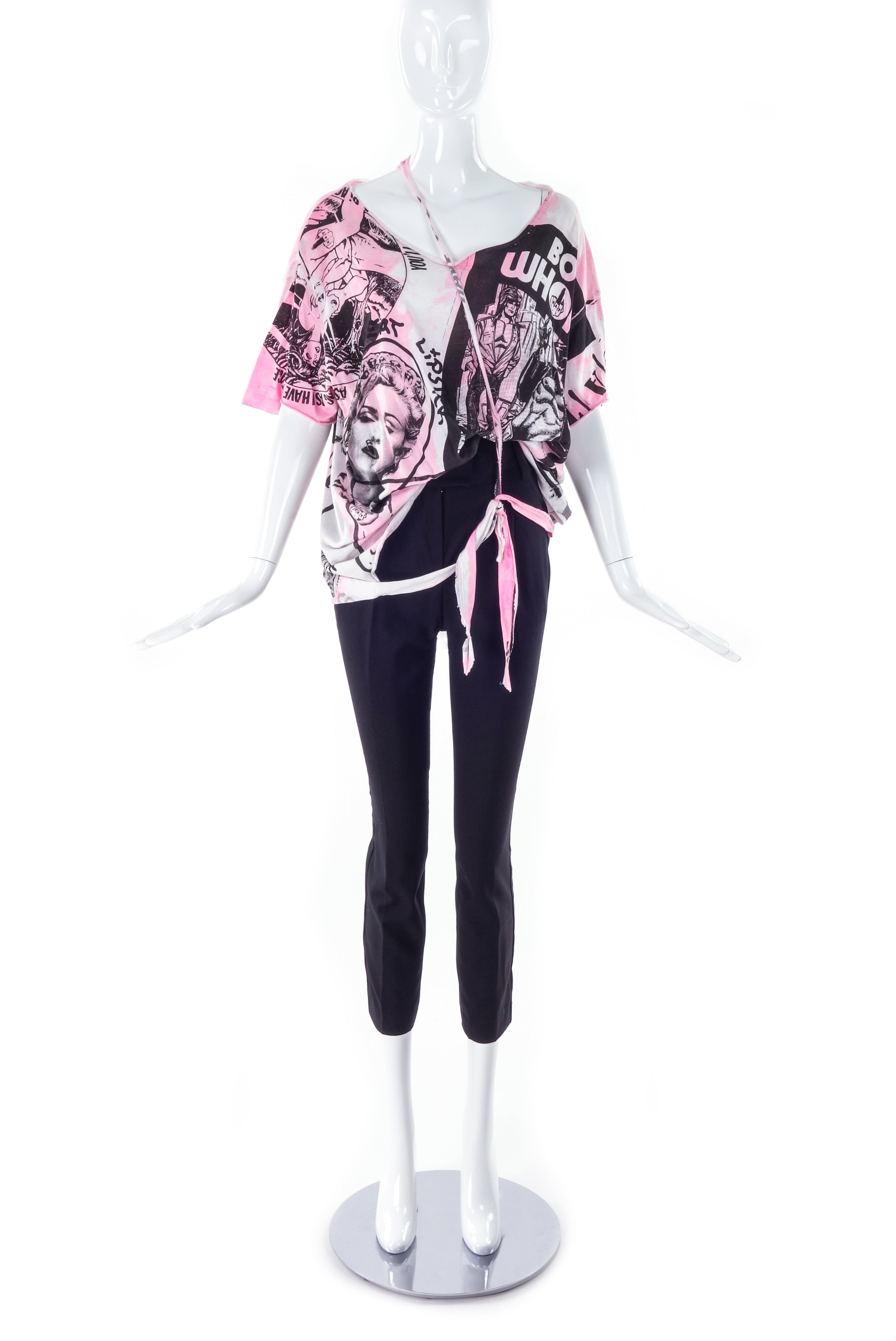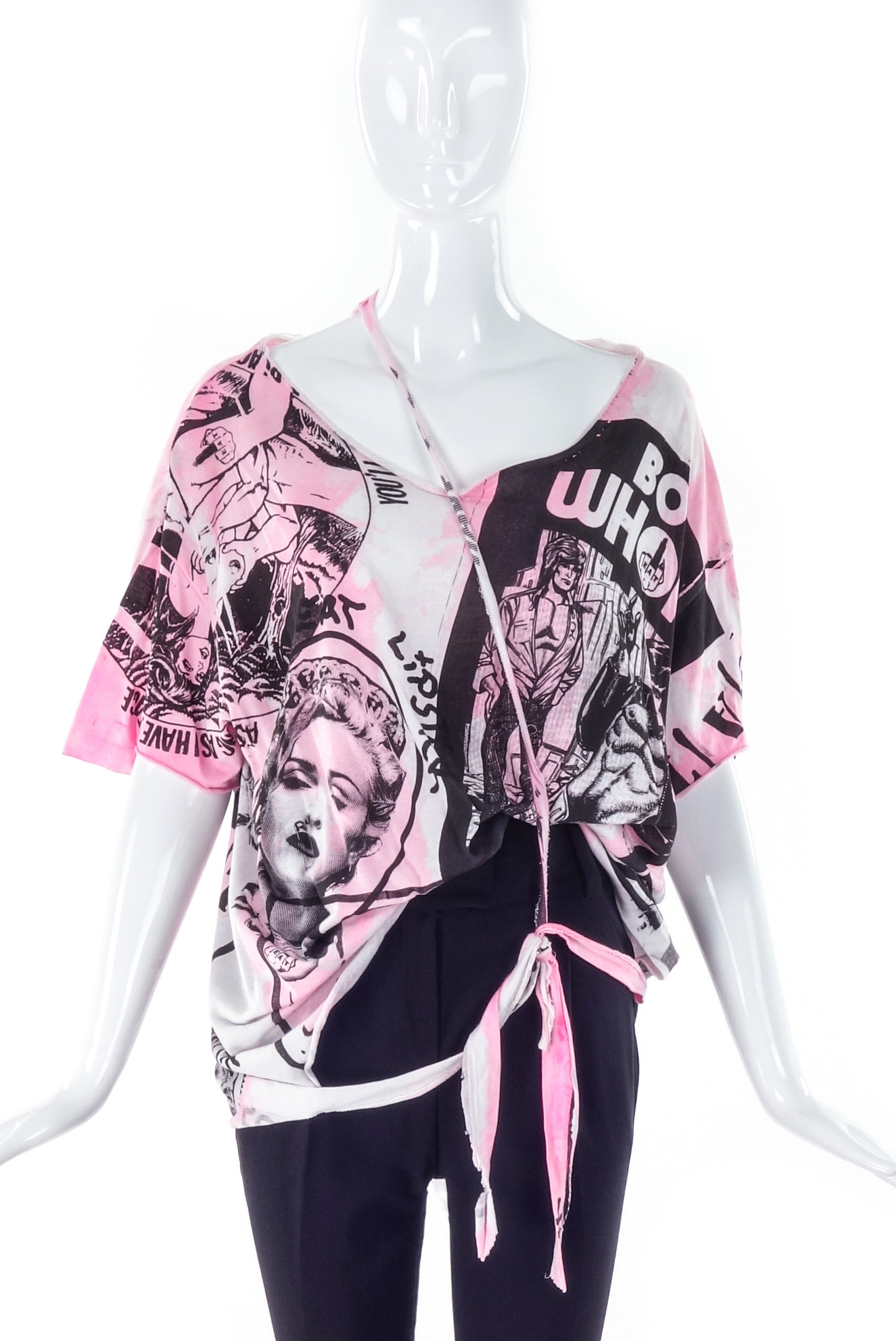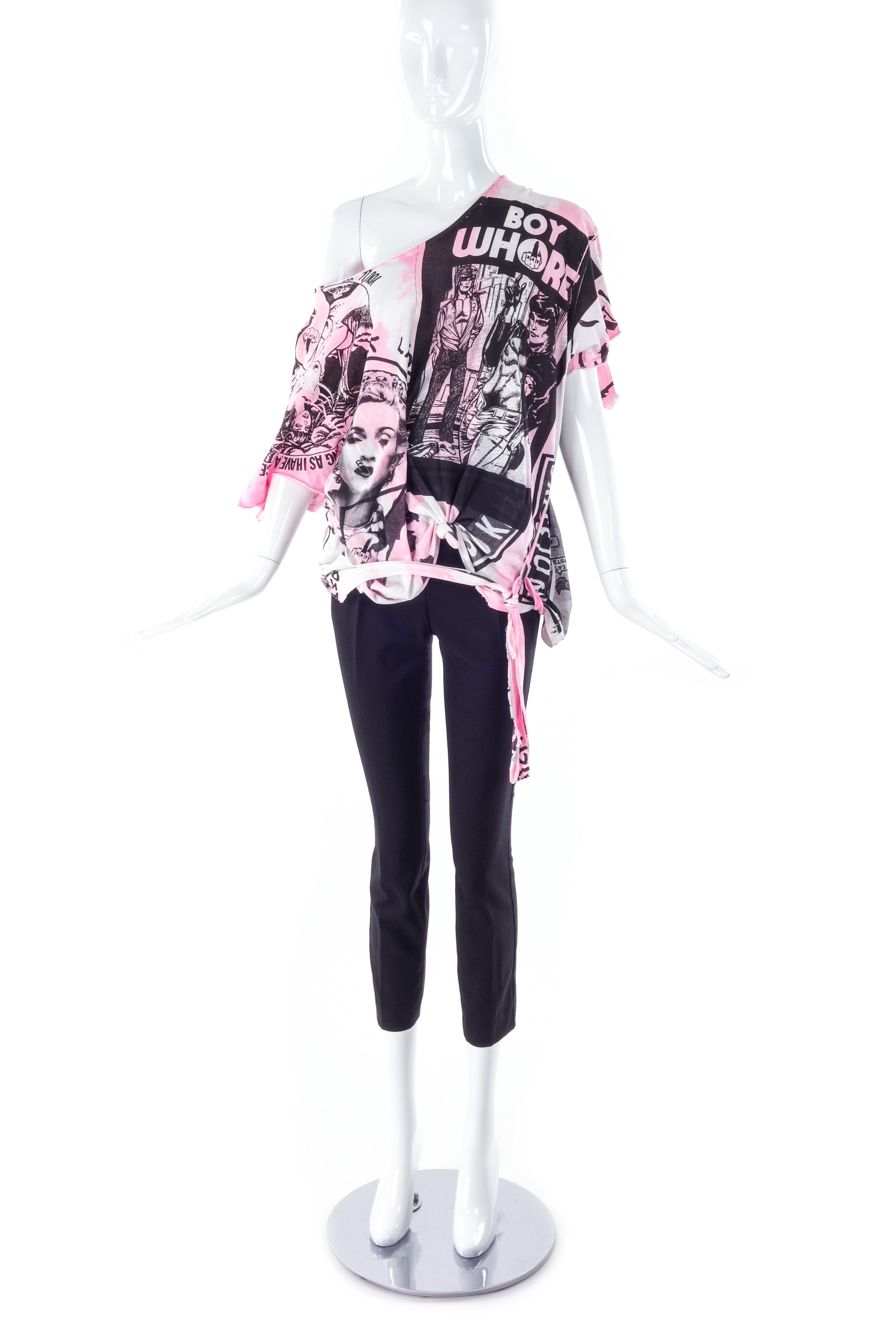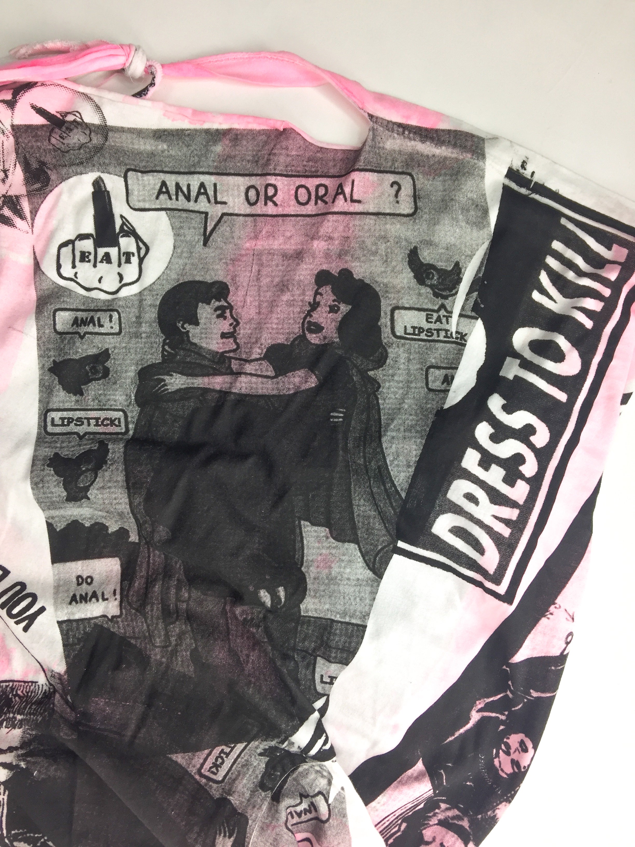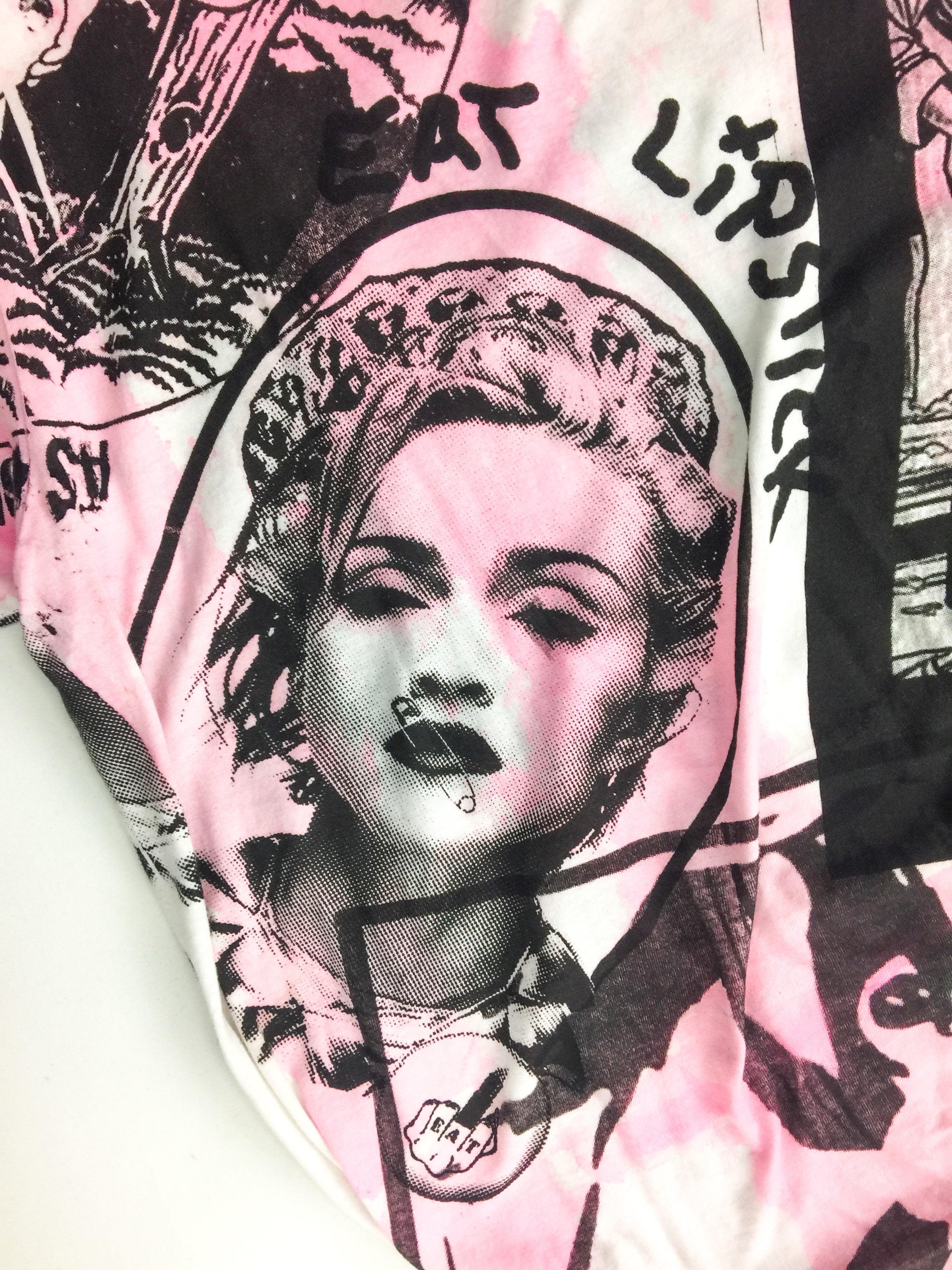 A custom Couture pink and black print deconstructed versatile T-shirt from Berlin Cult Punk Band "Eat Lipstick".